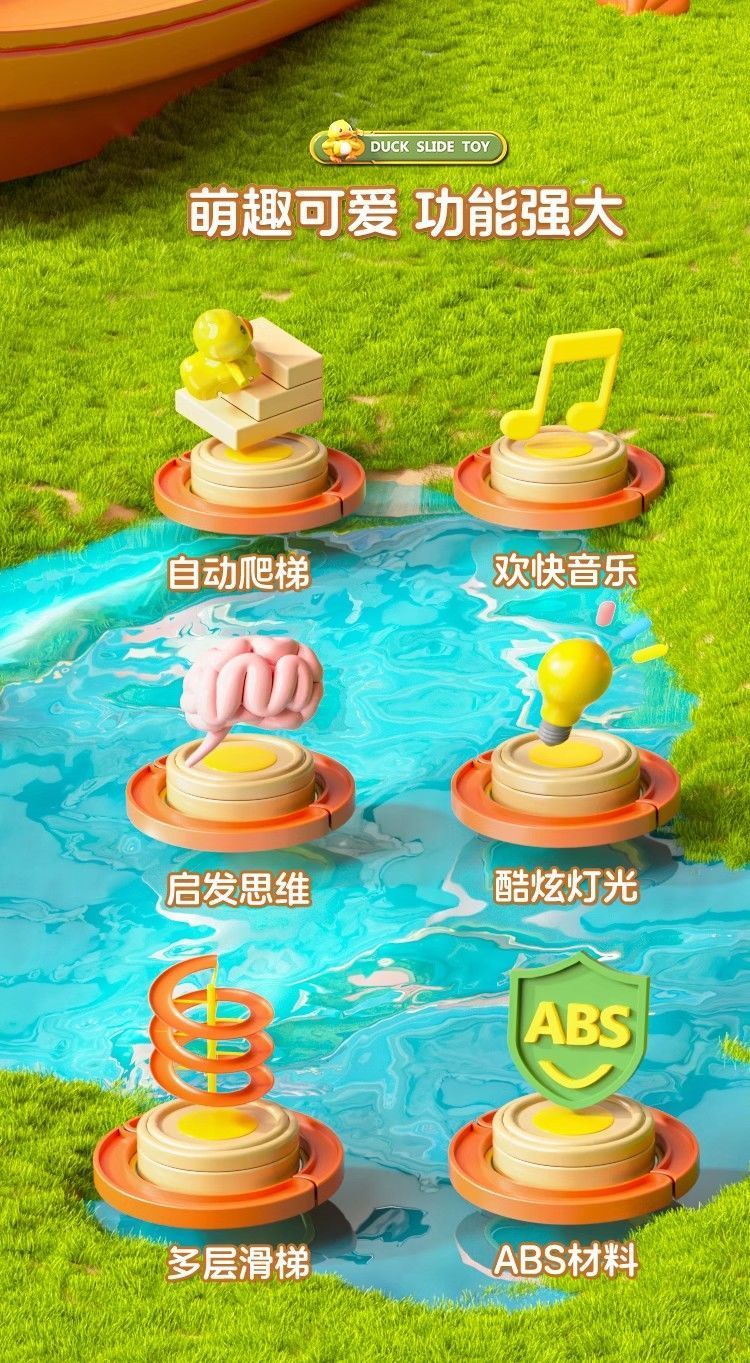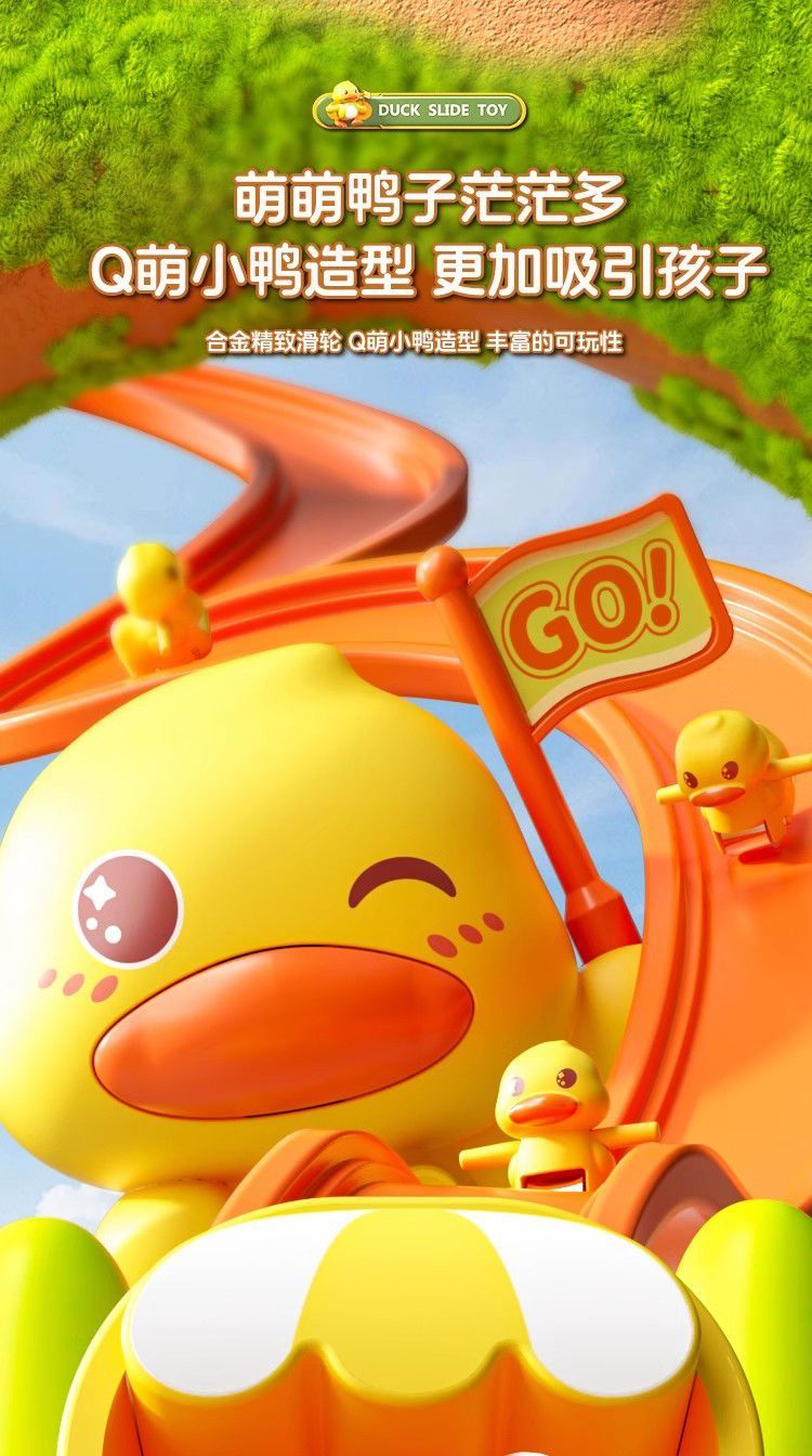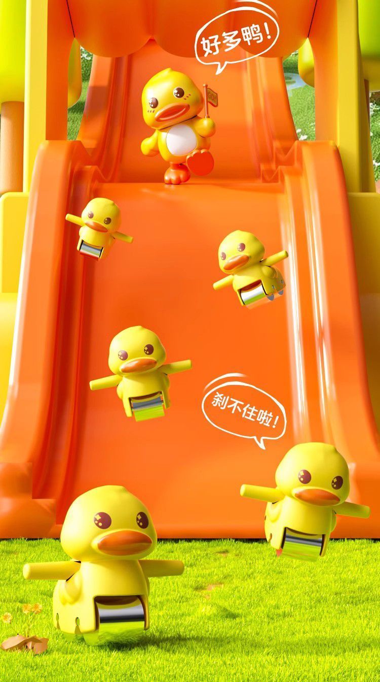 自动爬楼梯小鸭子儿童益智拼装电动轨道车小黄鸭滑滑梯声灯光玩具