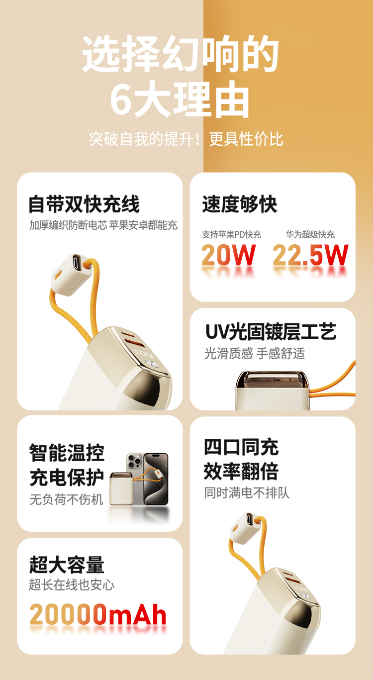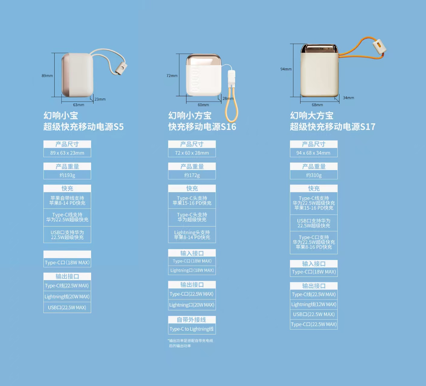 心选丨i-mu幻响S5/S16S17小宝/大宝移动电源22.5w快充充电宝10000mAh/20000mAh充电聚合物电芯白色轻薄便携大容量液晶显示适用于小米苹果