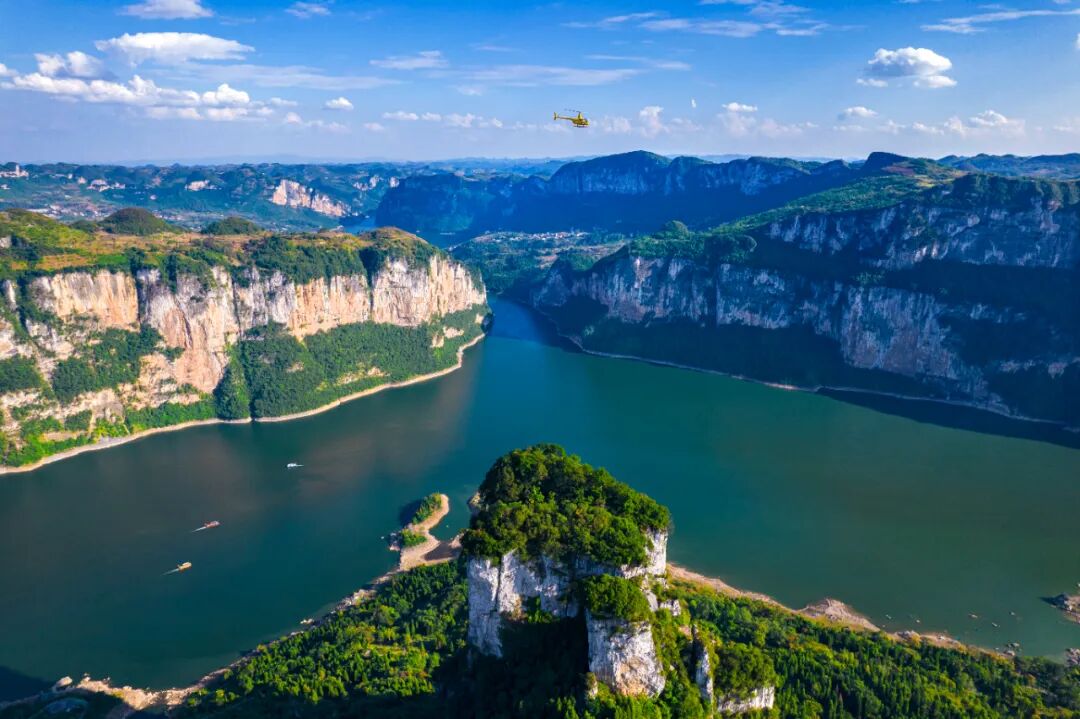 原名“化屋基”,意为“悬崖下的村寨”。这里青山如黛、碧水长流、云端架桥,被誉为“千里乌江上最美的崖壁画廊”。
