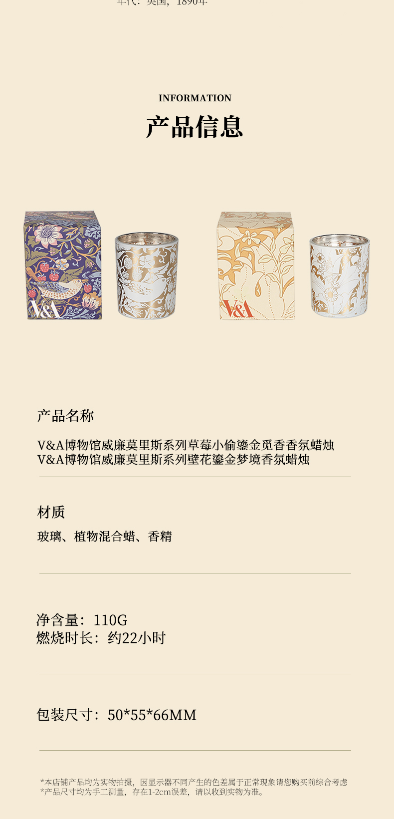 V&A博物馆 威廉莫里斯系列 草莓小偷-鎏金觅香 壁花-鎏金梦境 香氛蜡烛