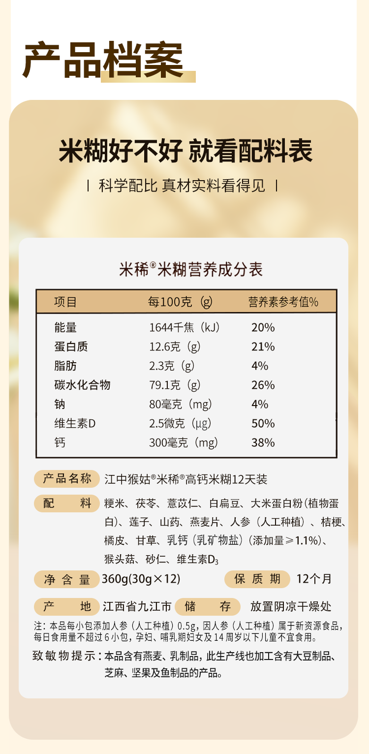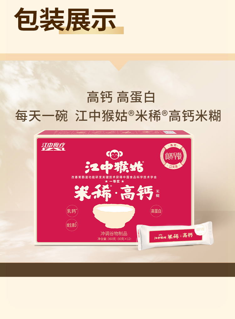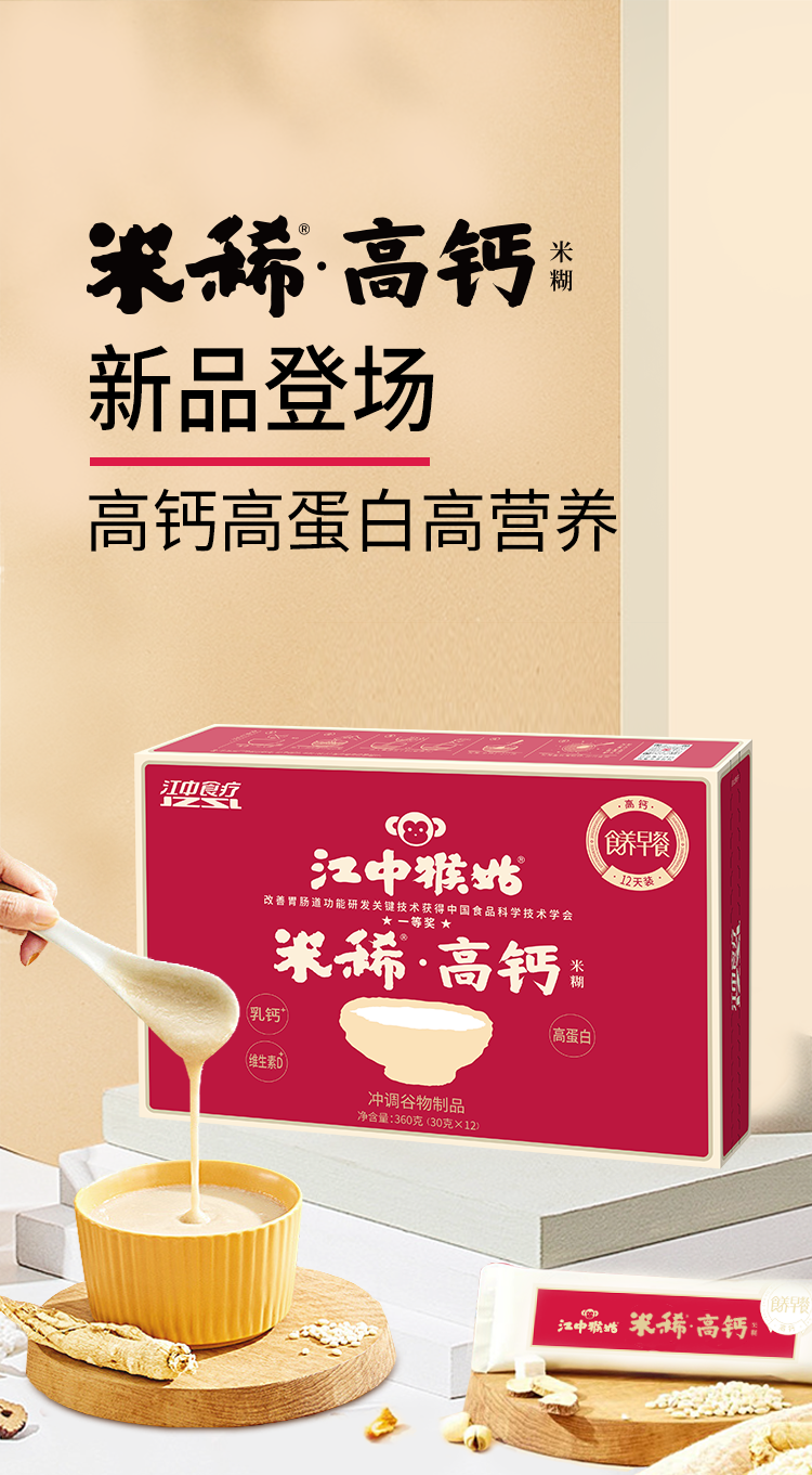 【轻松补钙】江中猴姑米稀高钙米糊高钙营养猴头菇12天健康早餐