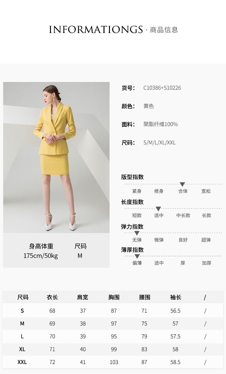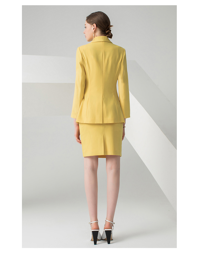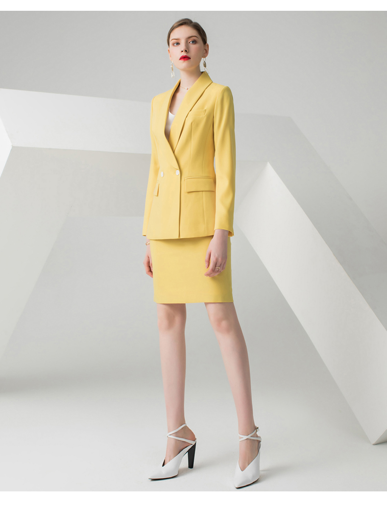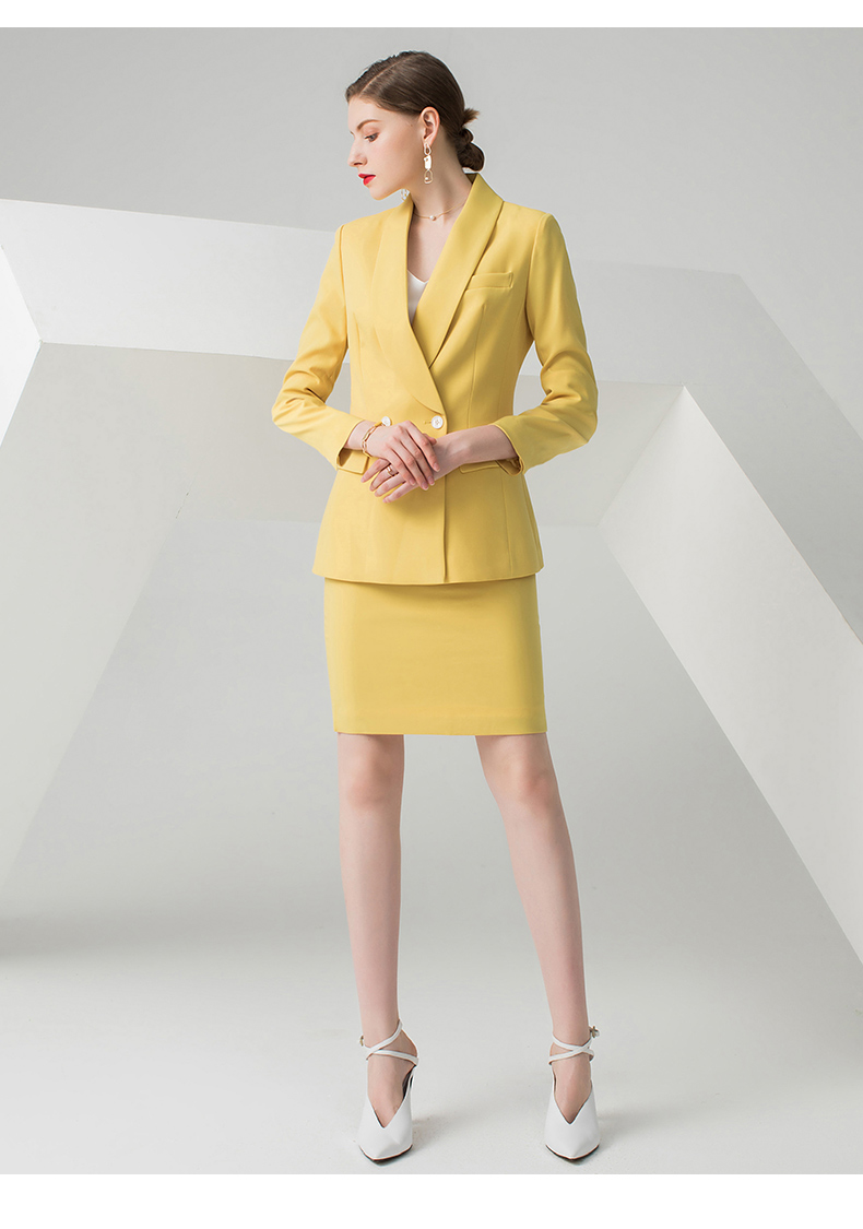 IWY/黄色长袖西装半裙套装C10386+S10226
