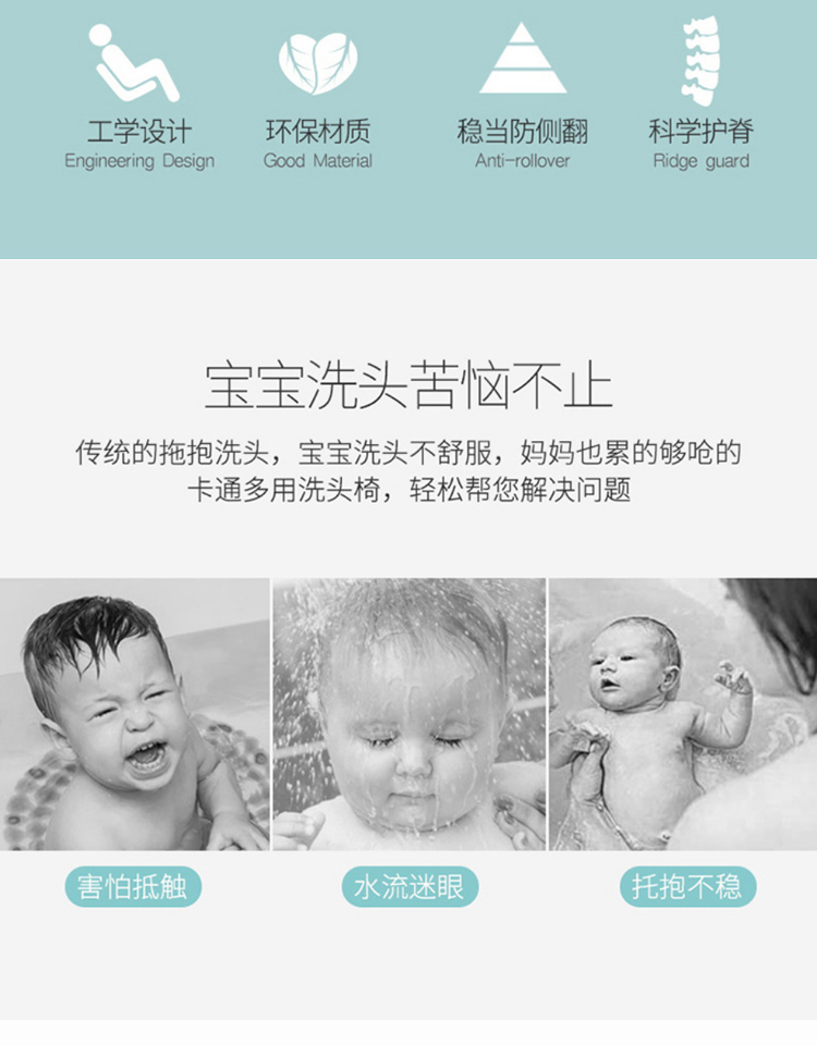 【儿童折叠洗头椅】可折叠婴儿宝宝躺卧安全椅 家用大号加固小孩防滑洗发床凳