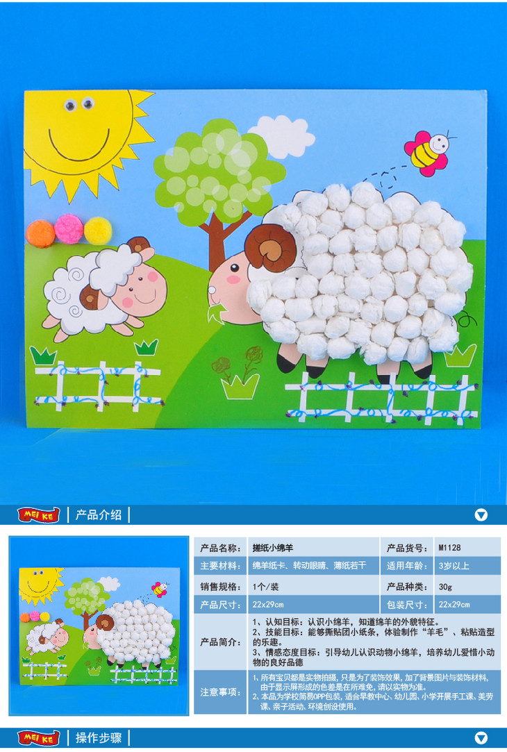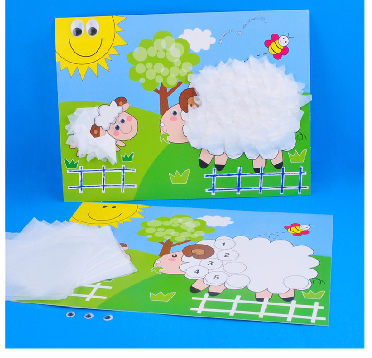 幼儿园课堂手工DIY搓纸小绵羊材料包