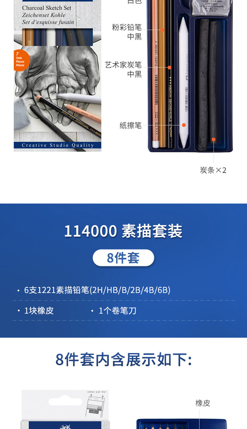 德国辉柏嘉 蓝系列 素描套装【素描铅笔/炭笔】