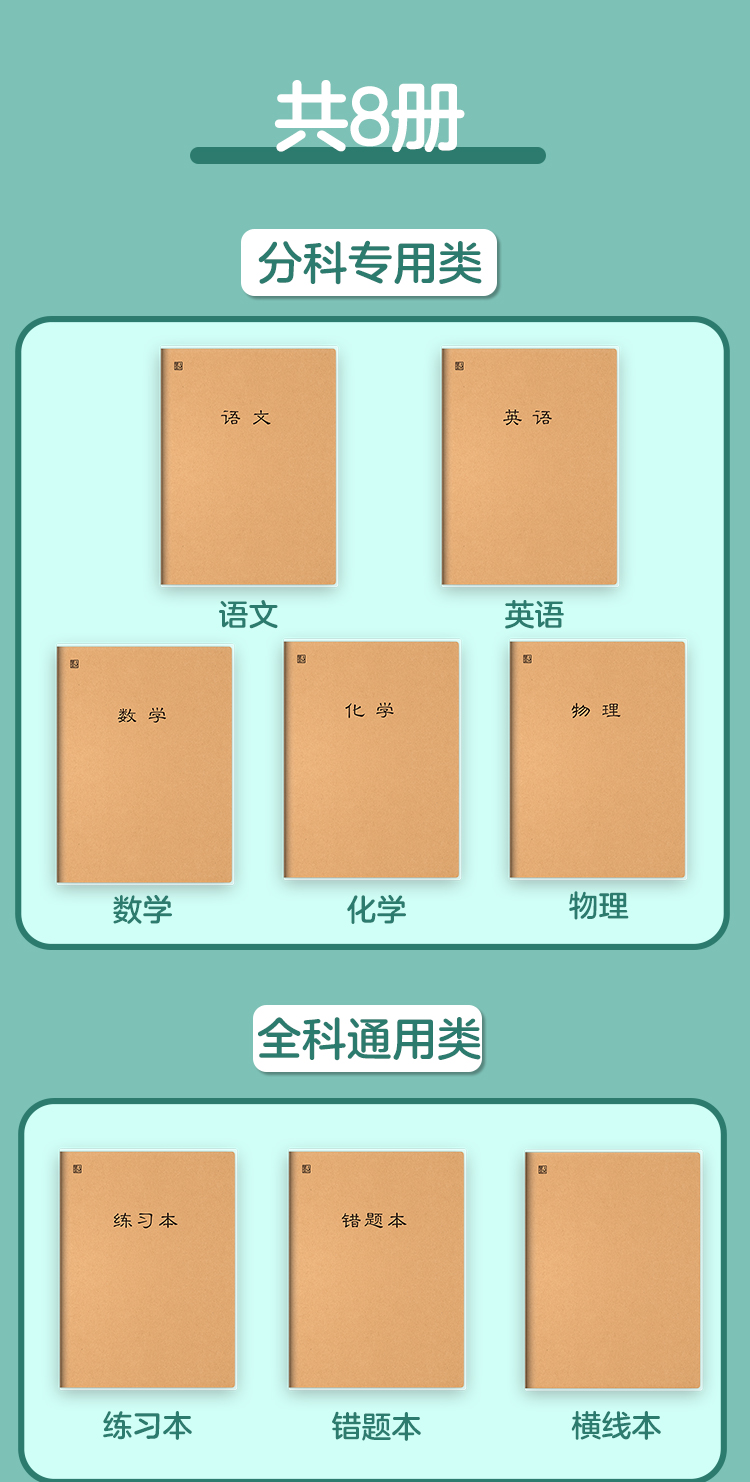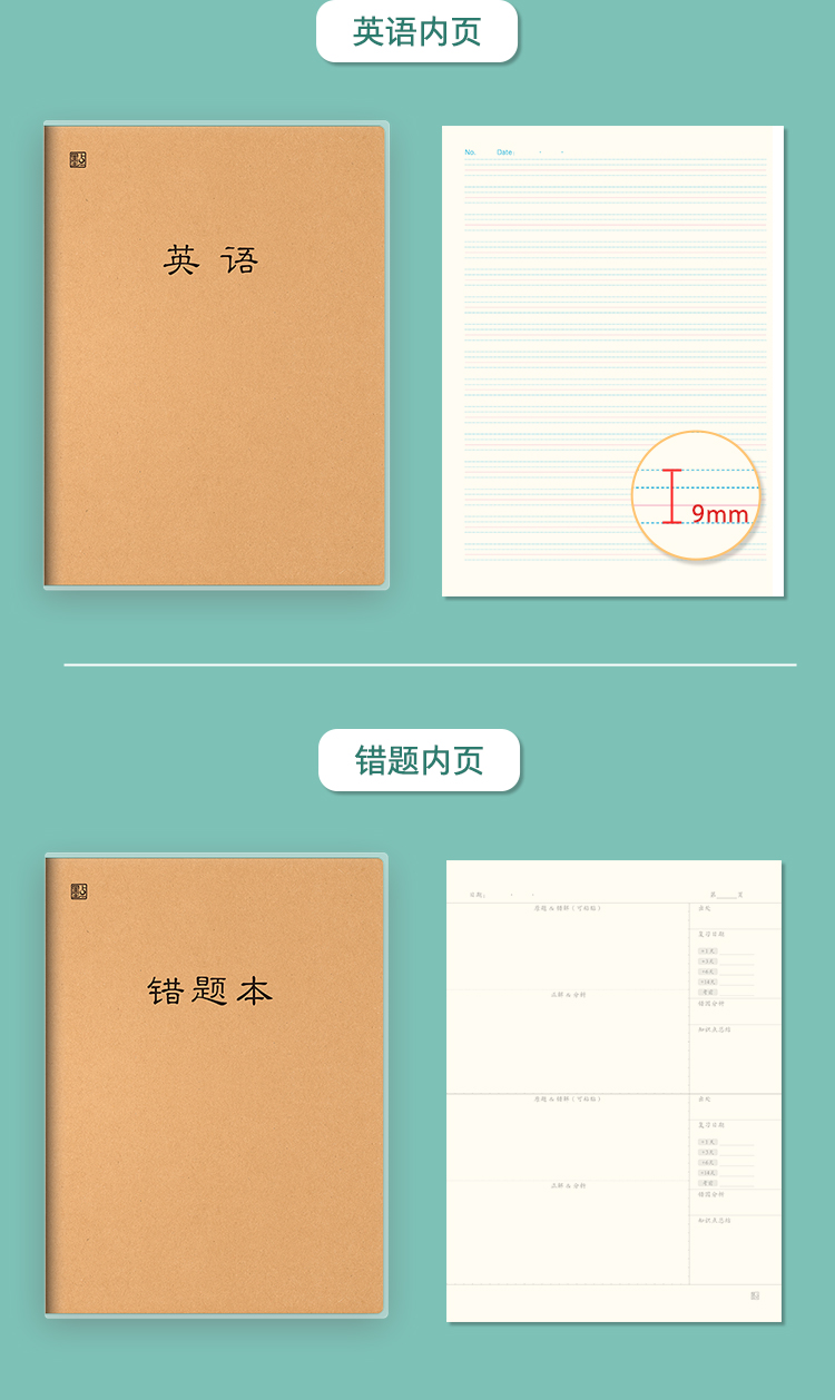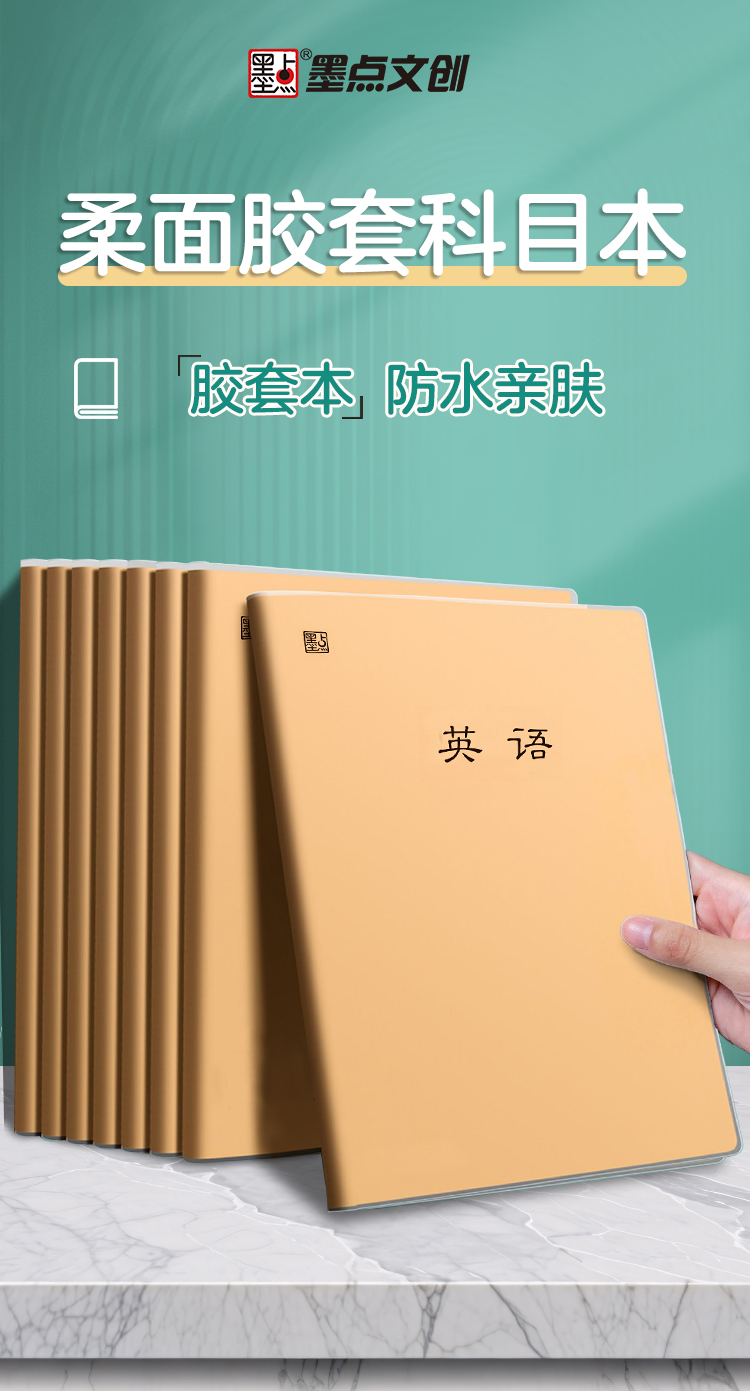 墨点文创 柔面胶套科目本 新款超厚笔记本16开简约大本子课堂笔记加厚软皮错题本英语本护眼纸张记事本横线本
