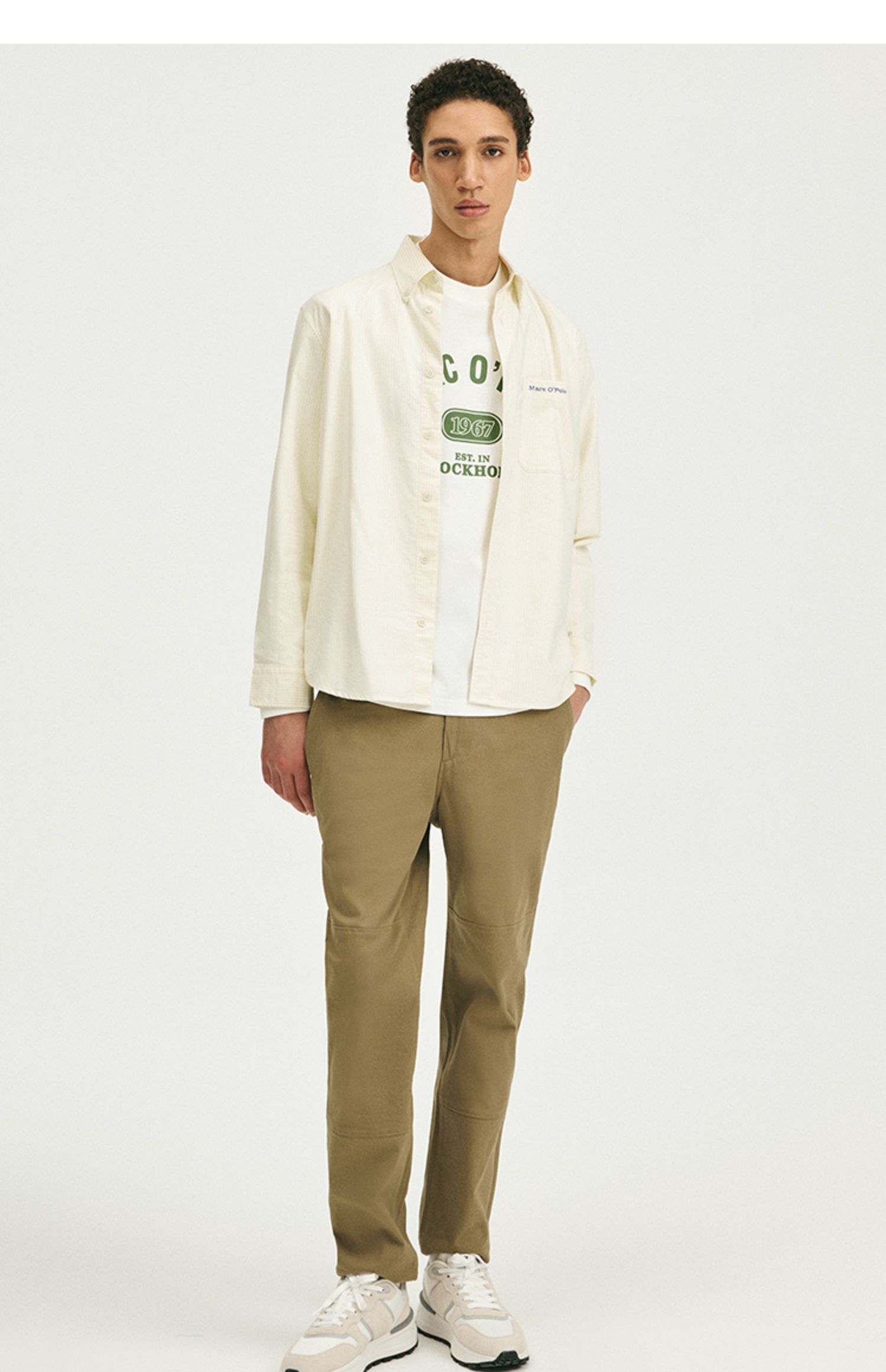 Marc O'Polo/MOP 秋季新款纯棉简约透气牛津纺条纹长袖衬衫男