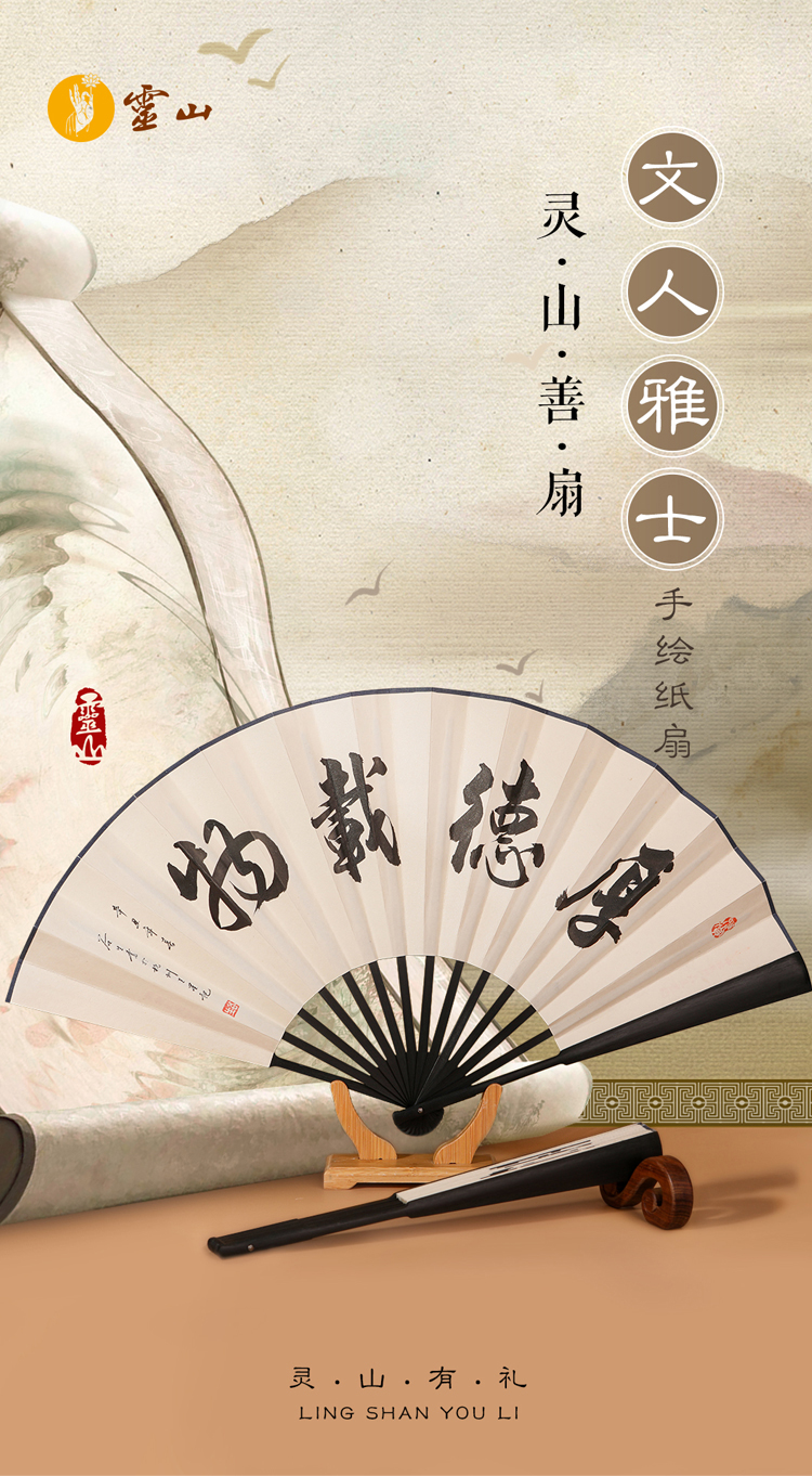 灵山文人雅士手绘纸扇