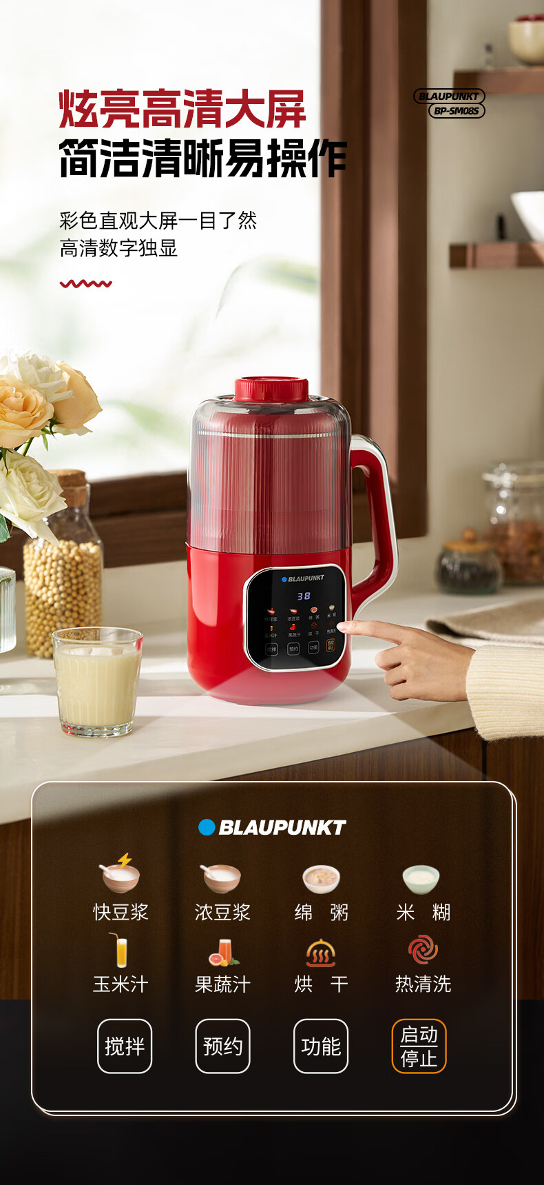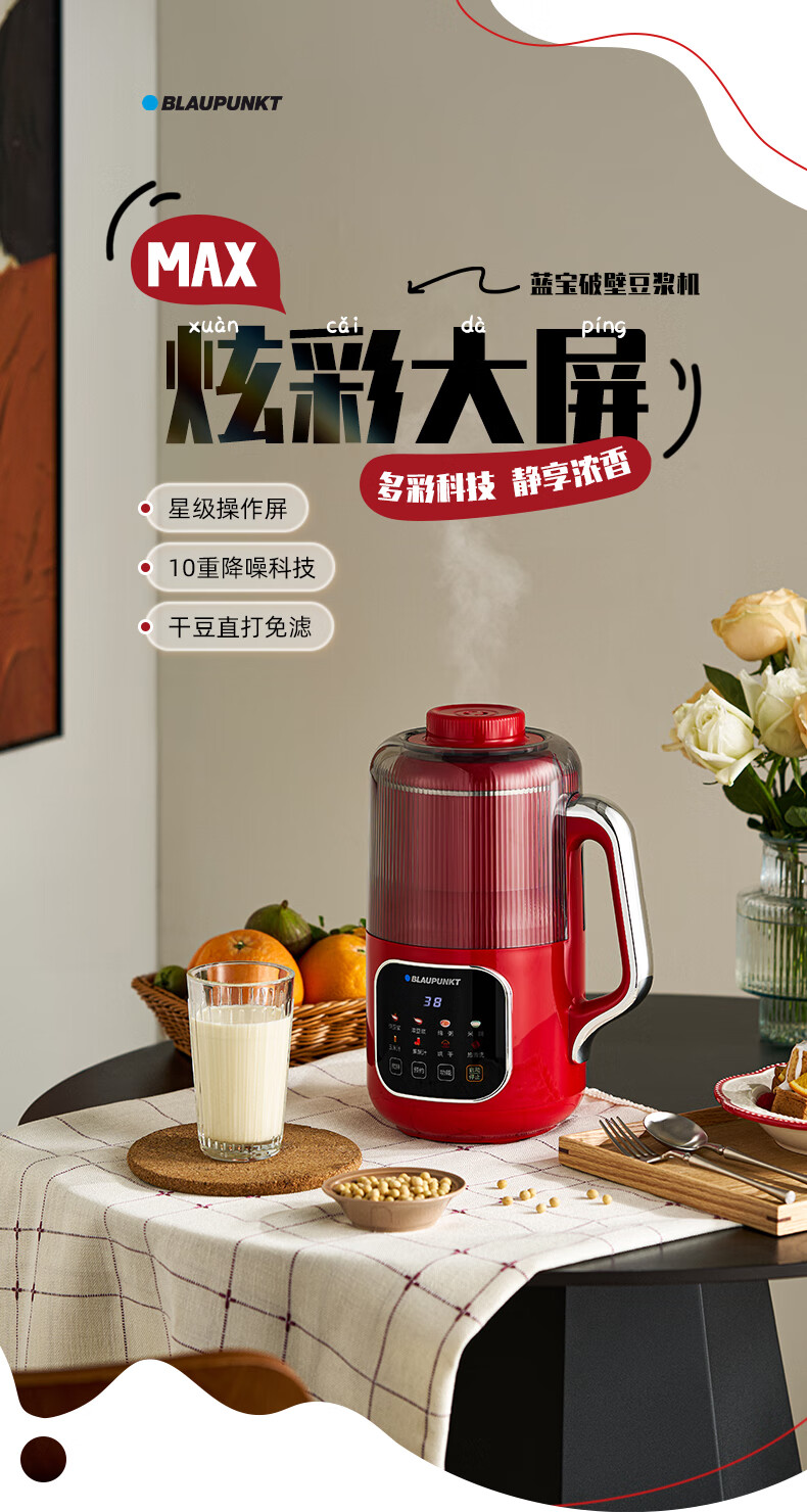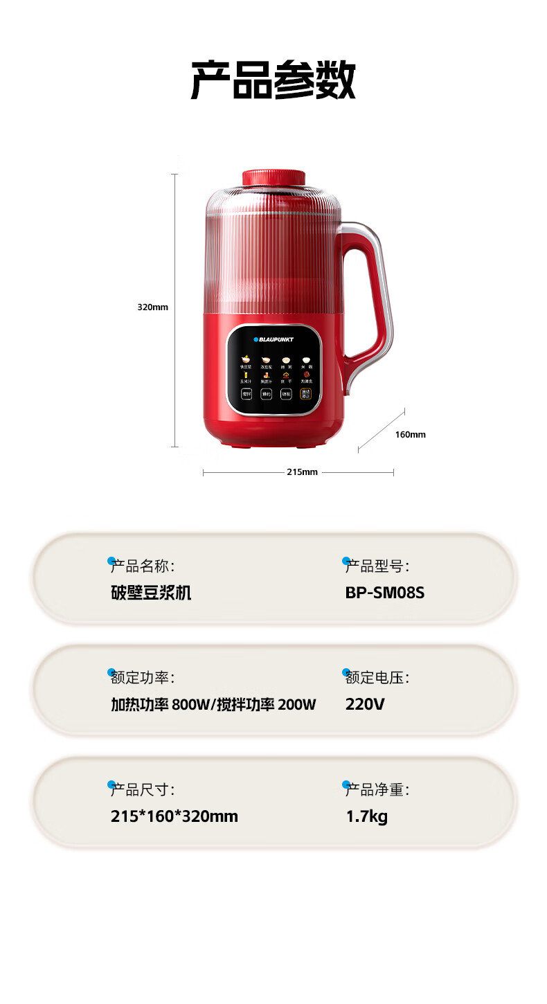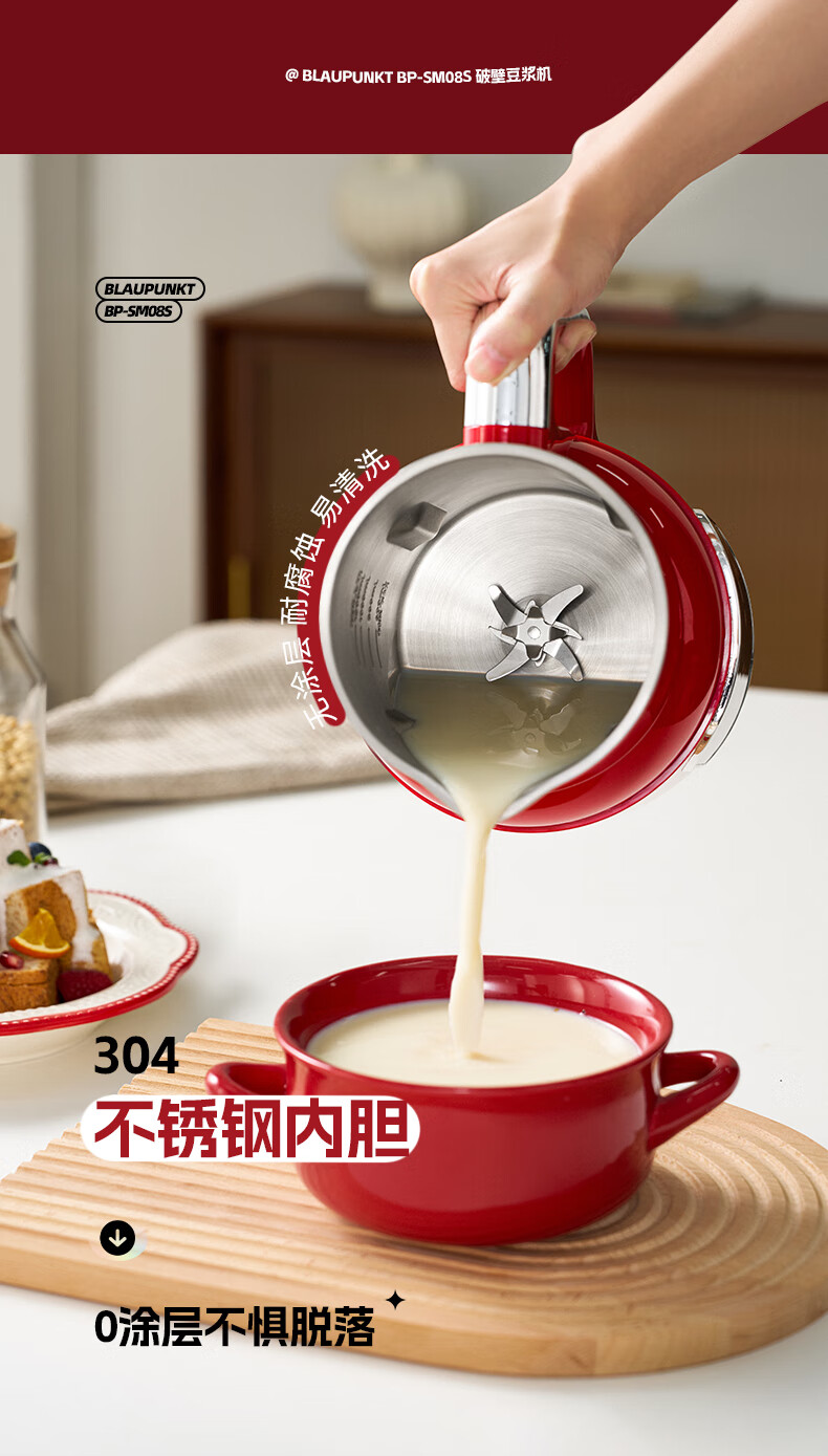 蓝宝(BLAUPUNKT)破壁机家用小型豆浆机升级全自动多功能SM08S