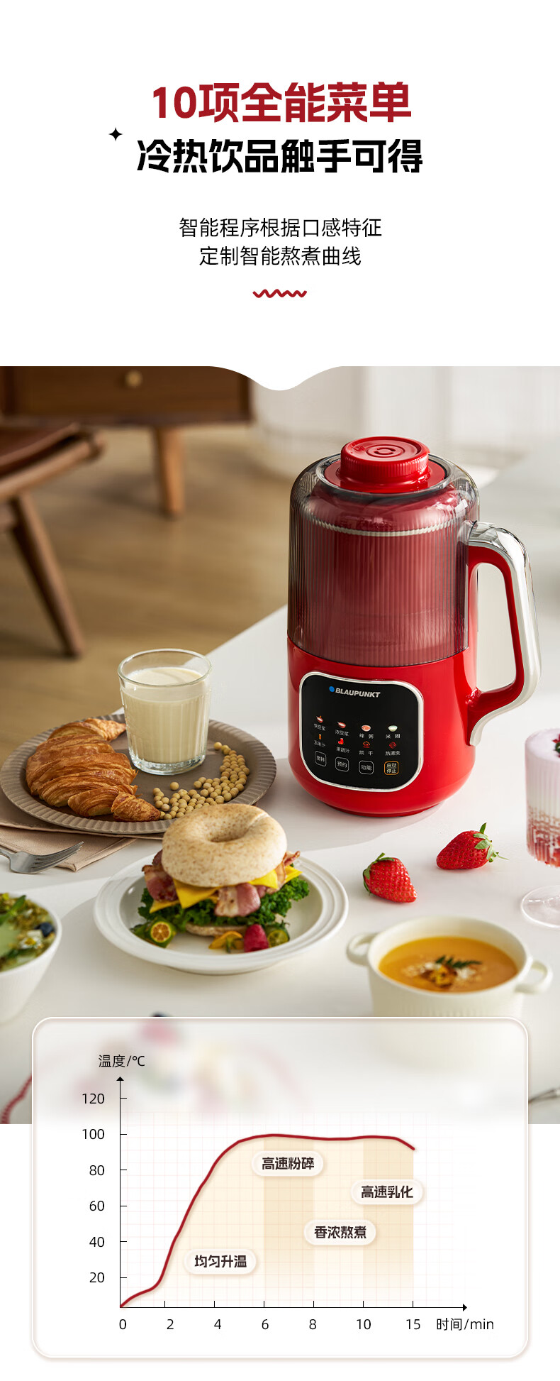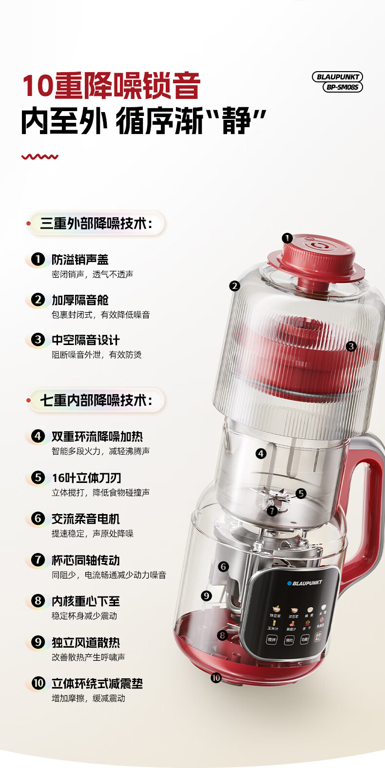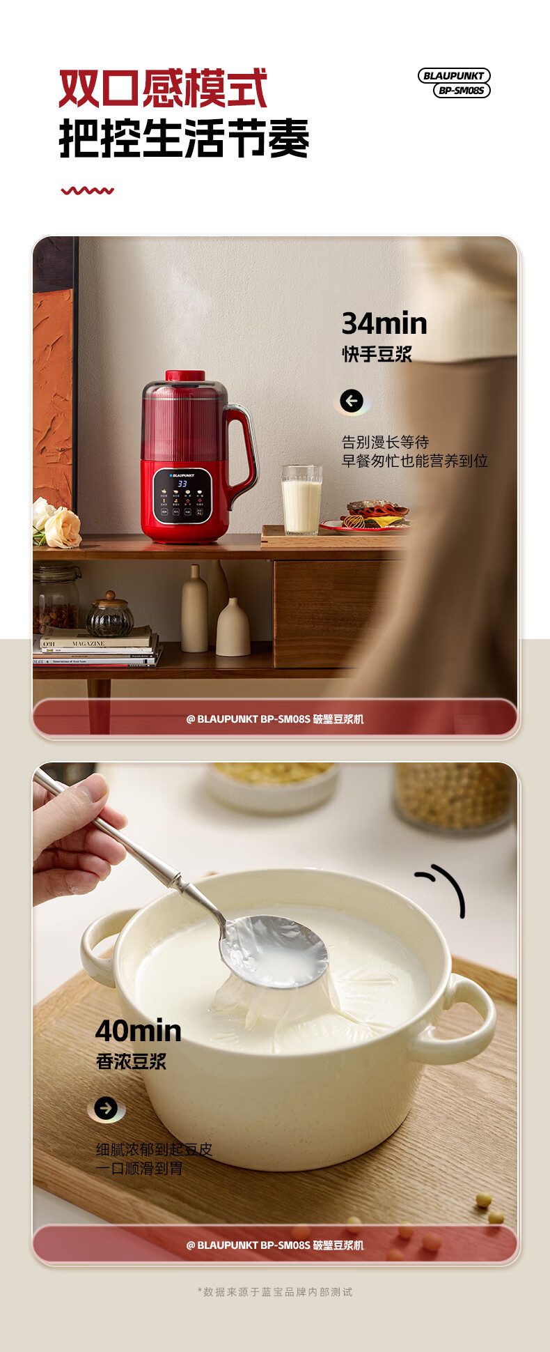 蓝宝(BLAUPUNKT)破壁机家用小型豆浆机升级全自动多功能SM08S