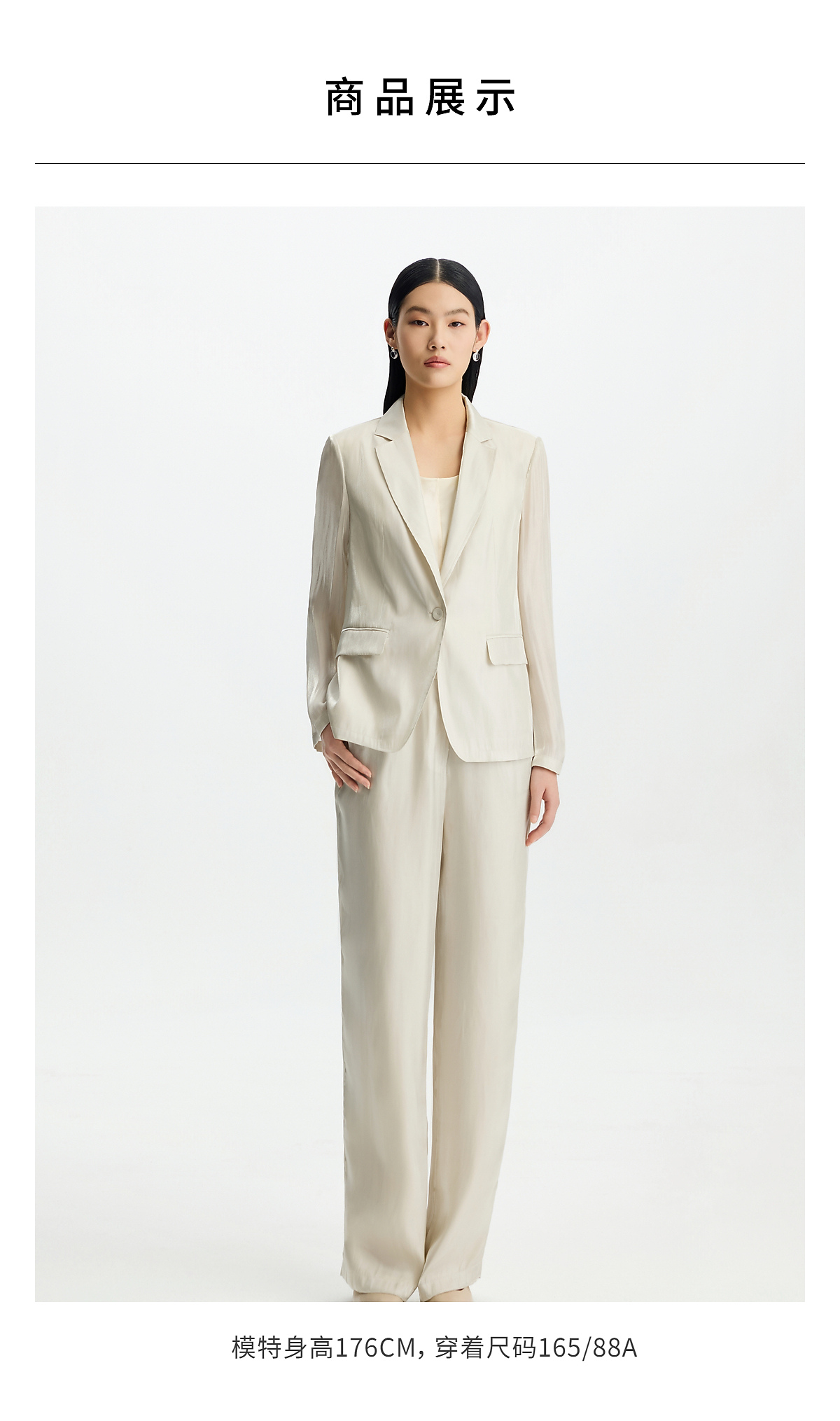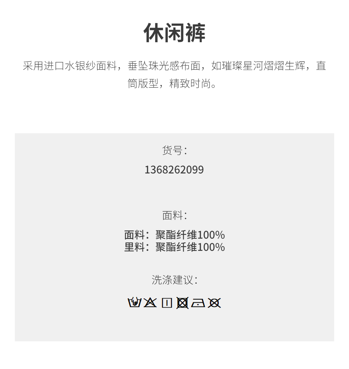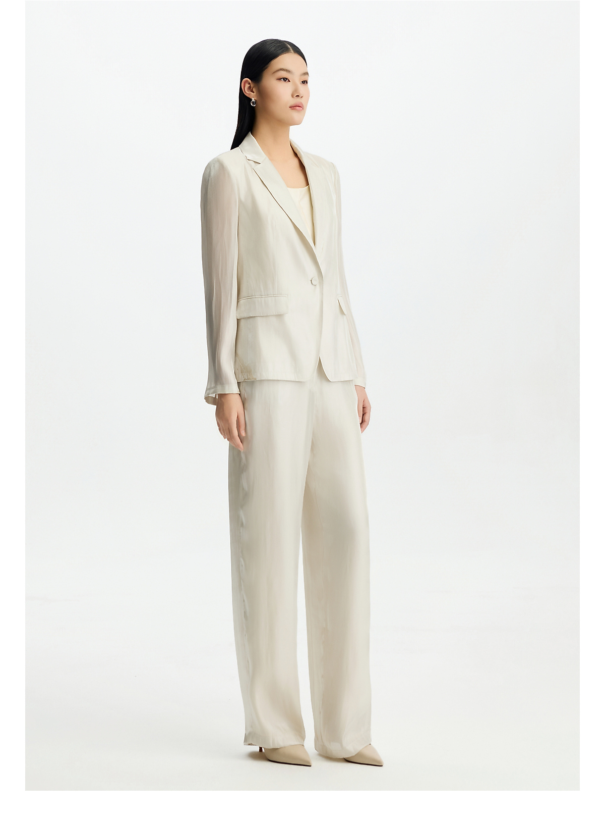 PURE TOUCH女装26春夏新款水银纱休闲阔腿裤珠光垂坠精致直筒长裤