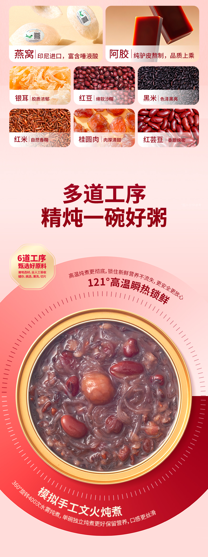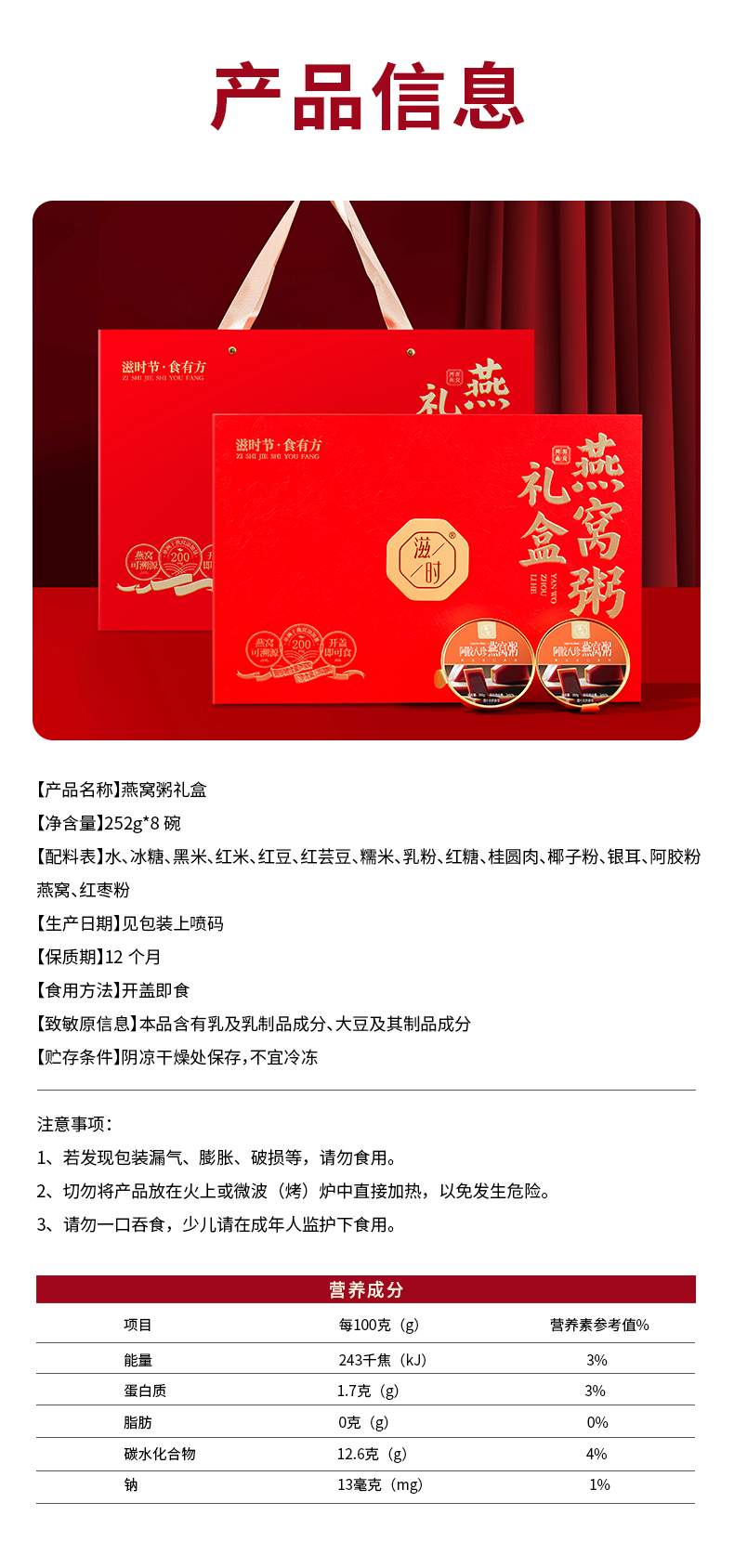 ⁴【阿胶八珍燕窝粥礼盒】每碗添加200mg干燕窝+阿胶+多种草本食材 开盖即食 252g/碗*8 YC04-ZSSC