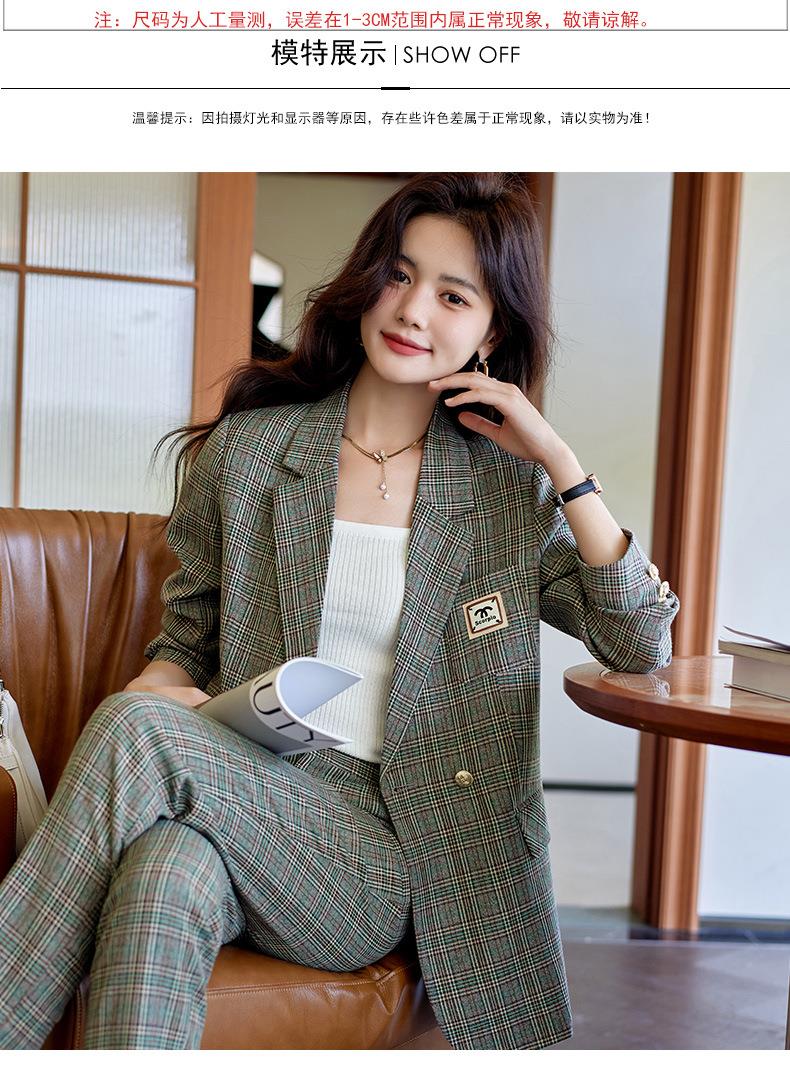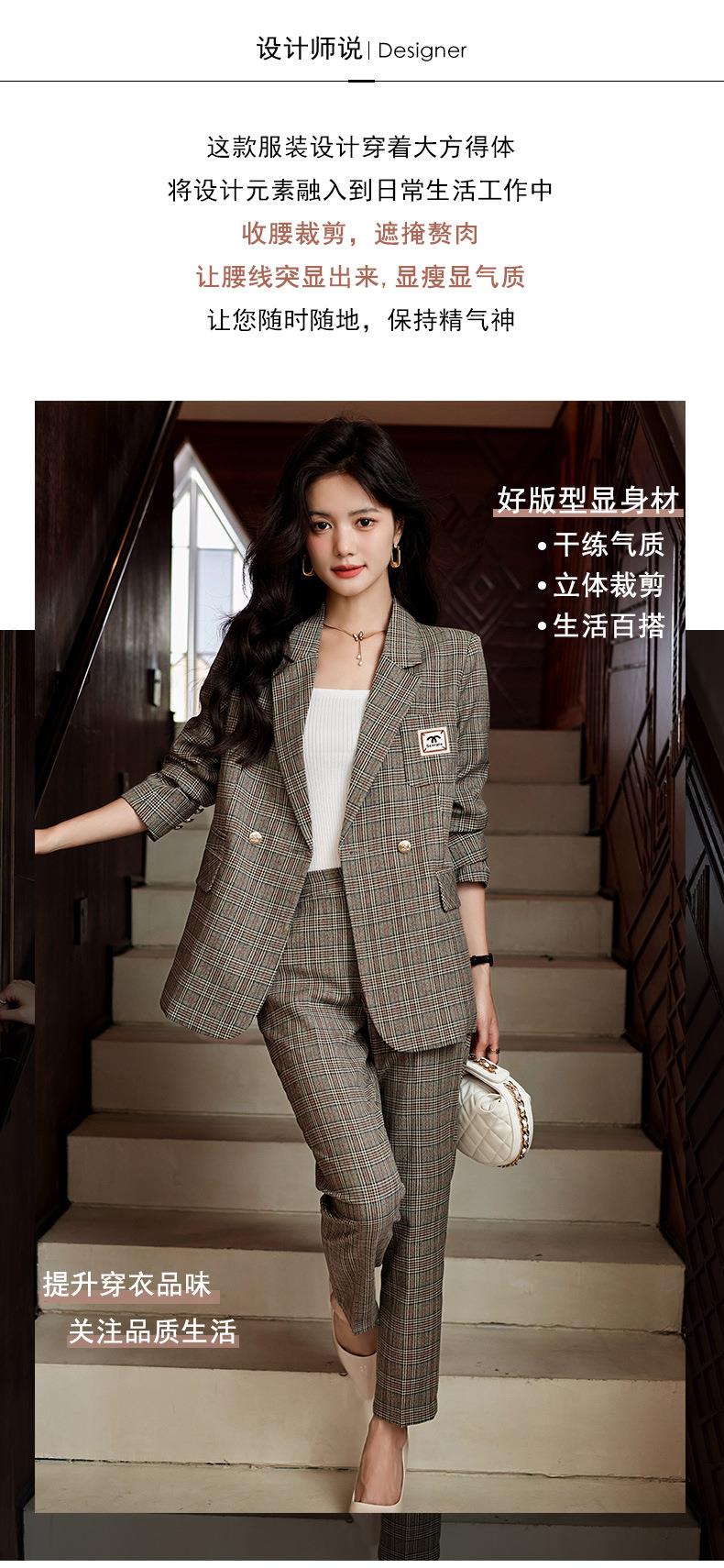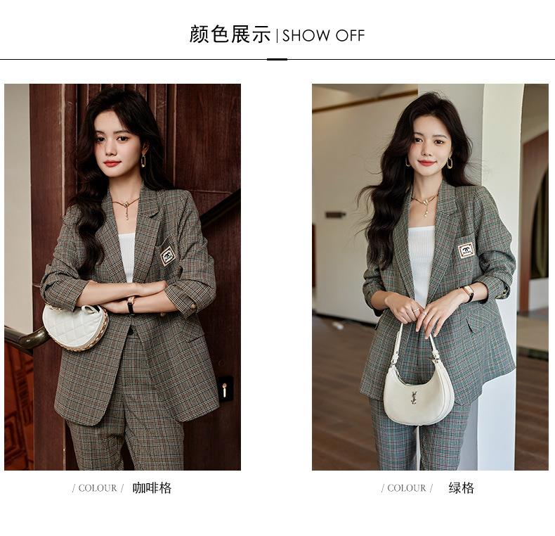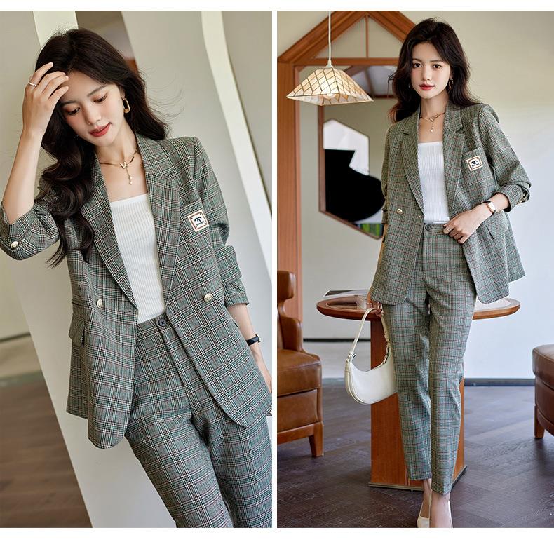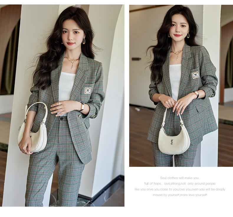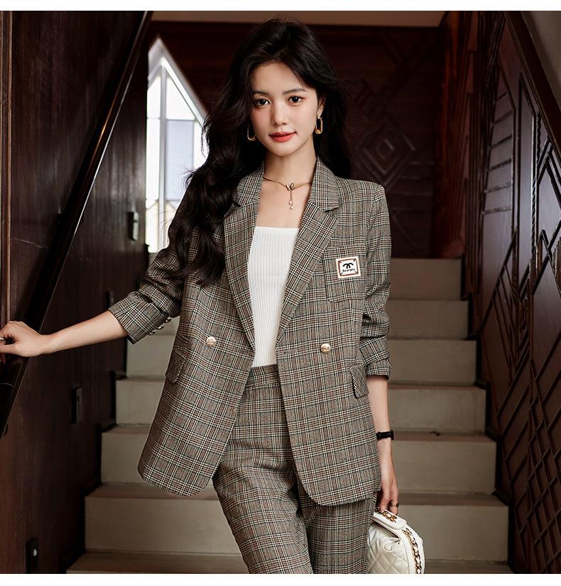 娜璐多 复古格纹小西服+长裤两件套2023御姐炸街独特套装女休闲通勤漂亮