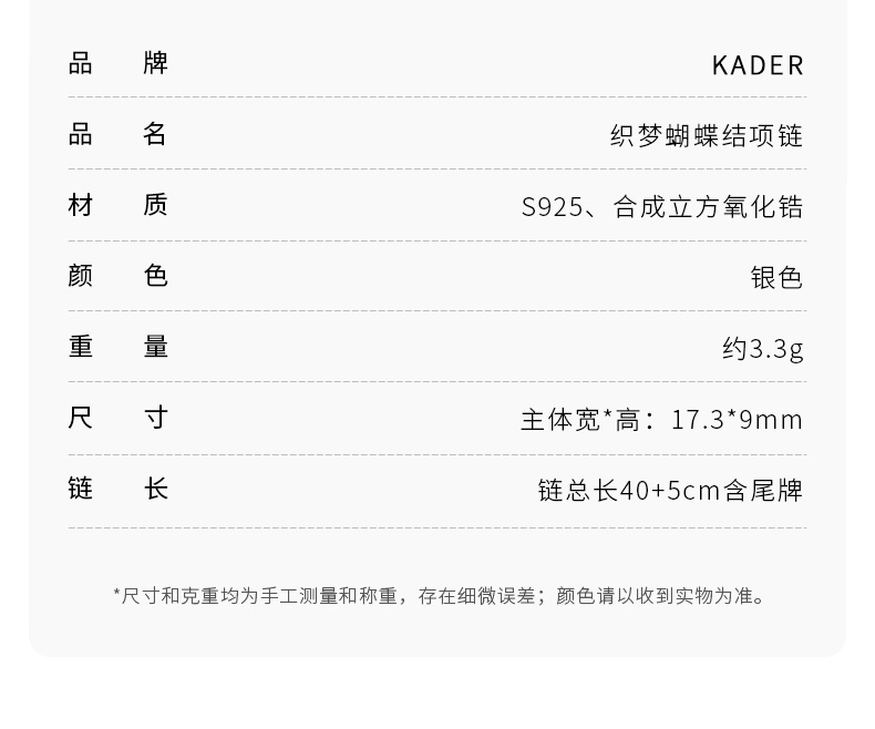 卡蒂罗/KADER 织梦蝴蝶结项链 甜美可爱轻奢小众设计可调节 轻奢小众原创设计锁骨链丝带结配饰
