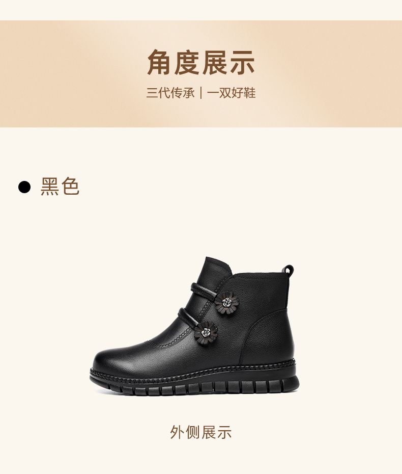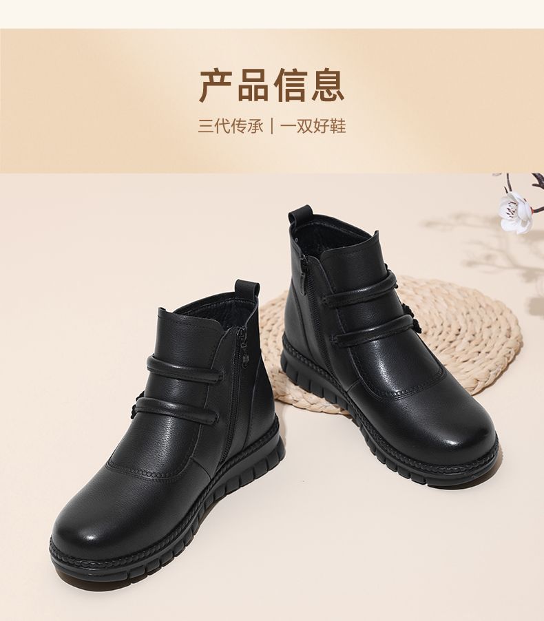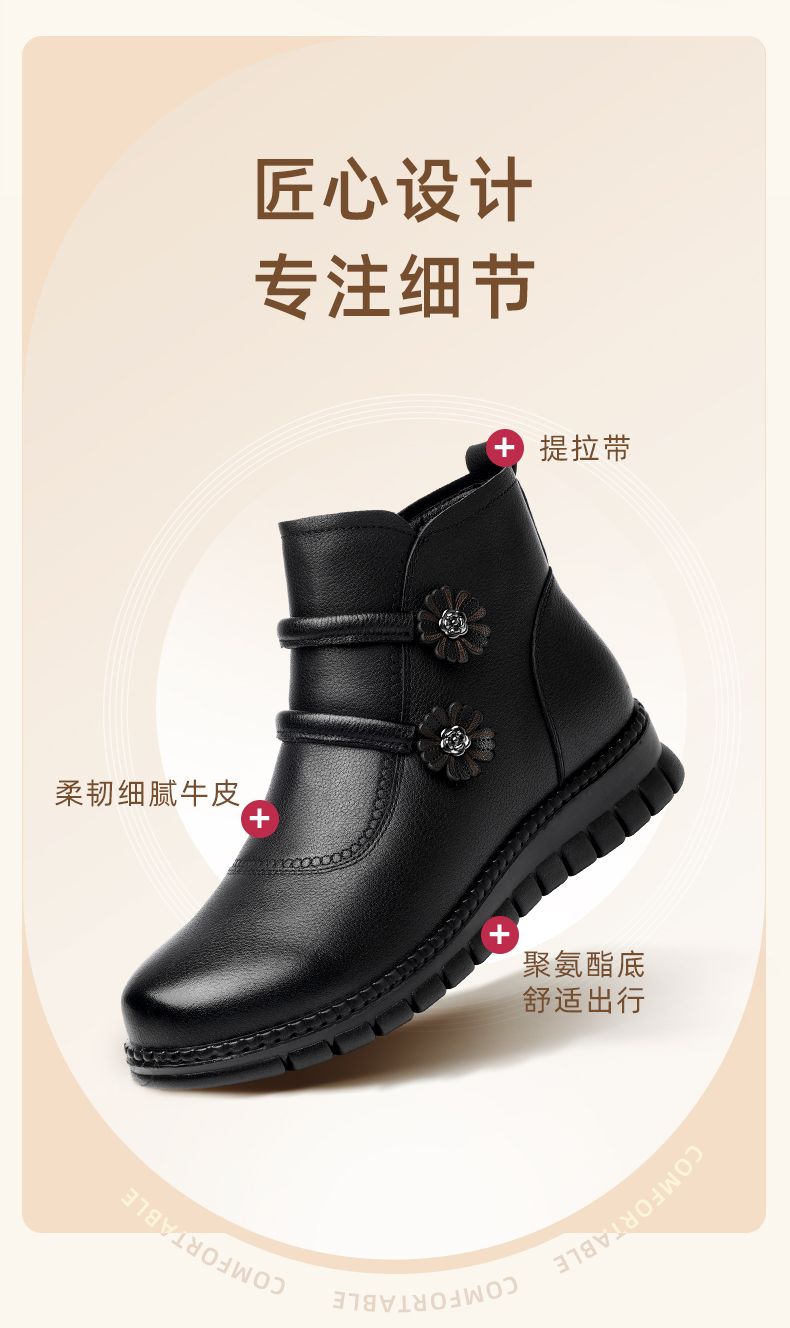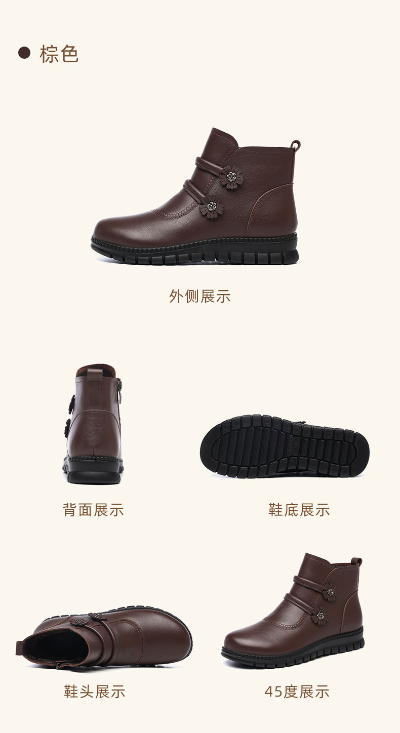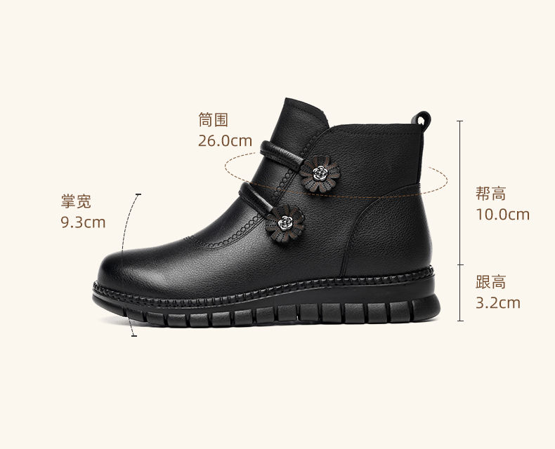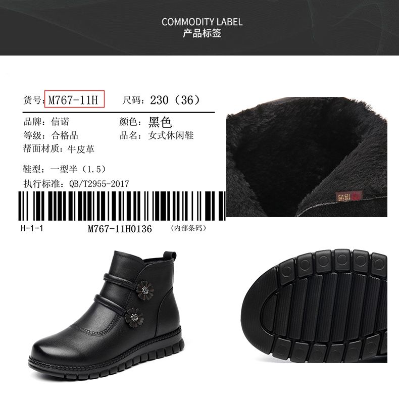 信诺真皮老人鞋女冬季新款短靴加绒加厚保暖棉鞋中老年女鞋妈妈鞋M767-11H