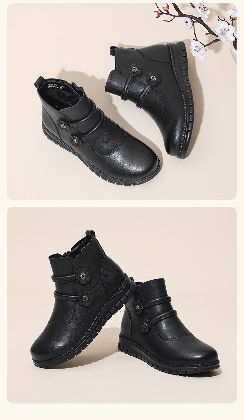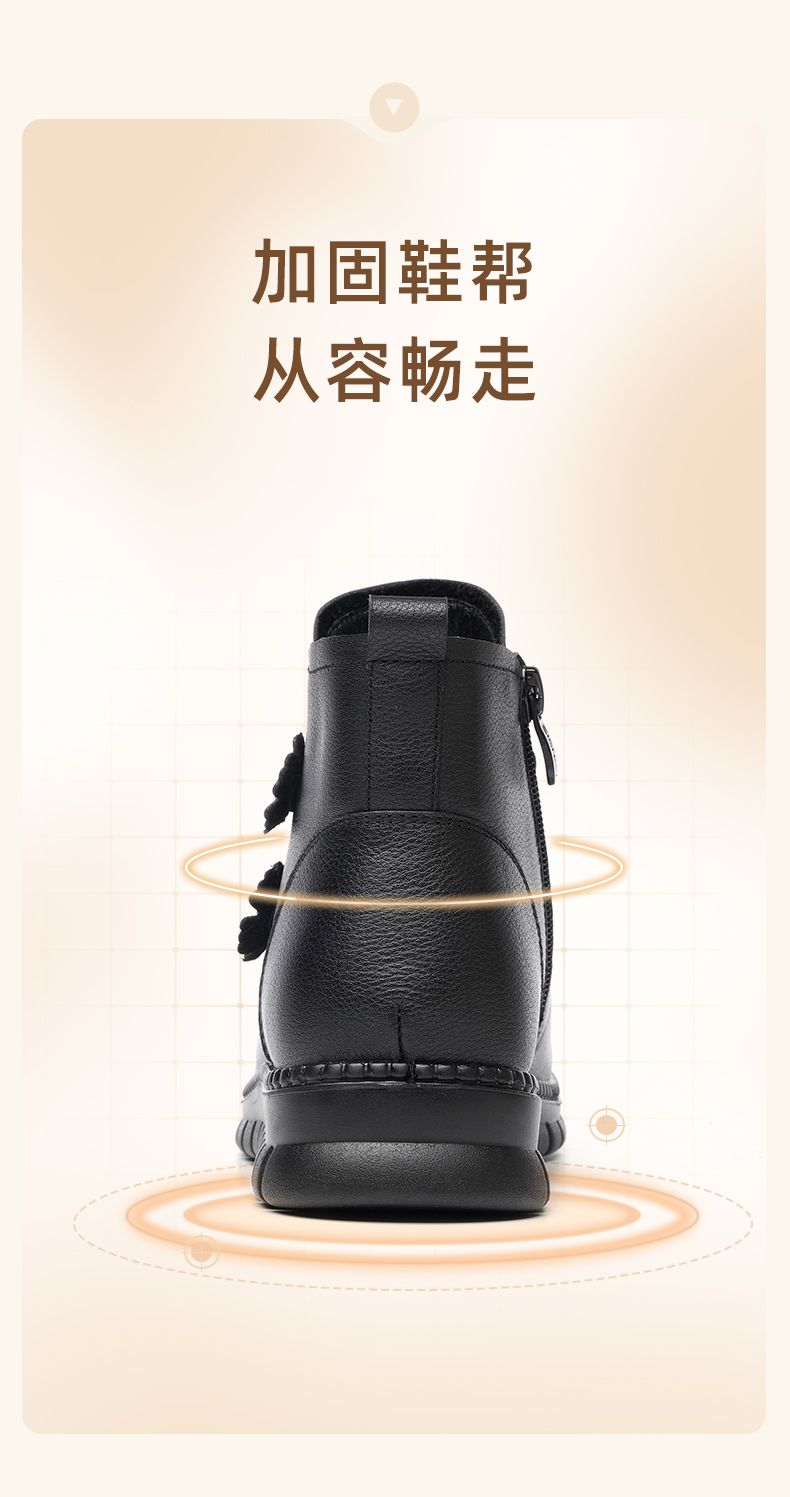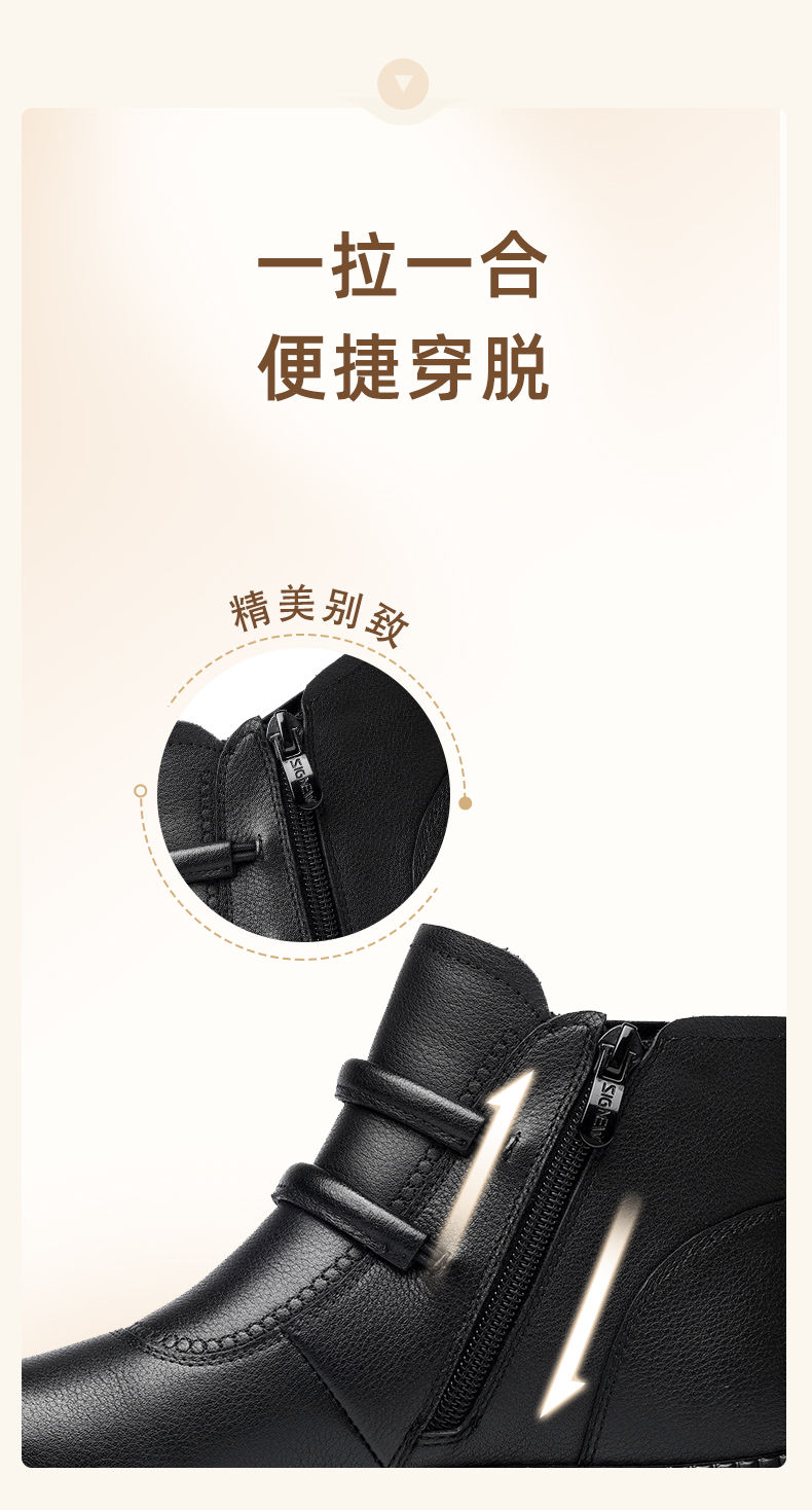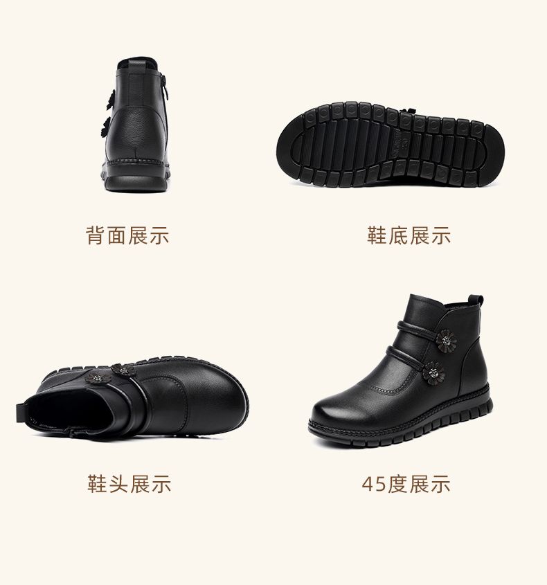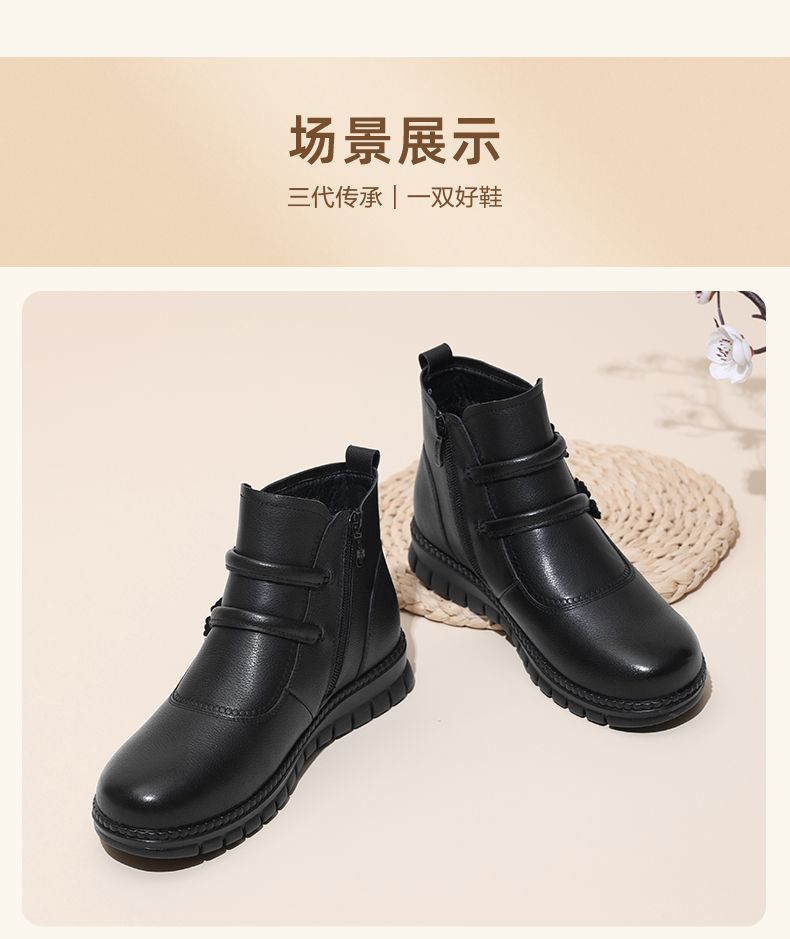信诺真皮老人鞋女冬季新款短靴加绒加厚保暖棉鞋中老年女鞋妈妈鞋M767-11H