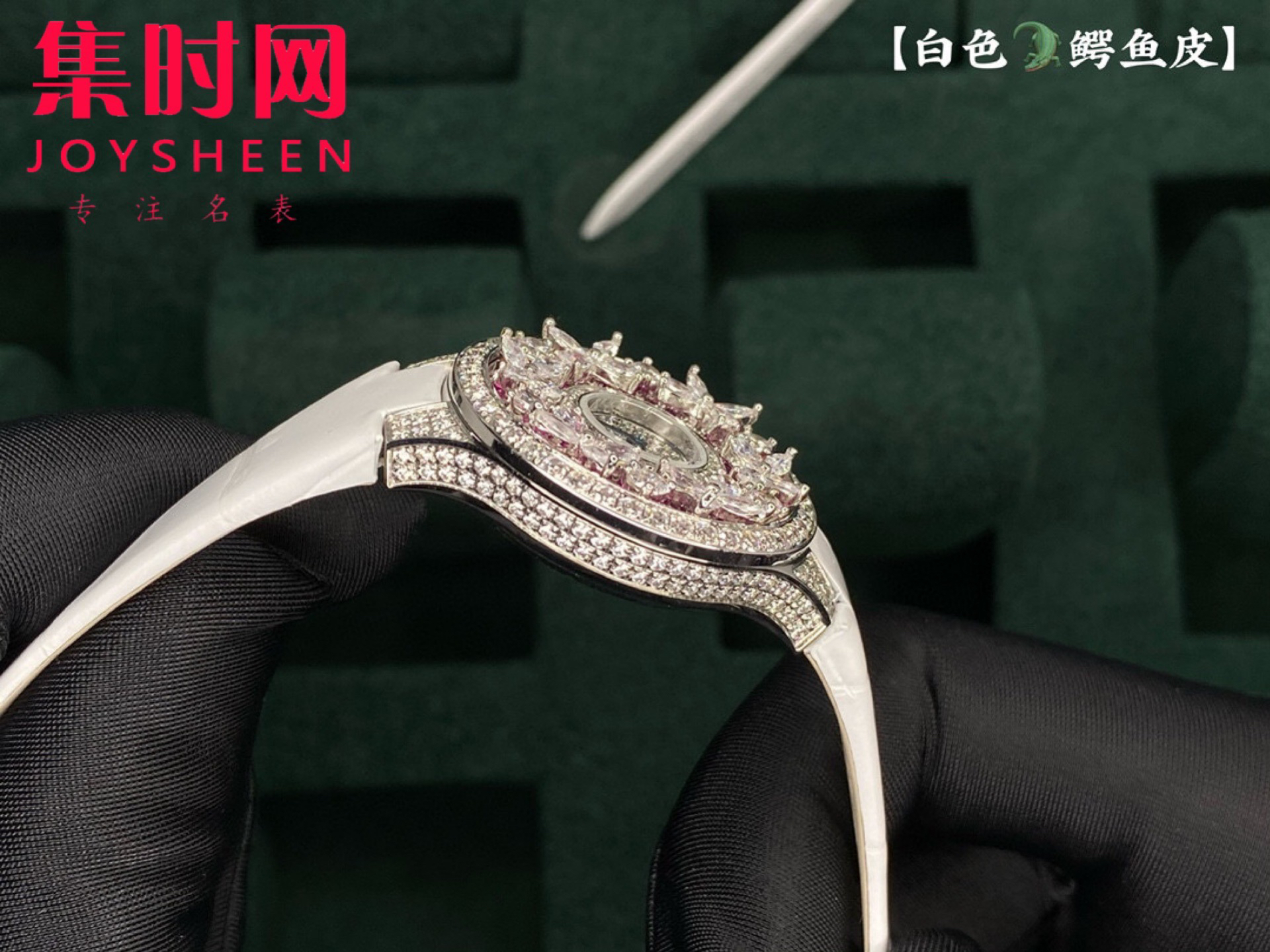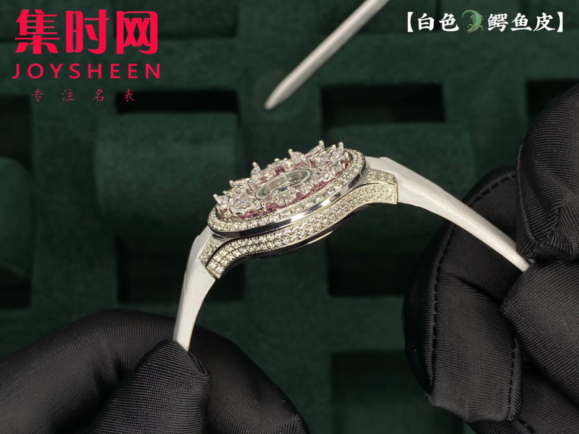 底盖调时间,正品同步操作;头粒手工美洲鳄鱼皮表带制作