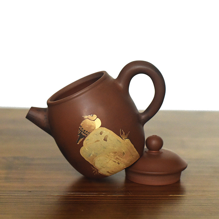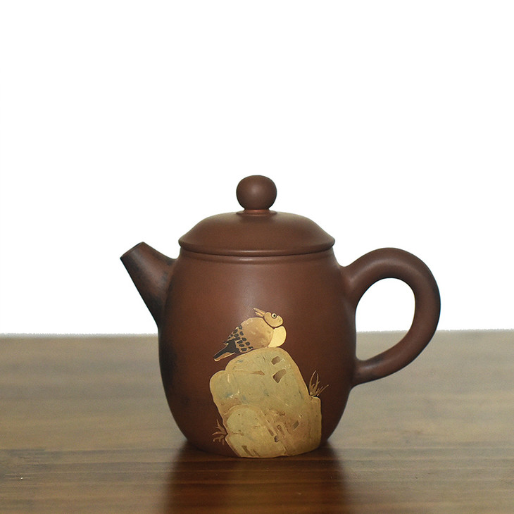 三金,本名李鑫,启正陶社社员,2010年在朝阳楼跟随半根先生学习制壶。三金制陶随性而发,平淡天真,器型古朴,装饰淡雅,常作闲人、傻鱼、呆僧图饰······生趣盎然。制陶应是玩,不作高态,能让喜欢的人观之用之心生愉悦,便是乐事。虽有不足,但制陶路漫漫,坚持下去,必有所收获。