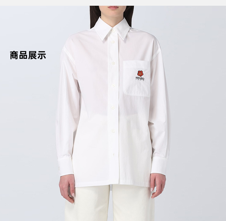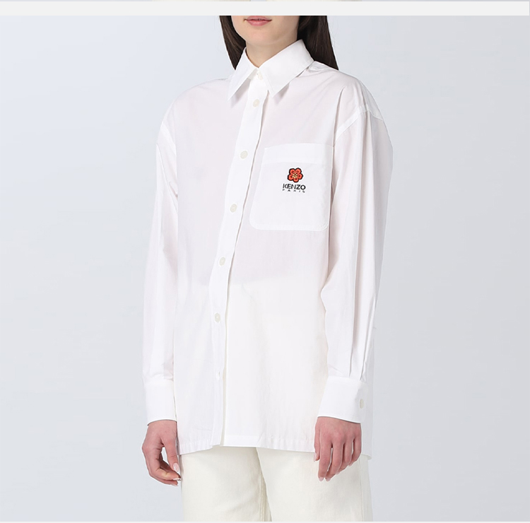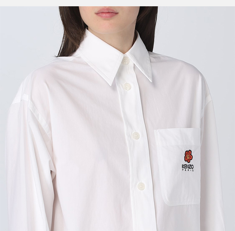 KENZO 高田贤三 女士“BOKE FLOWER”徽章刺绣棉质长袖衬衫 白色 FD52 CH091 9LH 01