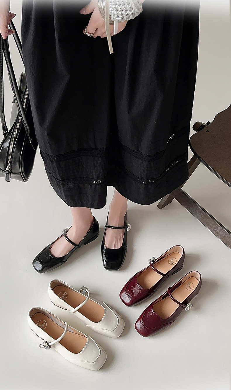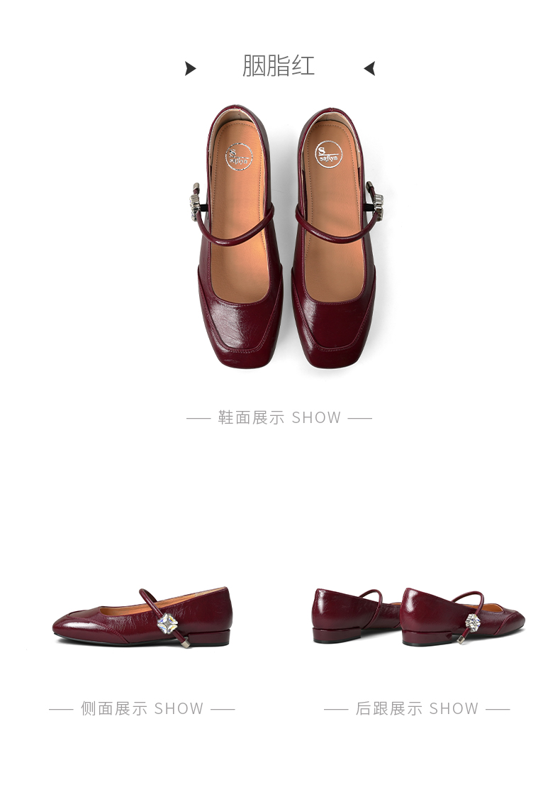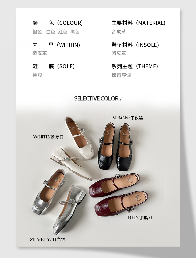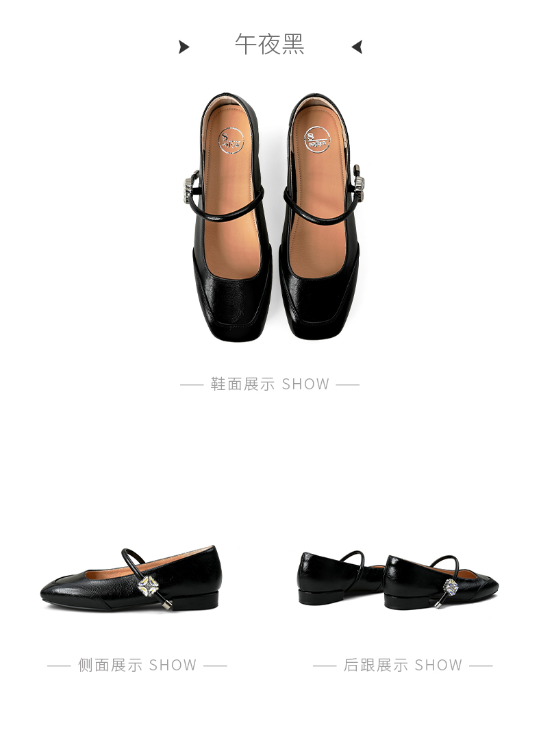 Safiya/索菲娅2025法式方头钻扣时尚低跟浅口银色玛丽珍单鞋SFD3111415