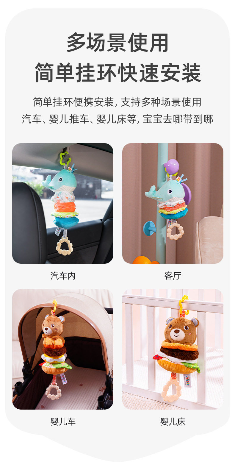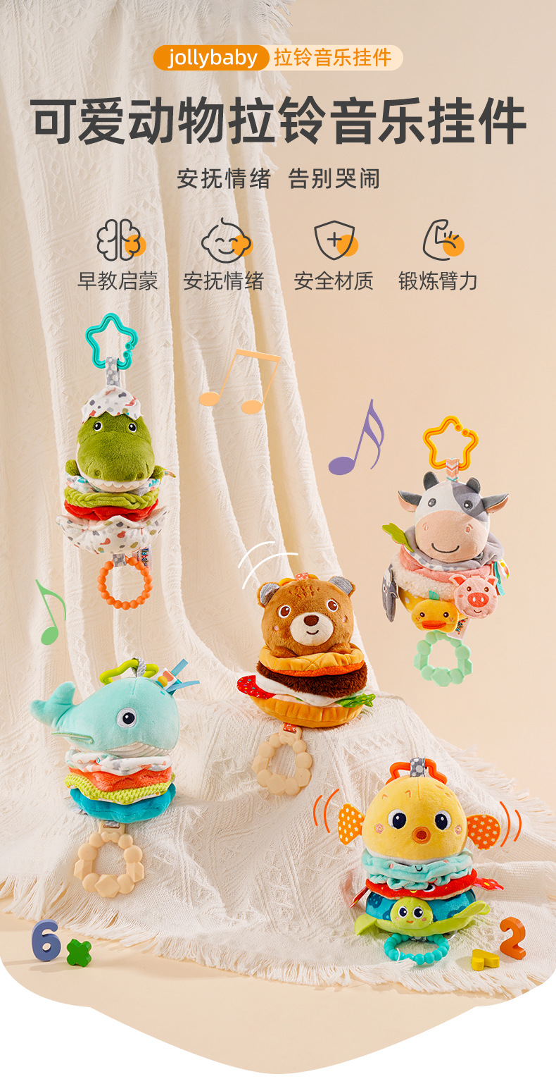 【安抚情绪 告别哭闹】Jollybaby婴儿动物拉铃音乐风铃 床头摇铃推车挂件