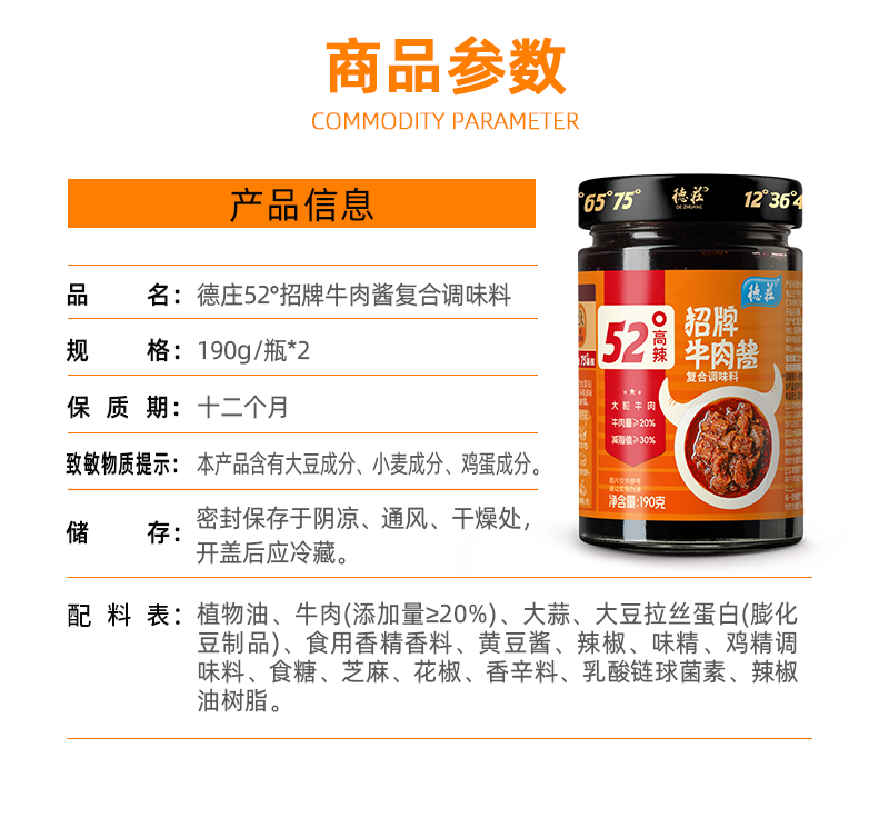 德庄52°招牌牛肉酱复合调味料 190g/瓶*2