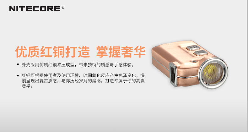 NITECORE奈特科尔TINI CU红铜色迷你小巧金属充电钥匙灯