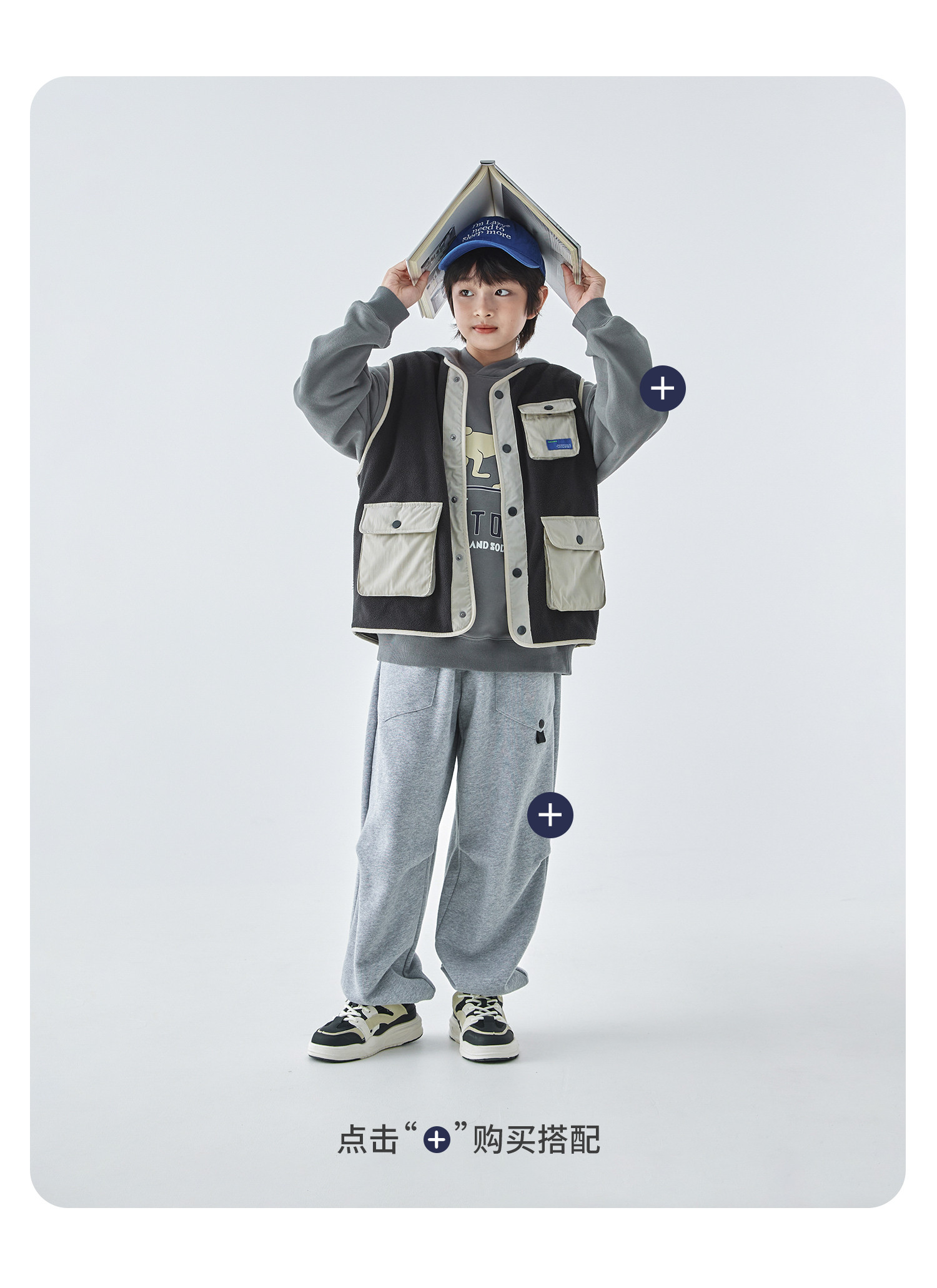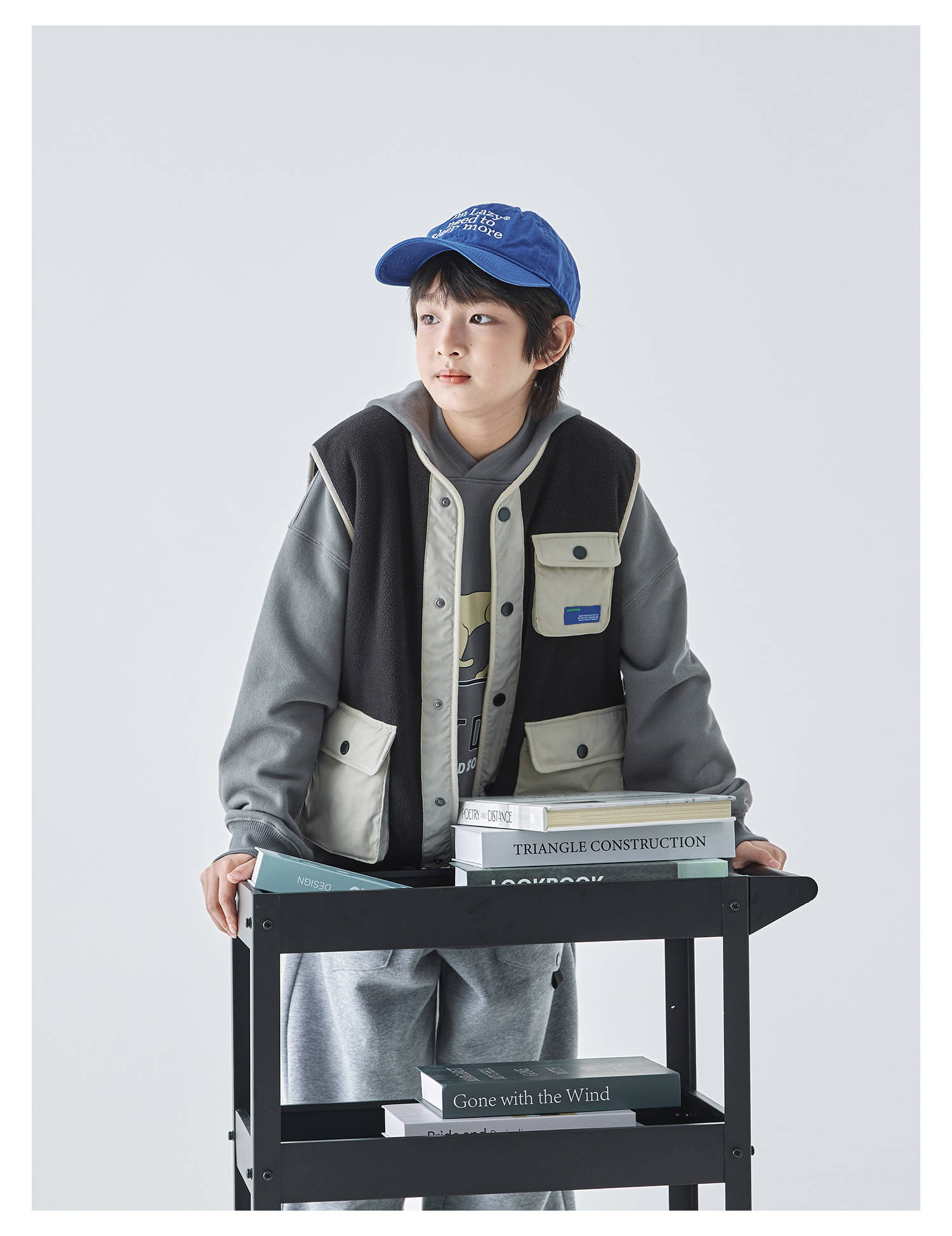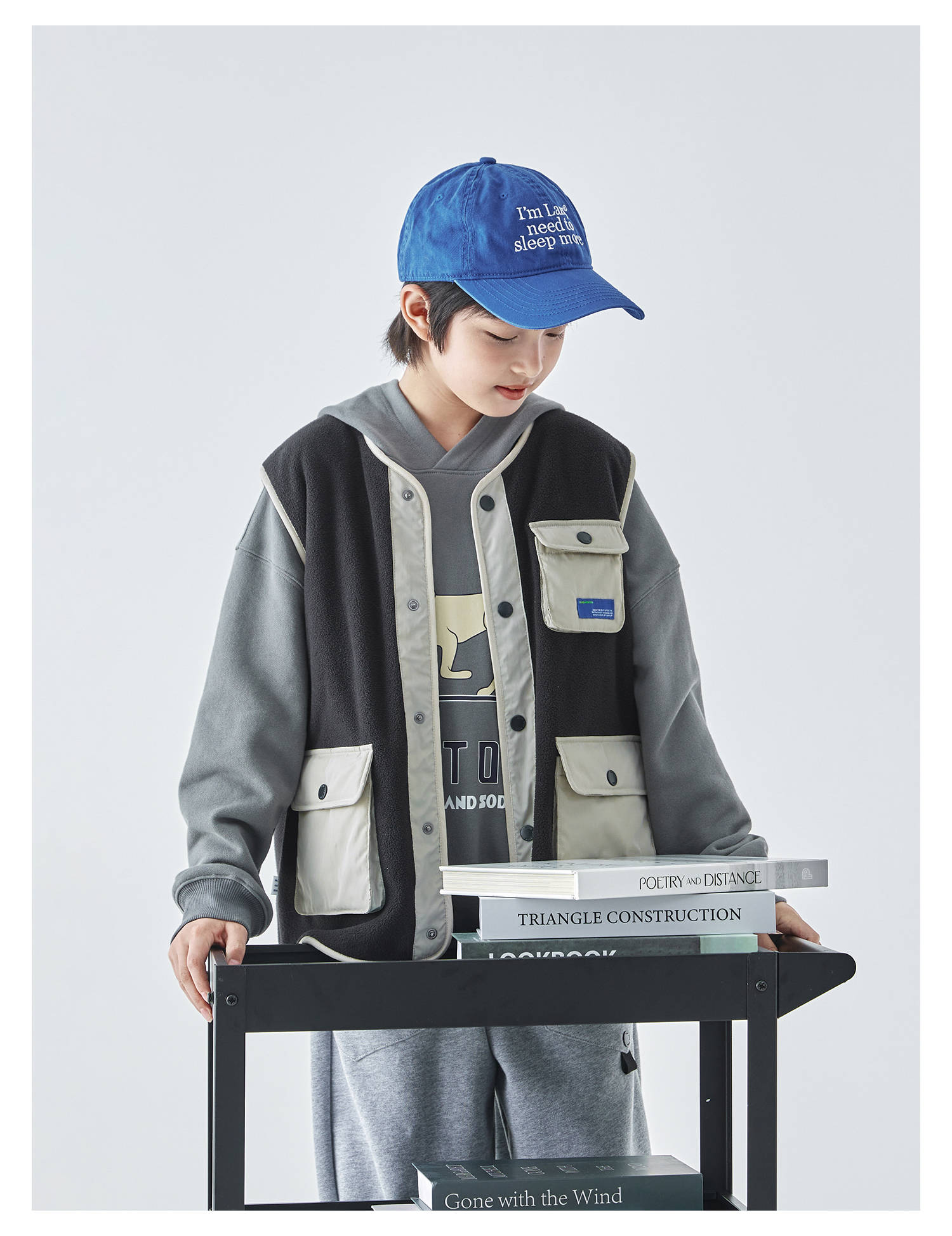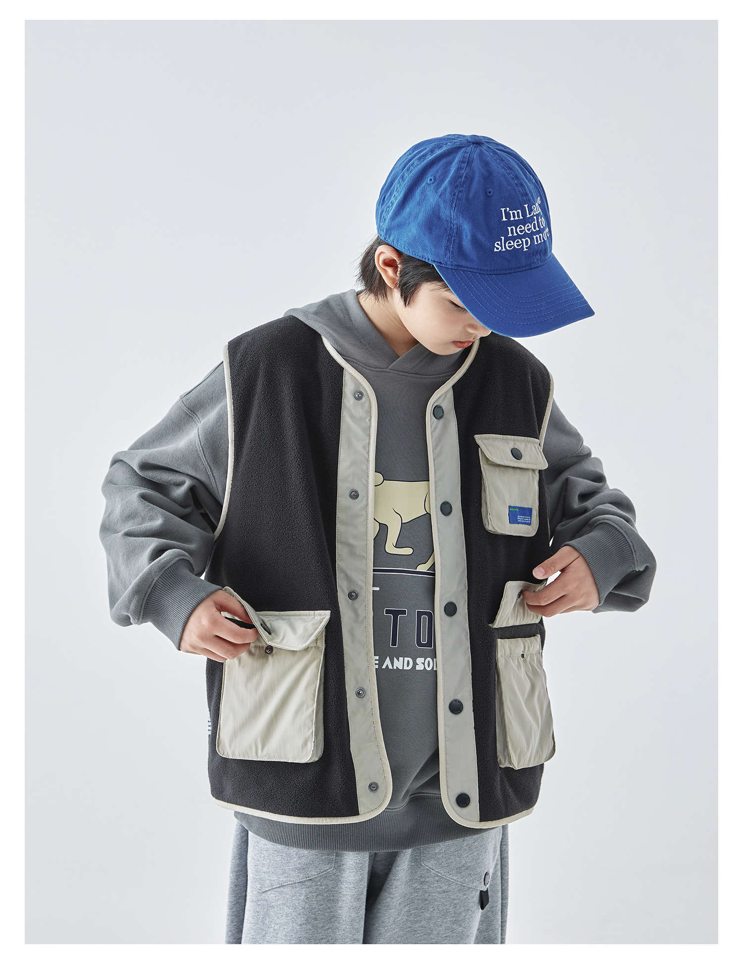 蓝汽水2025年秋冬新款亲子装中大男童摇粒绒马甲撞色拼接口袋上衣