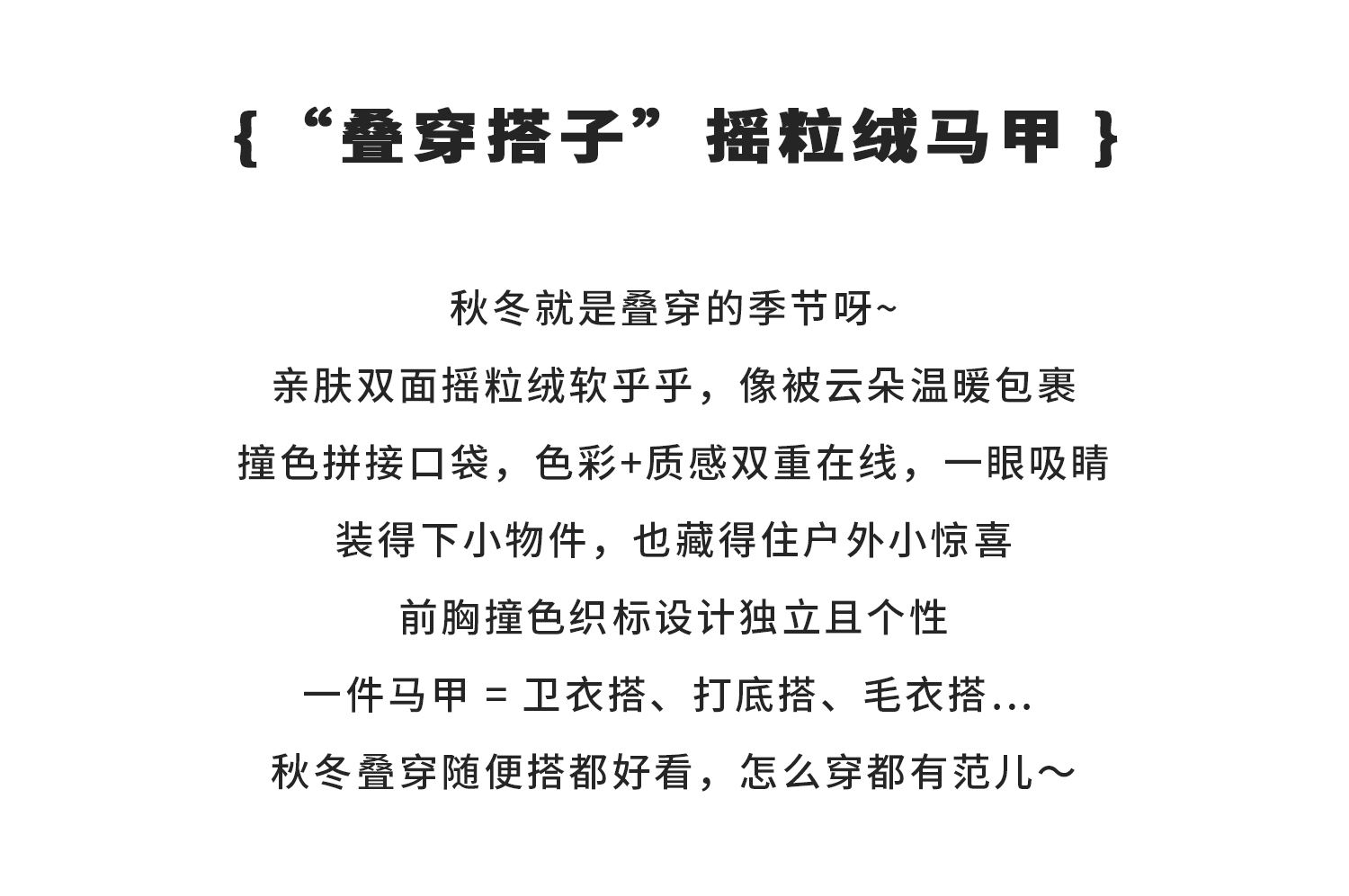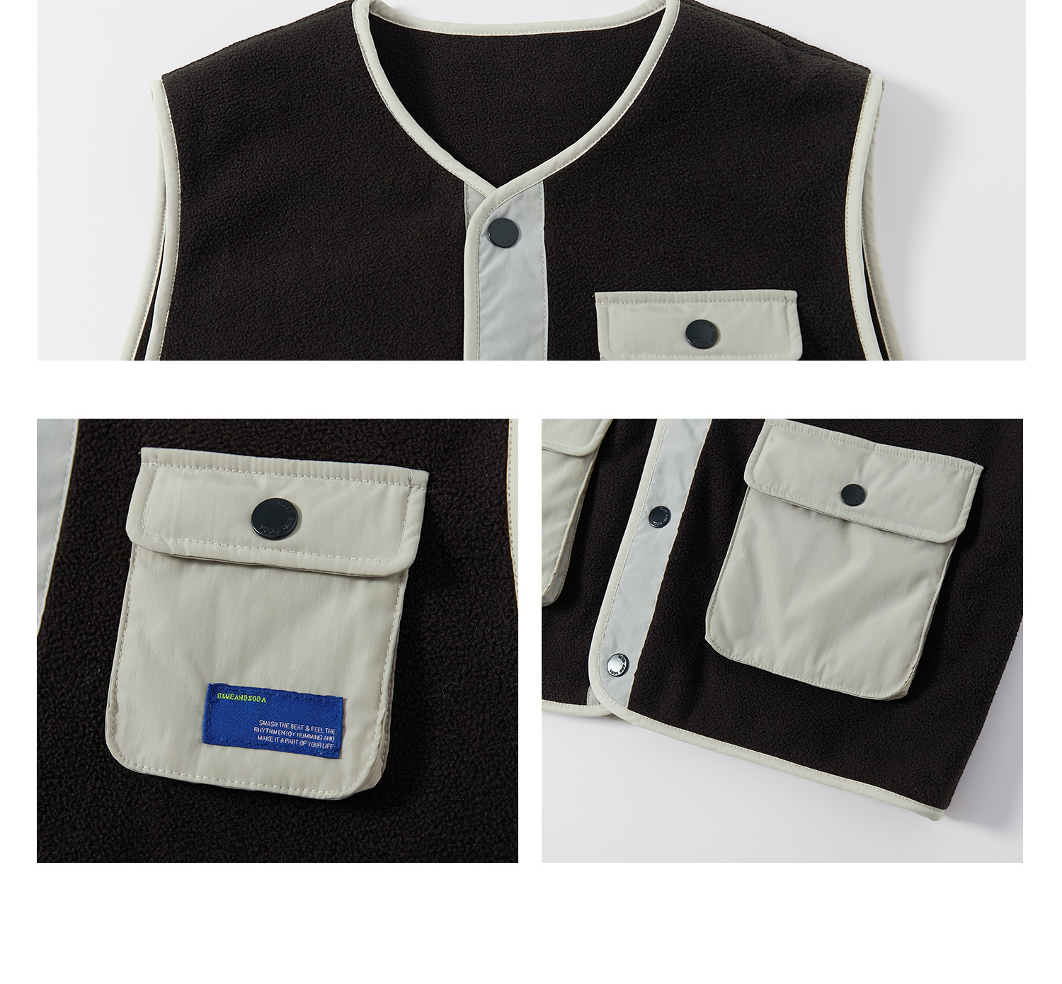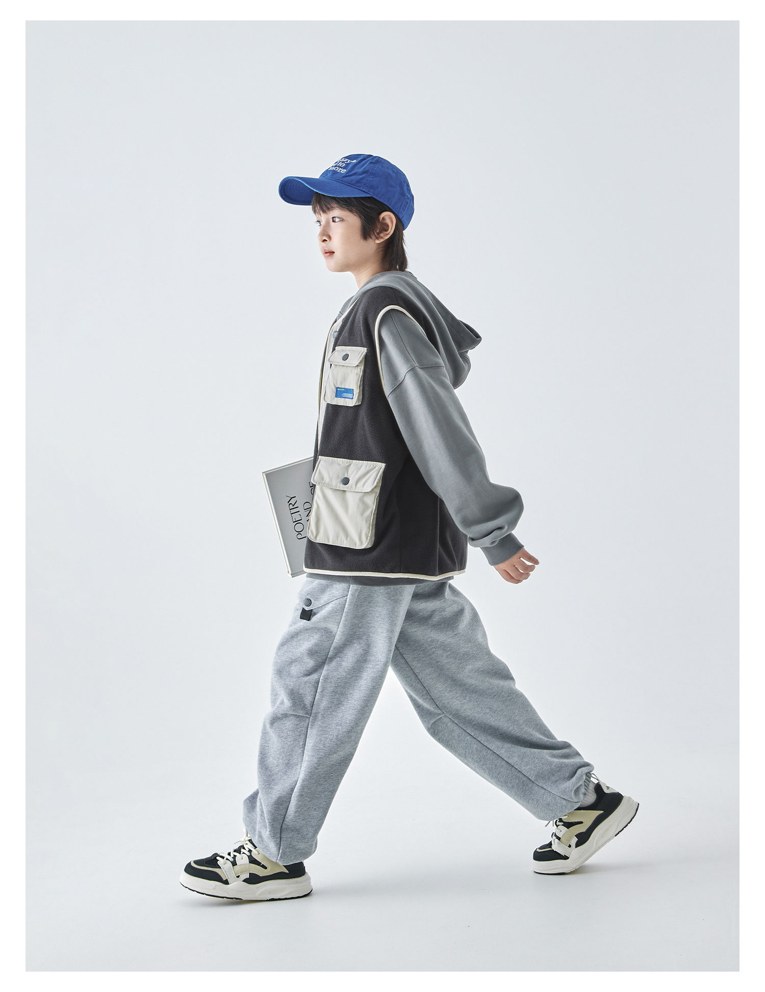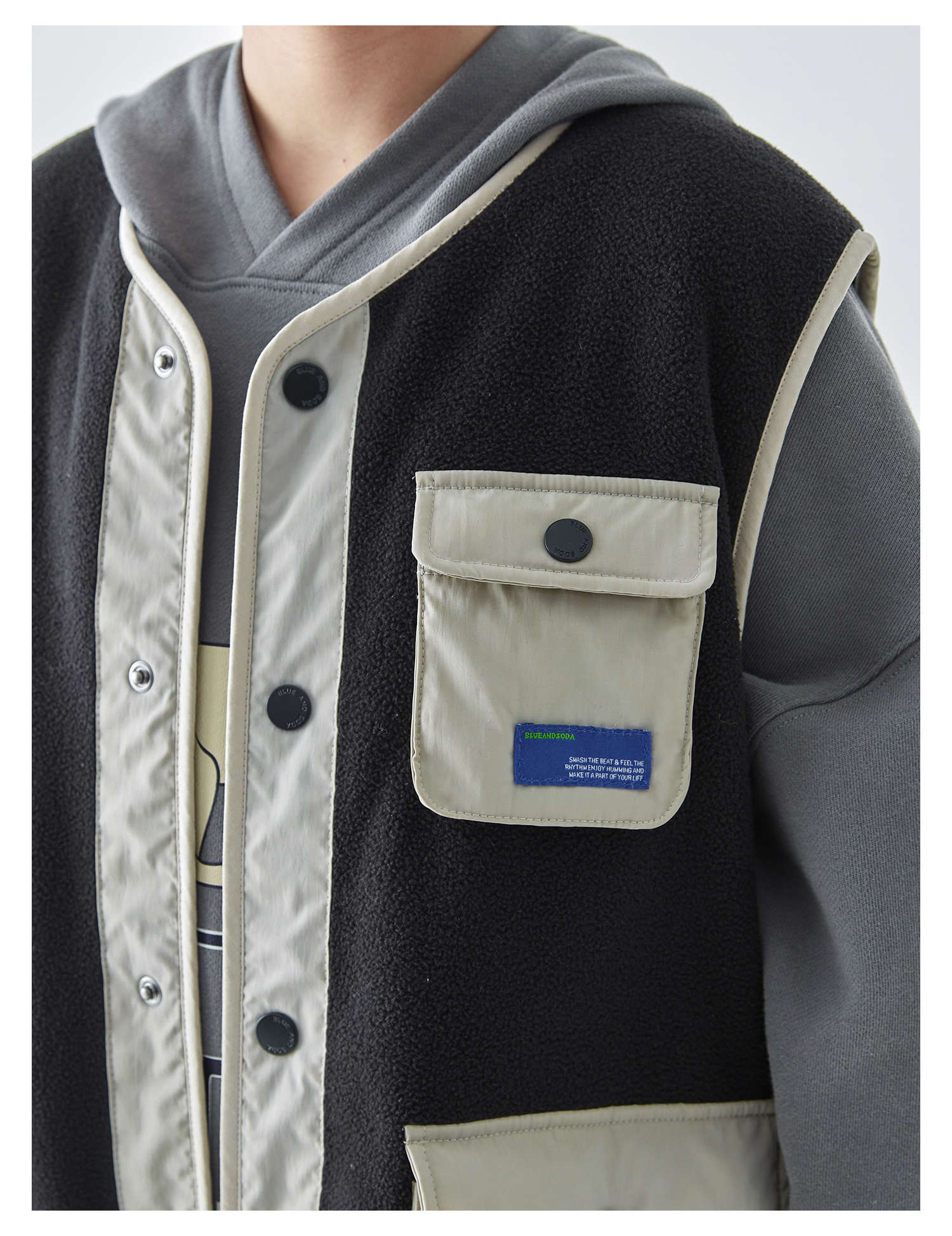蓝汽水2025年秋冬新款亲子装中大男童摇粒绒马甲撞色拼接口袋上衣