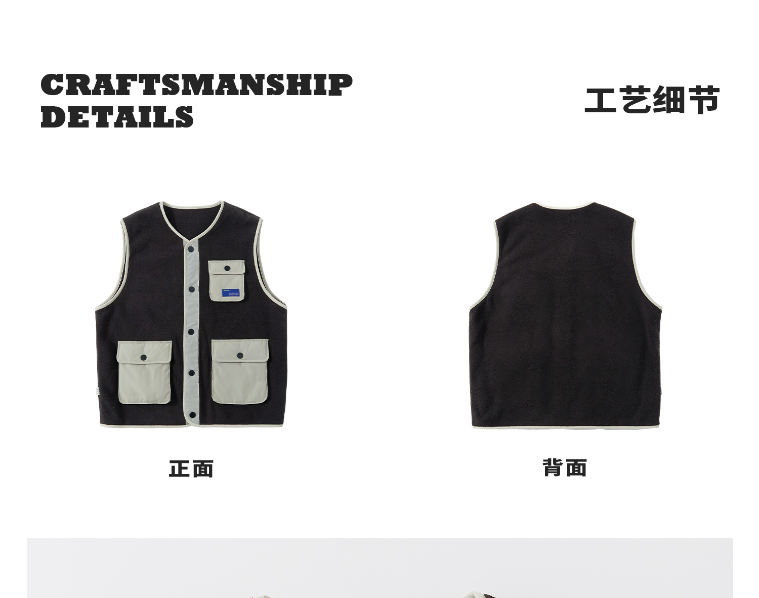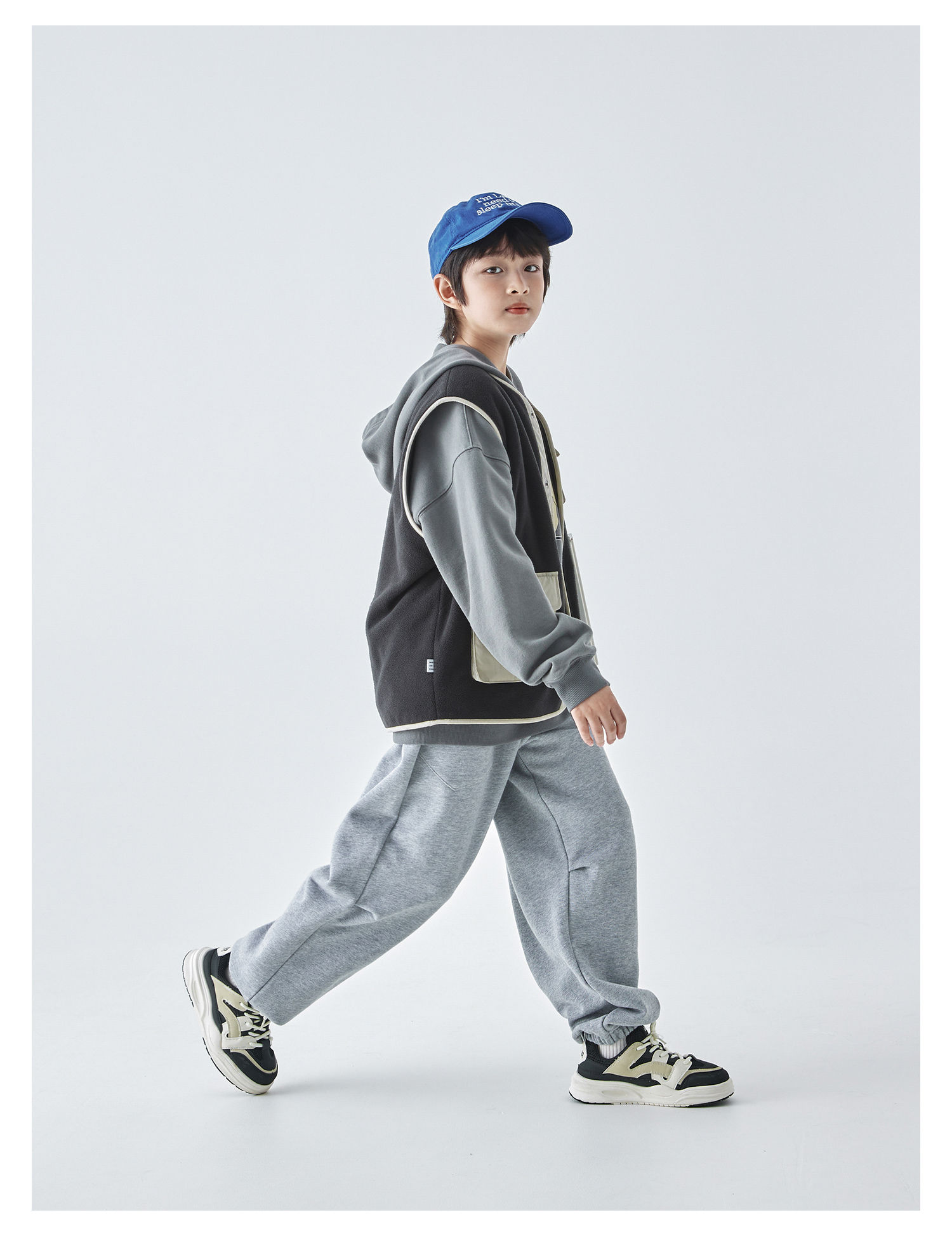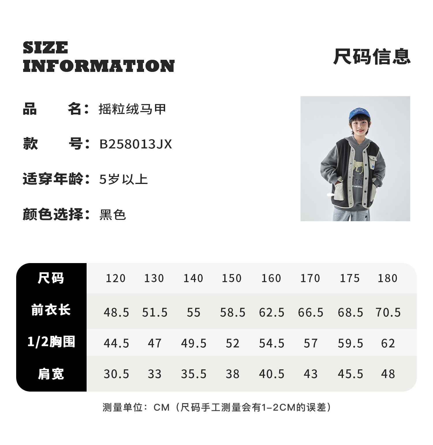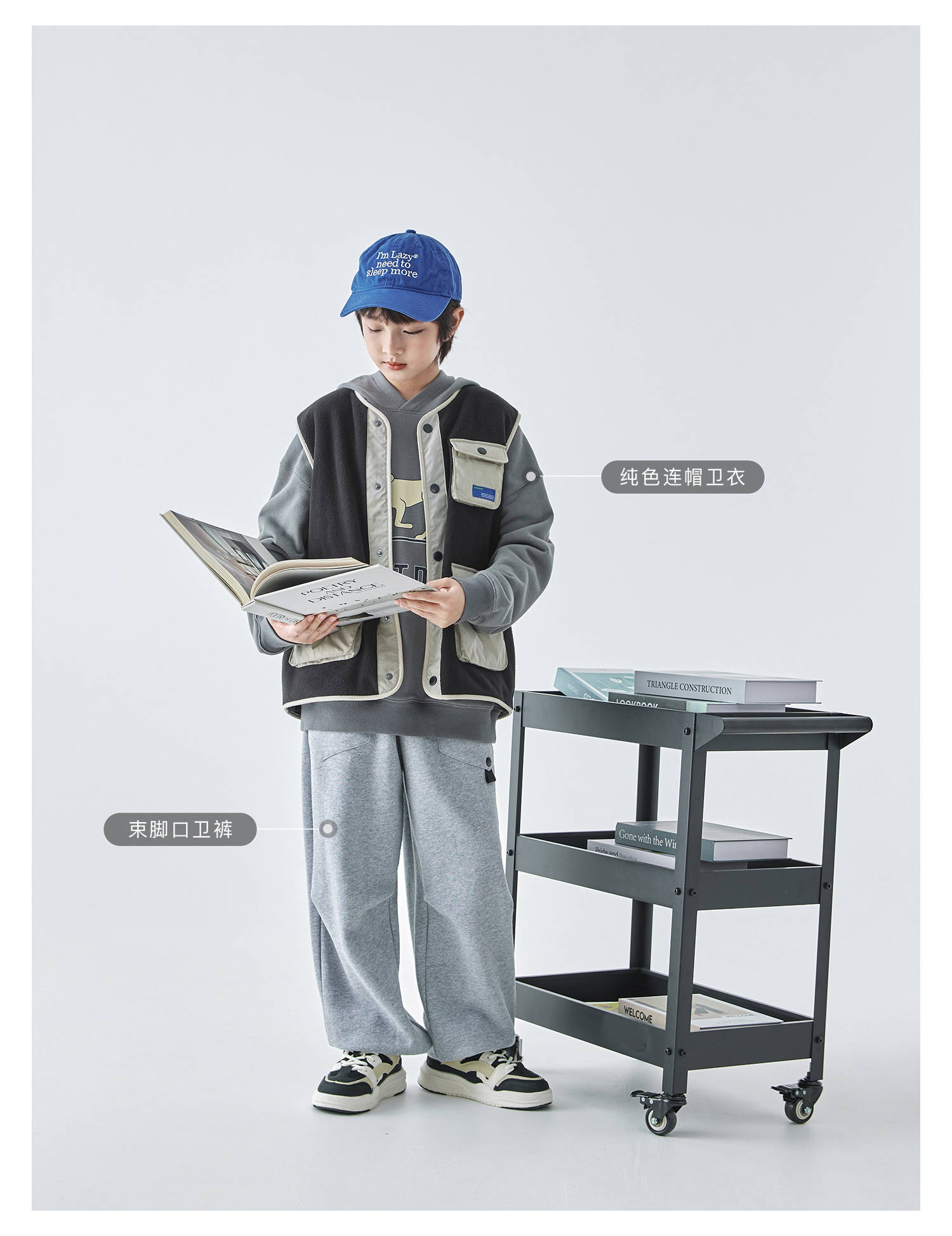 蓝汽水2025年秋冬新款亲子装中大男童摇粒绒马甲撞色拼接口袋上衣
