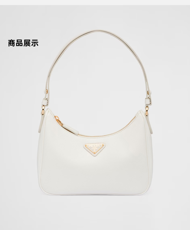 【二】PRADA 普拉达 女士 Saffiano 皮革珐琅金属三角徽标迷你手袋 白色 1BC204 NZV F097W JOM