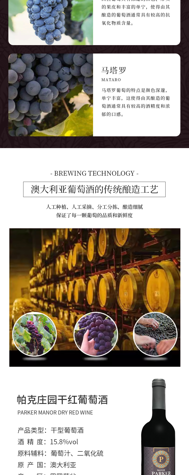 澳大利亚进口帕克庄园干红葡萄酒750ml