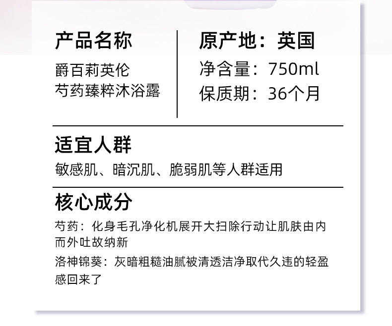 爵百莉 英伦芍药臻粹沐浴露750ml