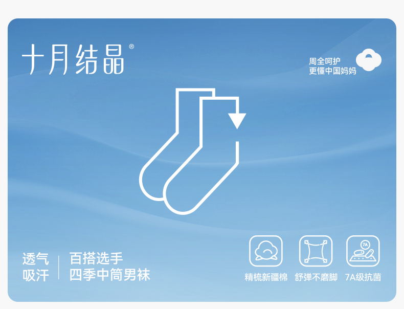 男士袜子精梳棉抗菌防臭吸汗透气中筒袜运动袜四季百搭款