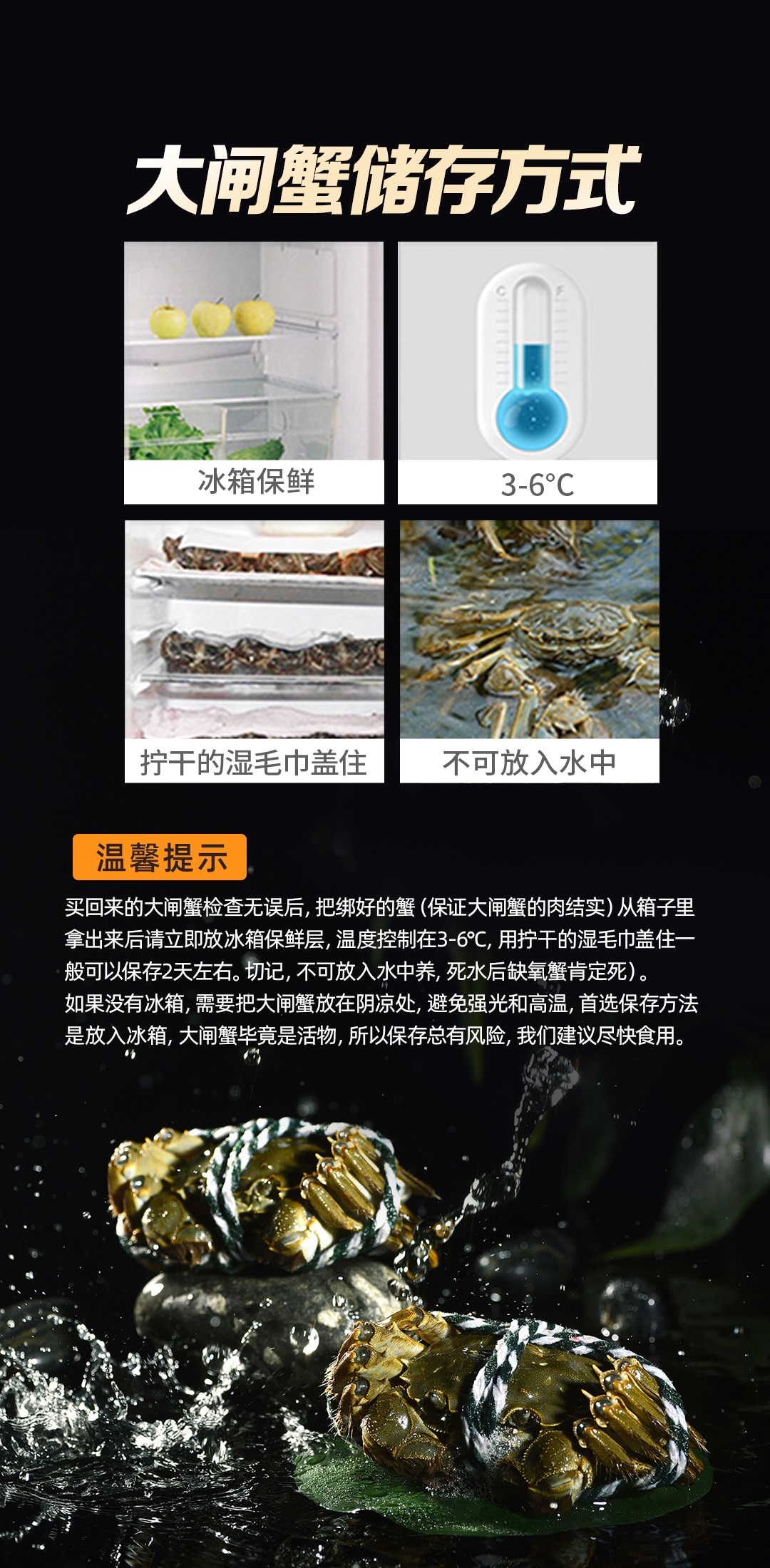 2,您收货到产品以后,请您立即检查,如有死蟹请在签收4小时之内,把蟹肚朝上,掰开蟹脐并与您的快递单和阳澄澄包装盒一起拍下,以便我们确认死蟹的情况,请您告知卡券号并联系售后