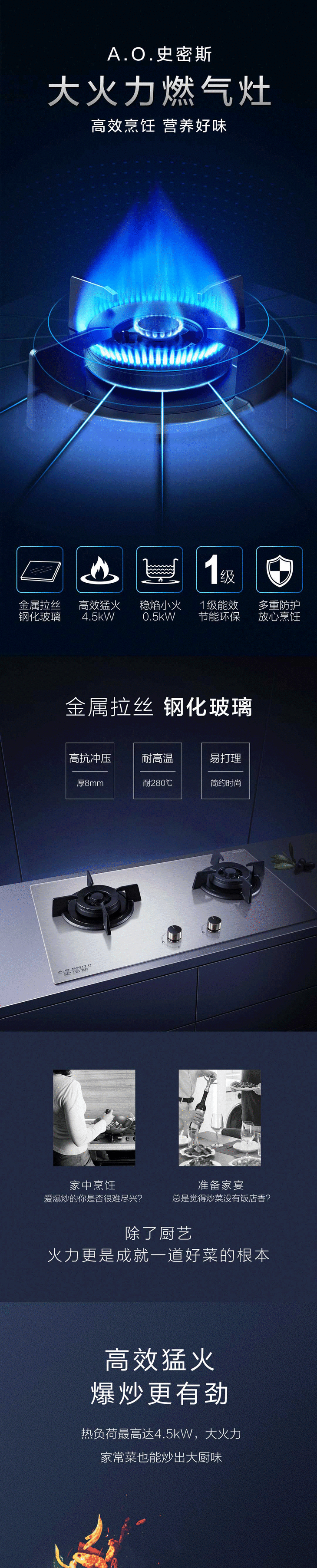 A.O.史密斯拉丝玻璃大火力燃气灶 JZT-F3B2