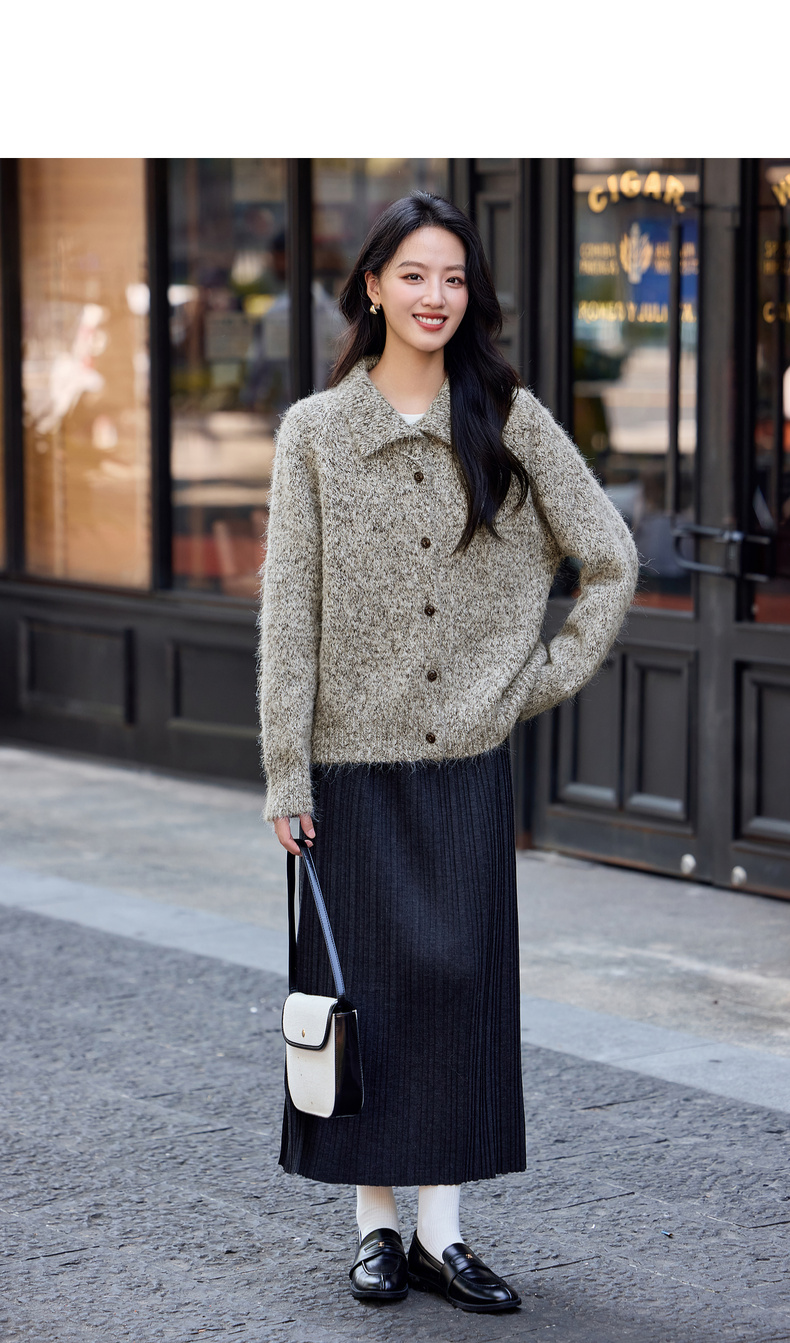 【内购】【两种穿法】时尚洋气高领/翻领宽松插肩袖超弹花纱保暖开衫毛衣-W54EI4858 商品图4