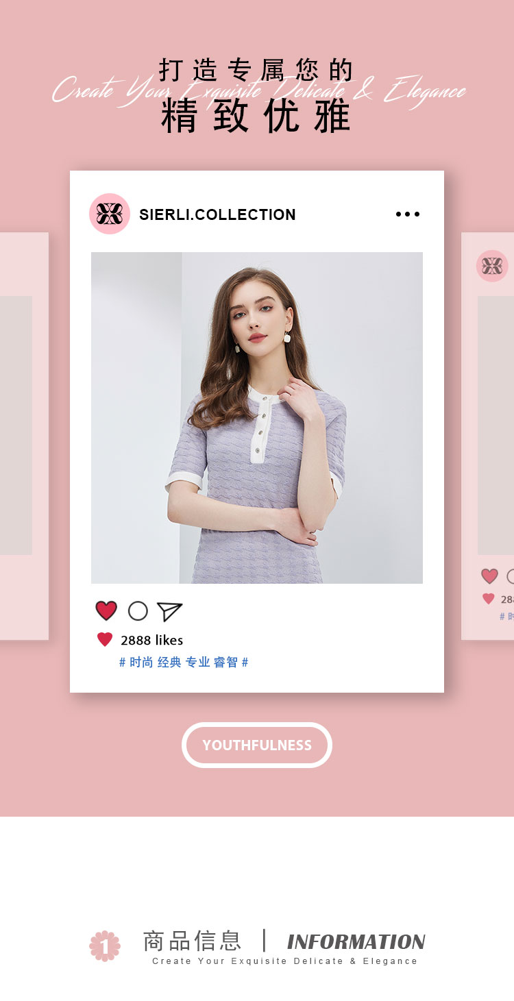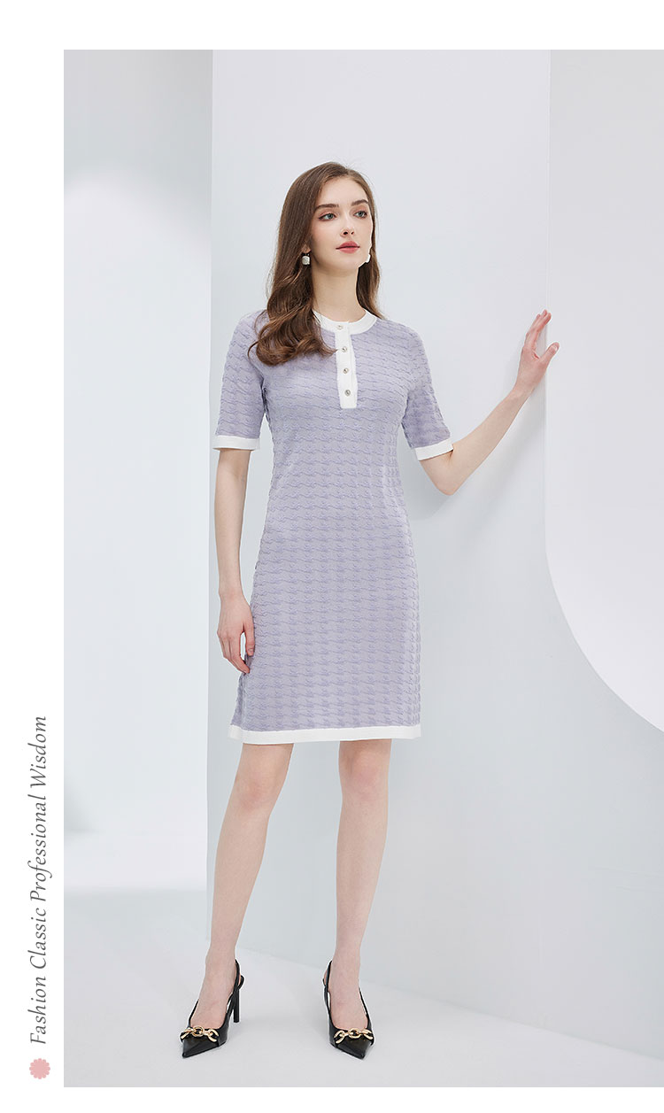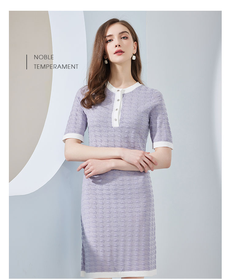 NF656斯尔丽瑟俪2023春夏新品日常休闲圆领短袖收腰针织连衣裙