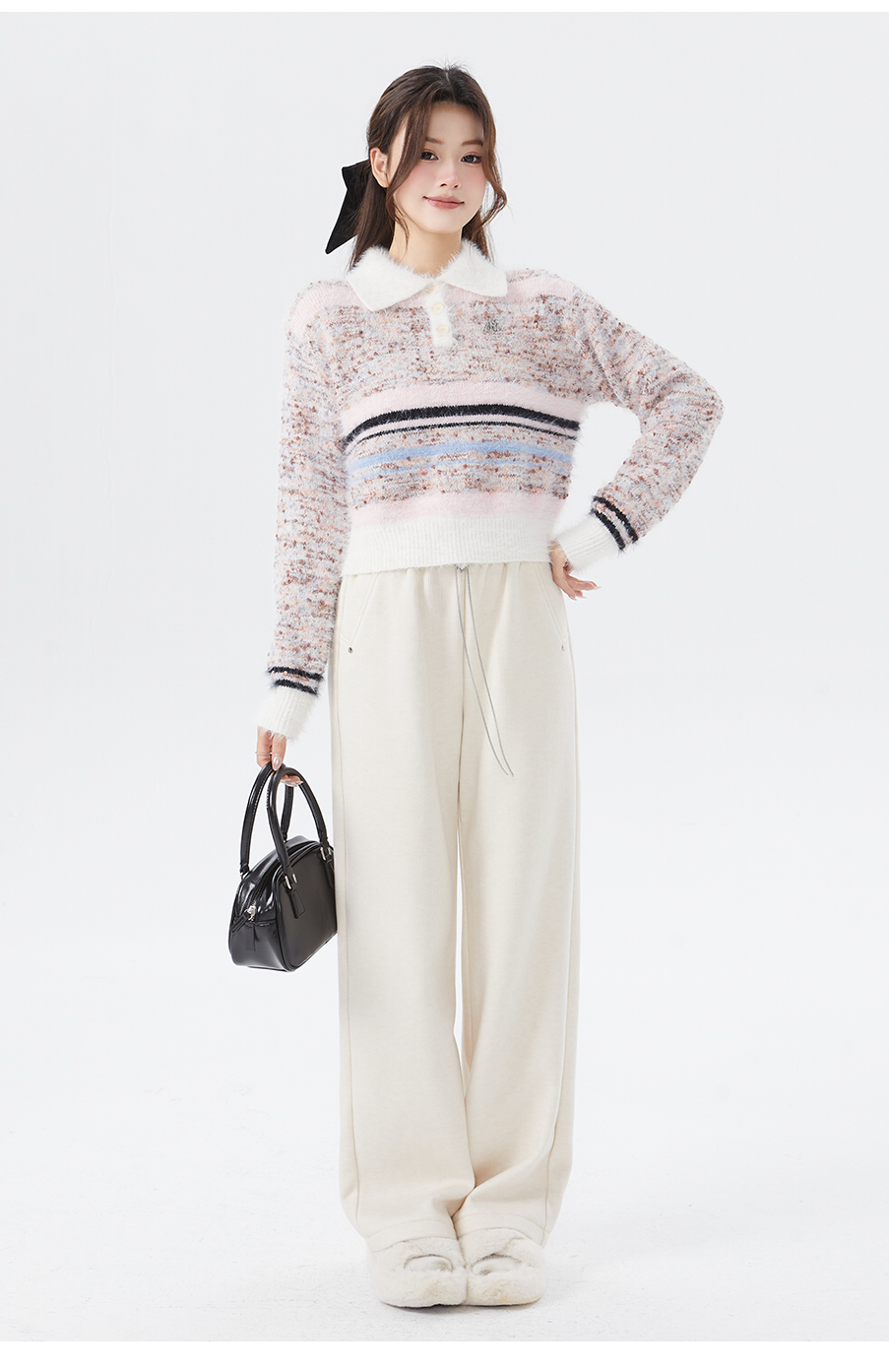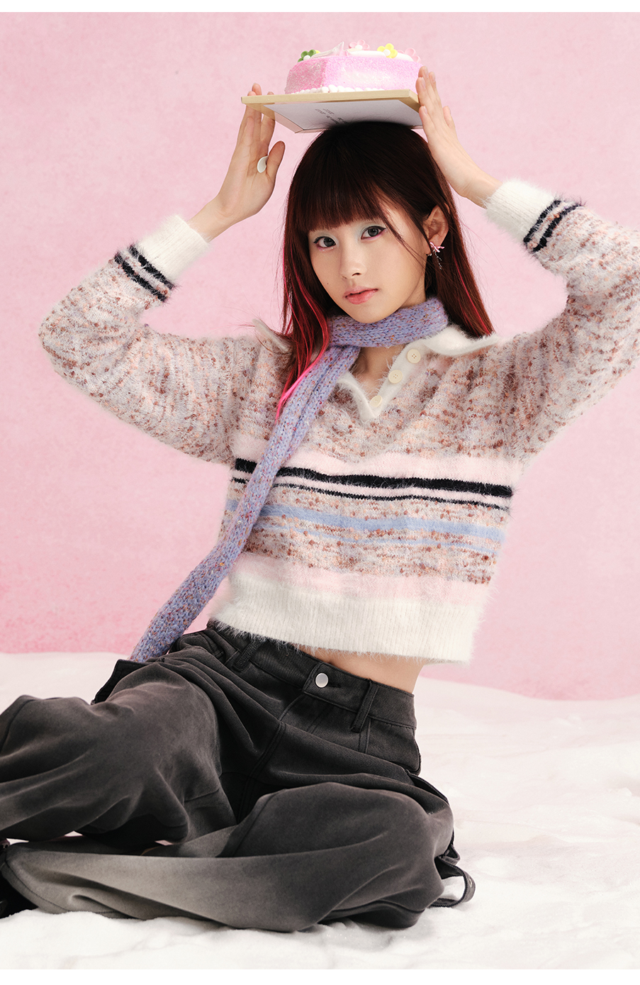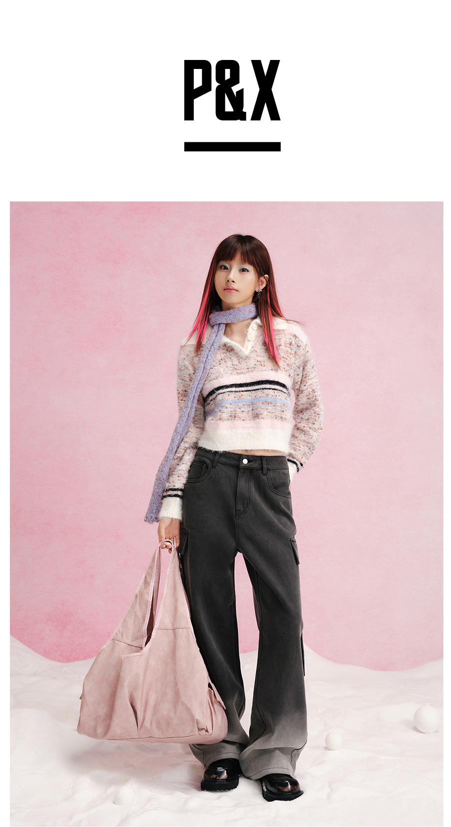 P&X设计师女装撞色条纹短款毛衣824418162 花色