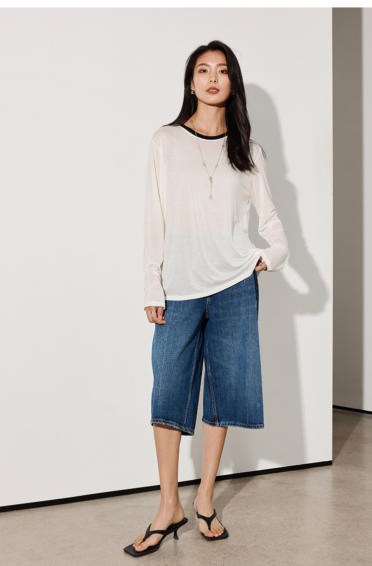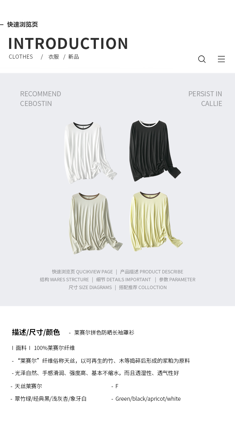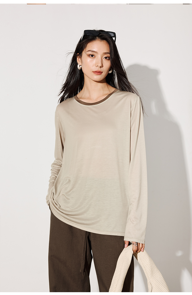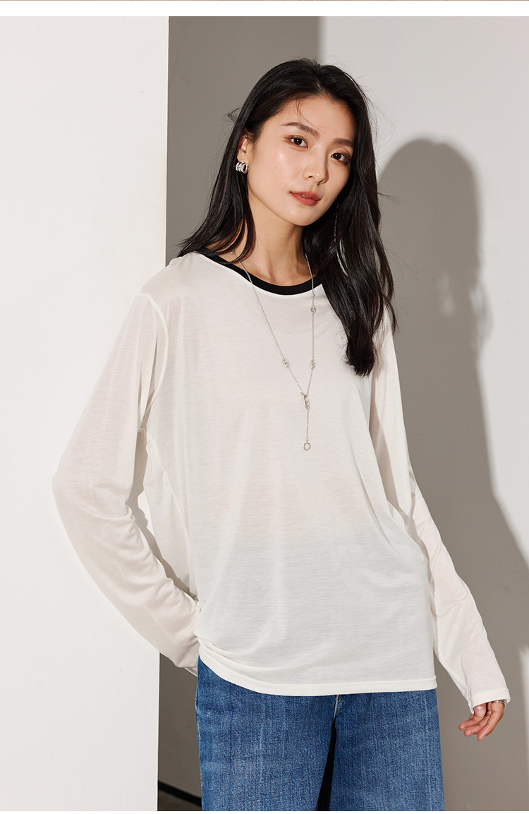 LILYMOON【拼色防晒长袖罩衫】夏季莱赛尔透气罩衫防晒百搭