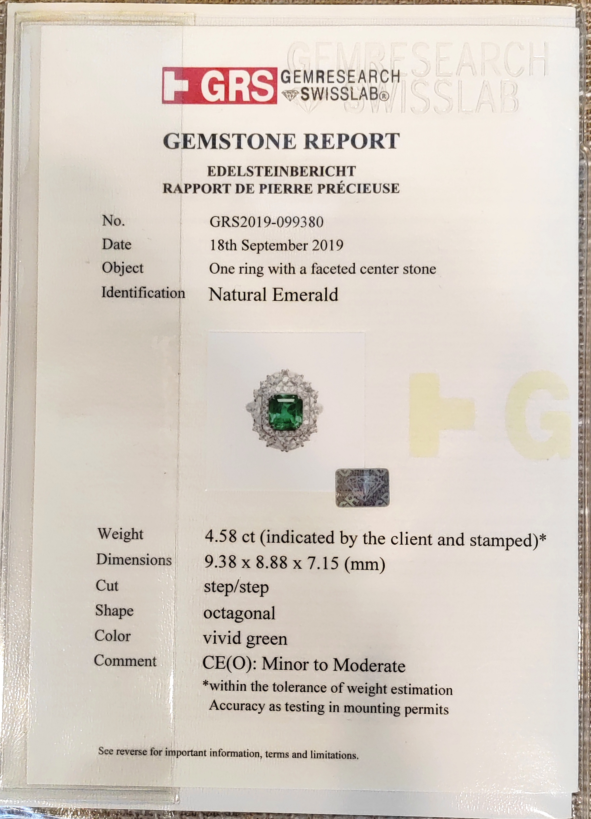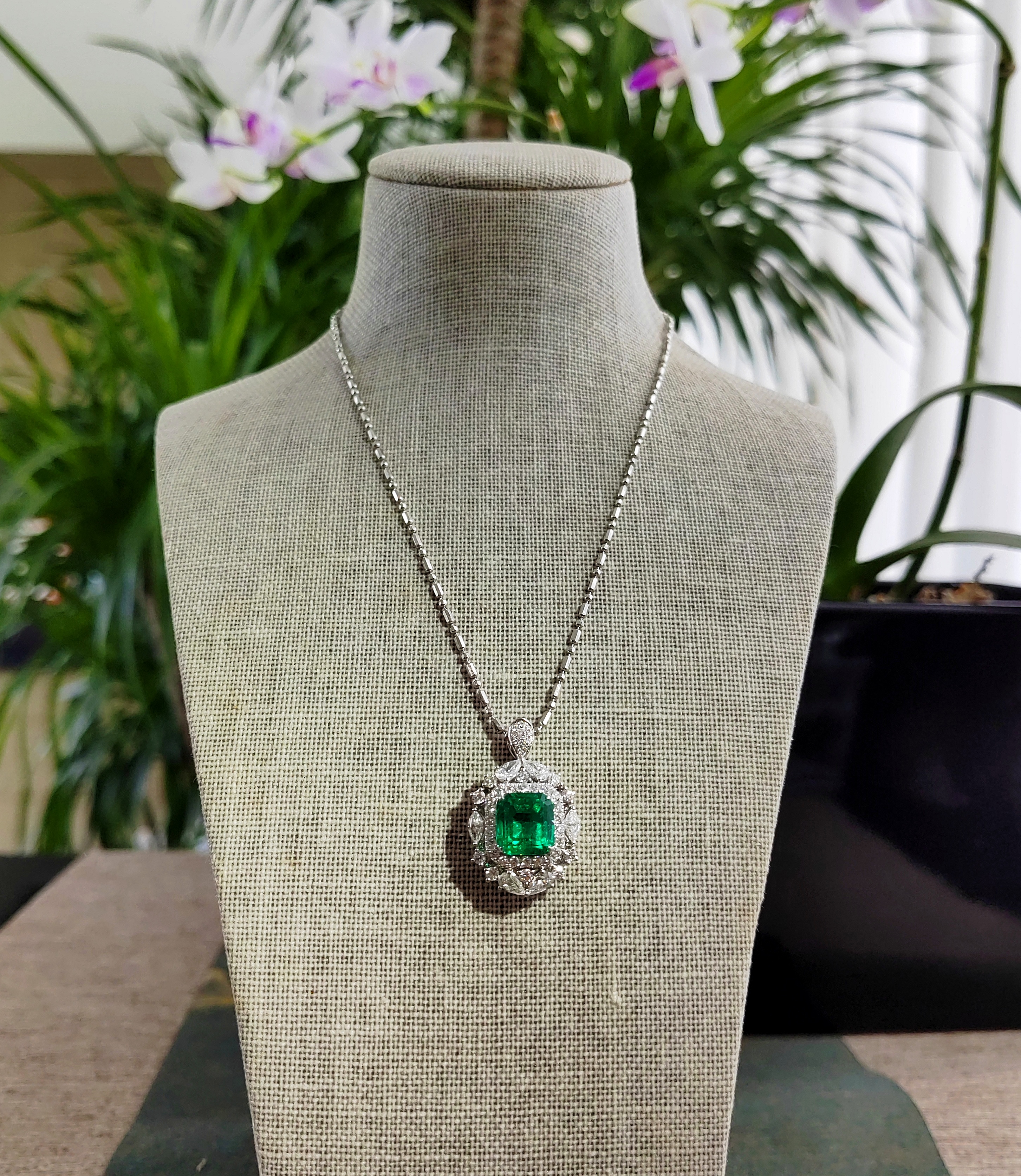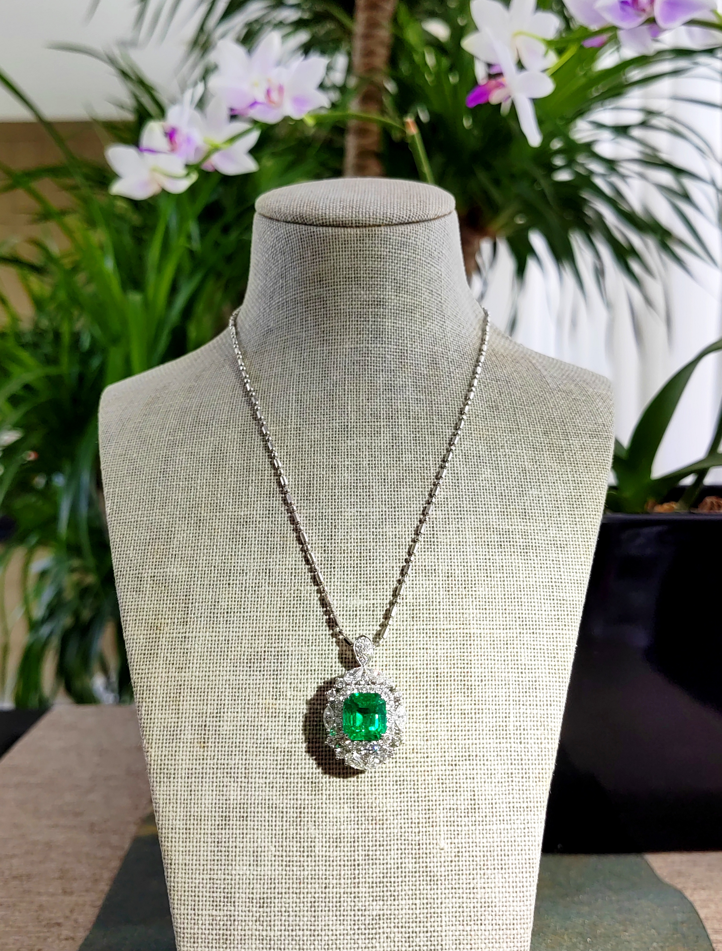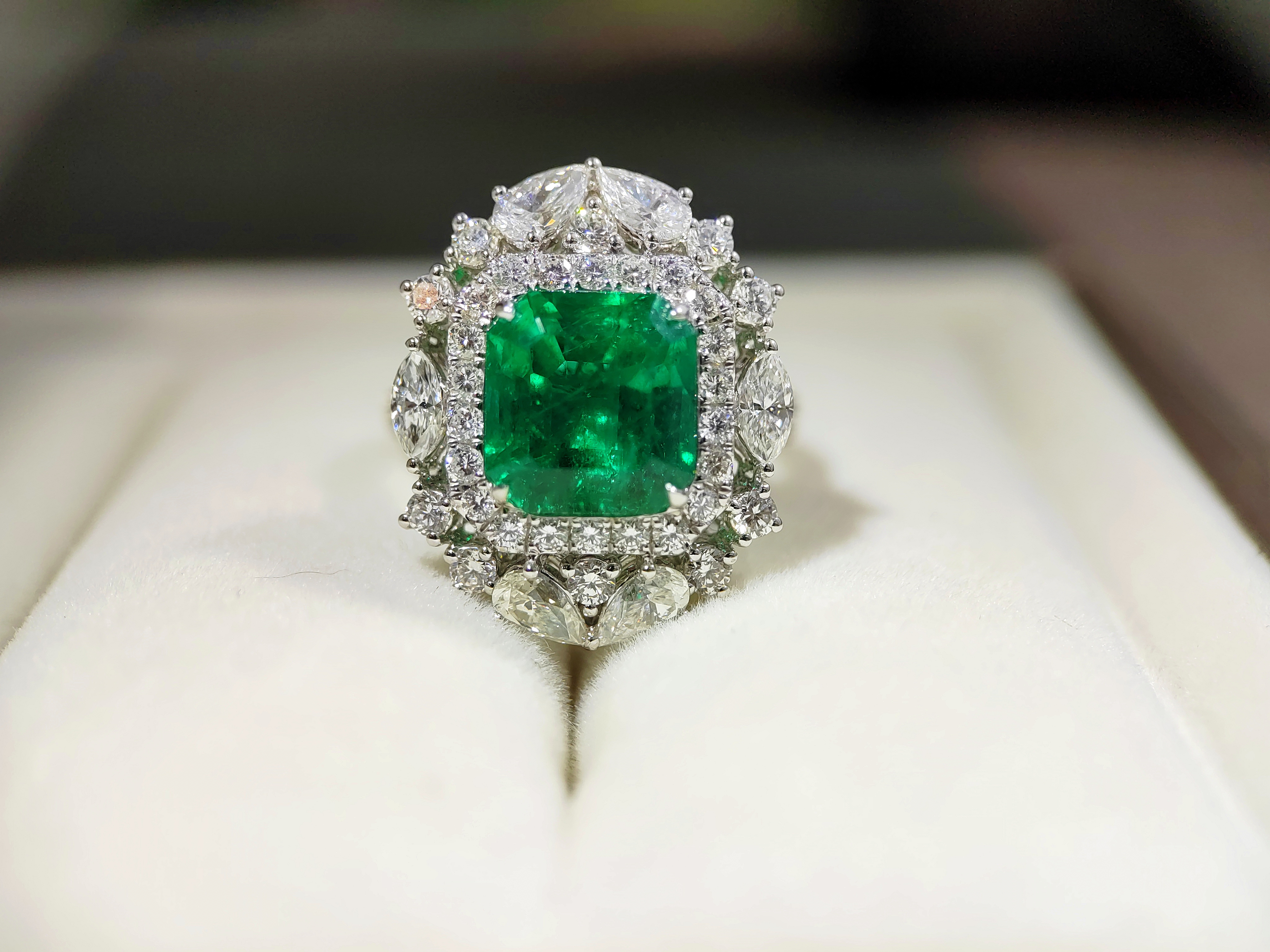 这枚祖母绿戒指吊坠两用款,来自哥伦比亚产区,颜色达到顶级vivid Green,饱和度极高。