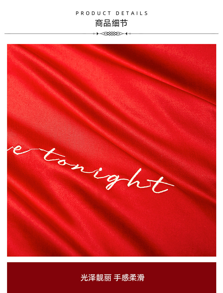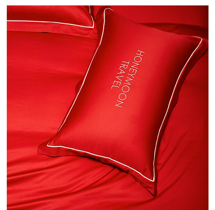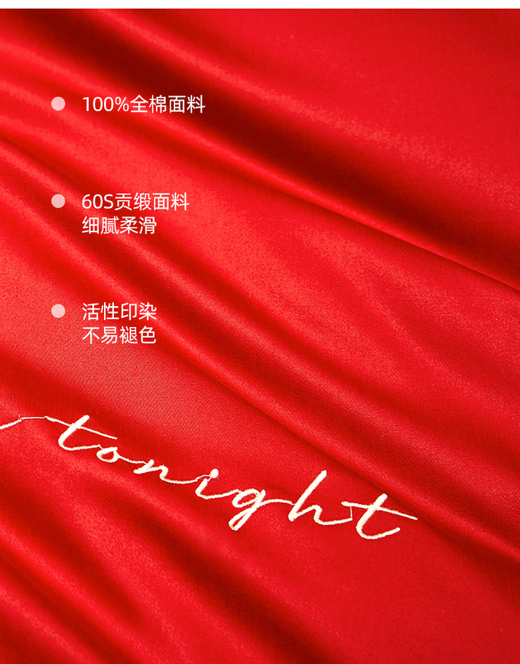 佳丽斯60支纯棉婚庆四件套结婚红色被套床单全棉绣花新婚套件