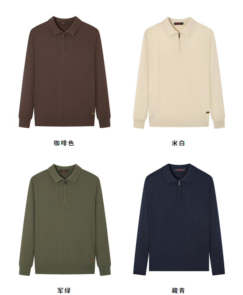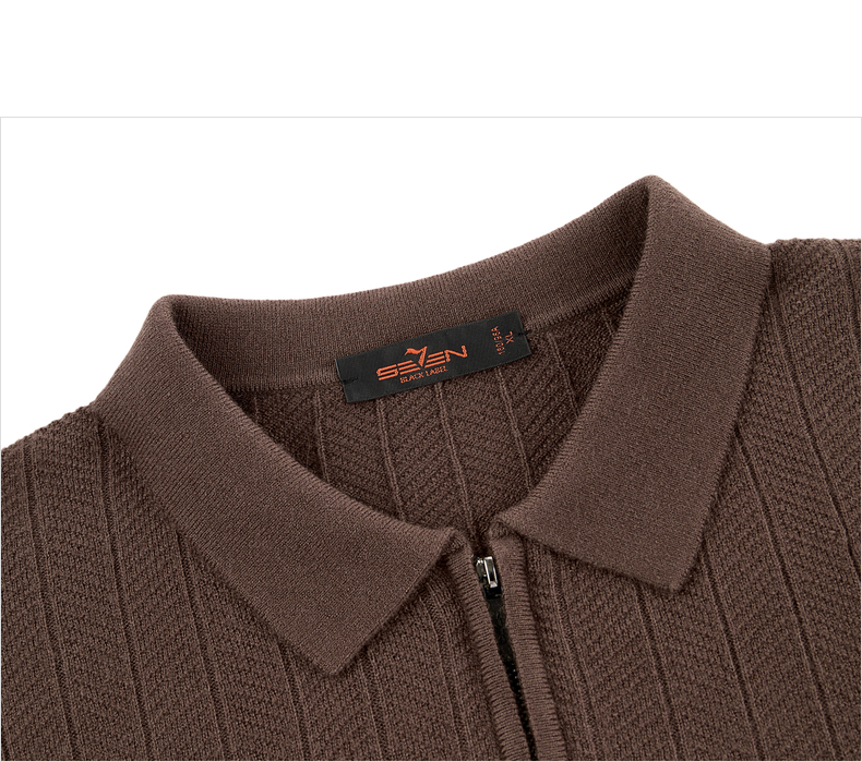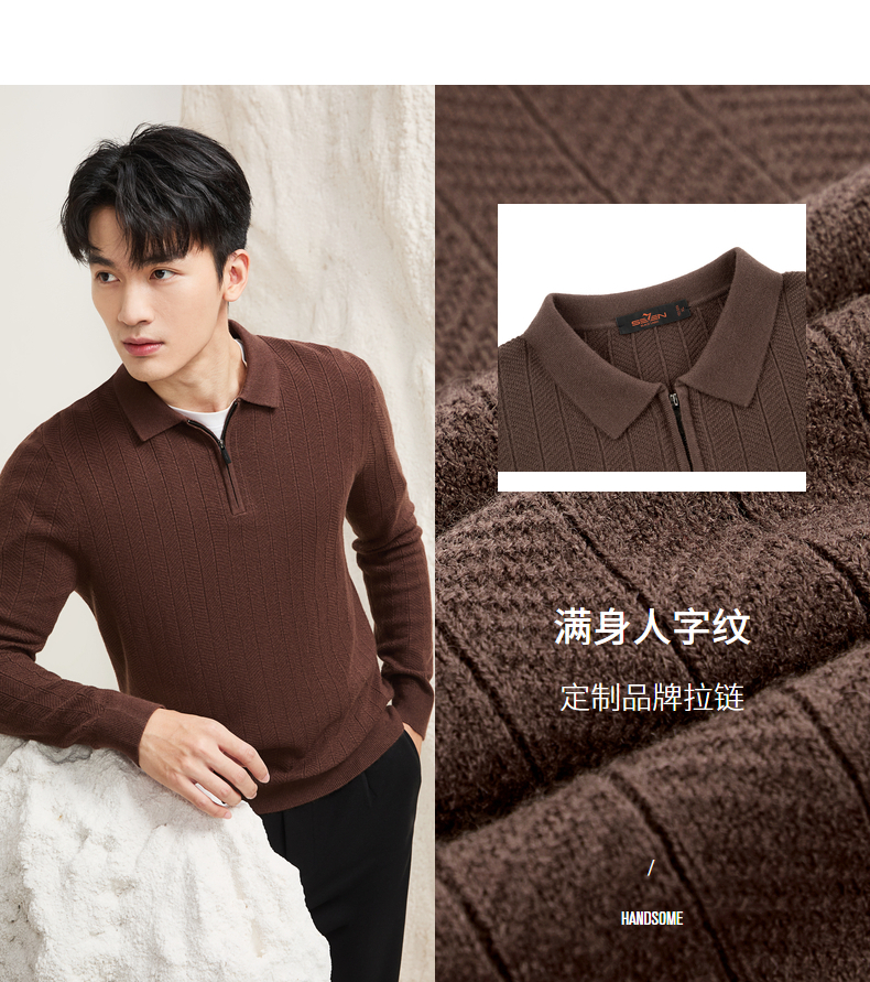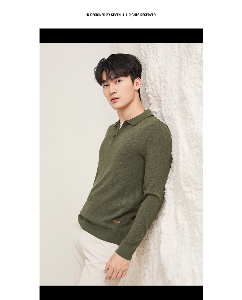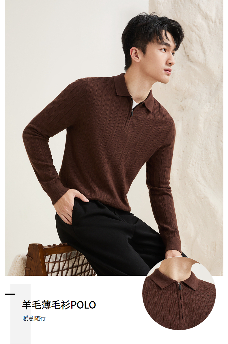 【含羊毛/POLO衫拉链针织】柒牌套头薄翻领毛衫人字纹翻领polo衫129Y70690
