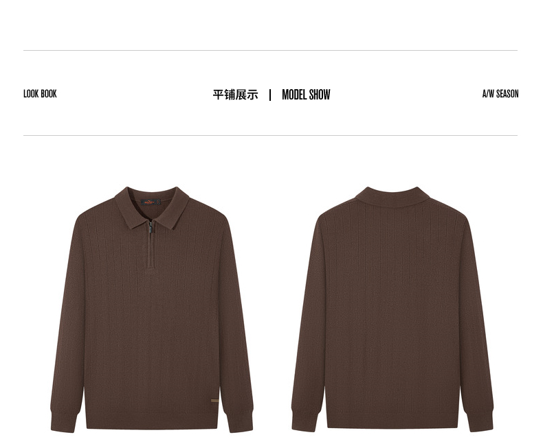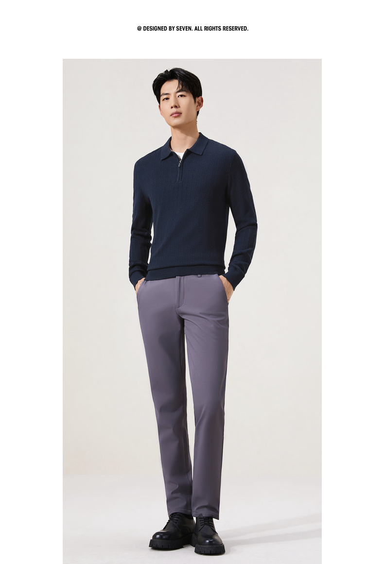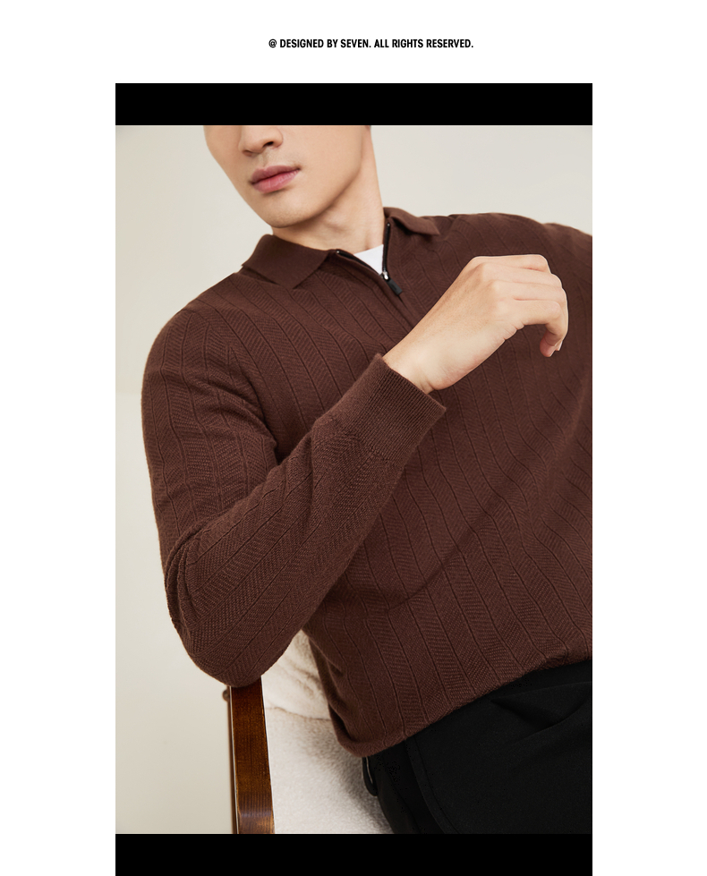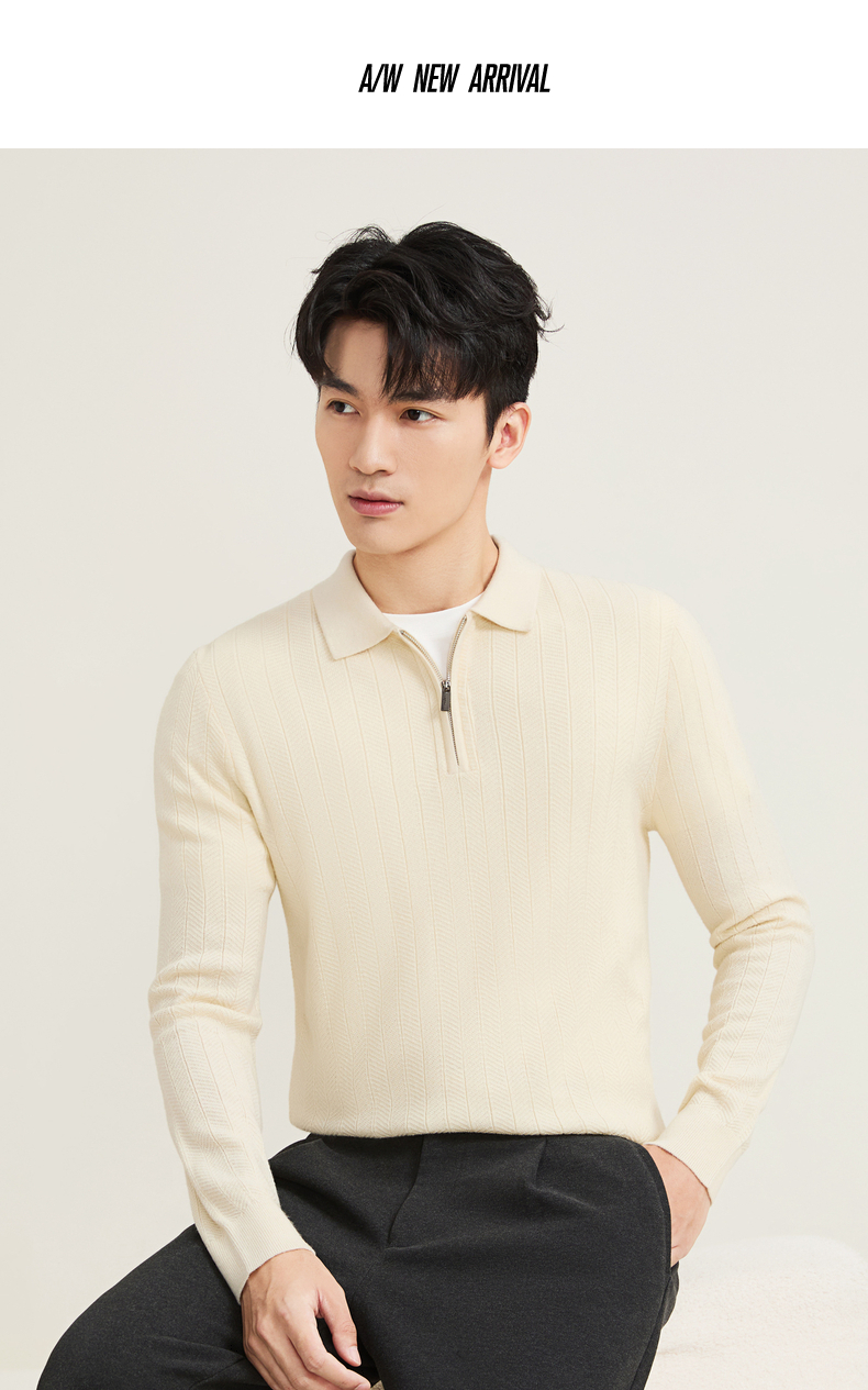 【含羊毛/POLO衫拉链针织】柒牌套头薄翻领毛衫人字纹翻领polo衫129Y70690