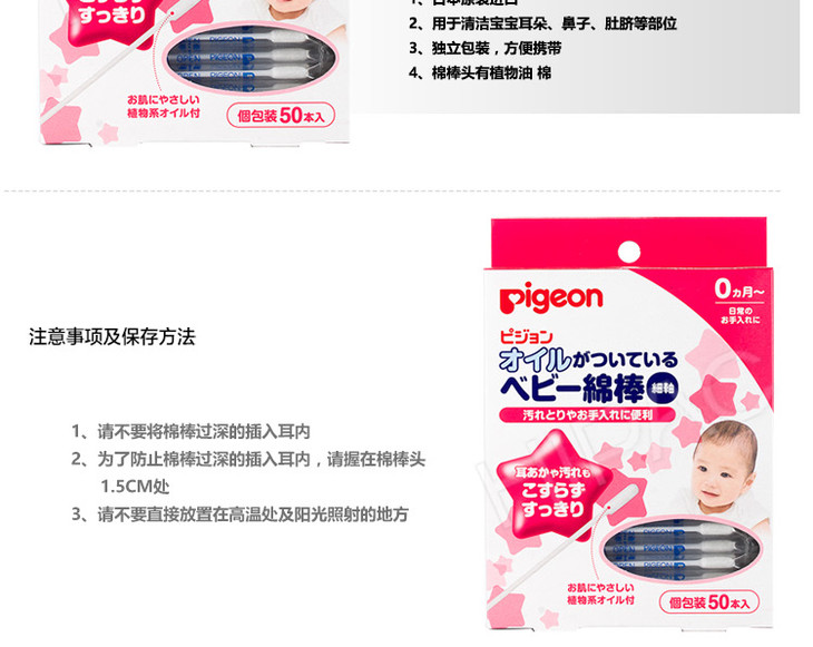 【一般贸易】日本贝亲Pigeon 婴儿橄榄油细轴棉棒 50支