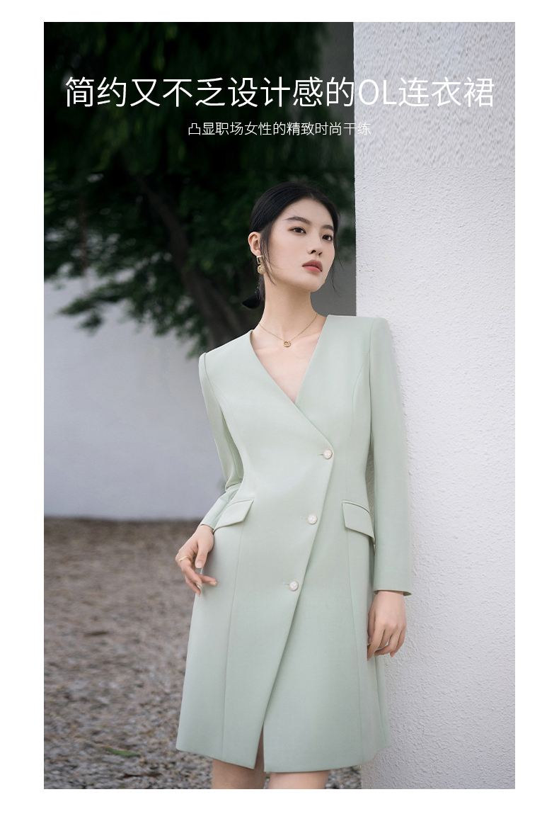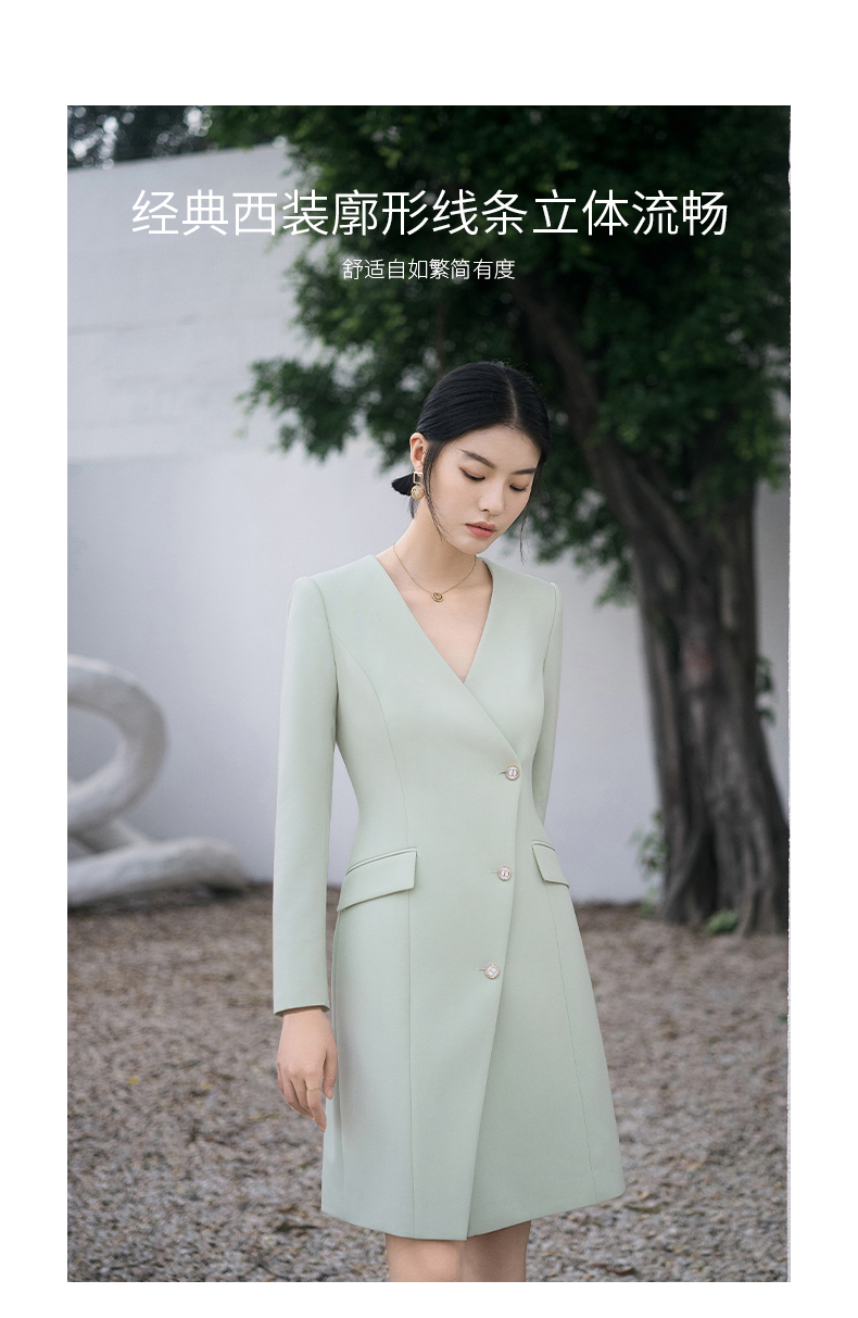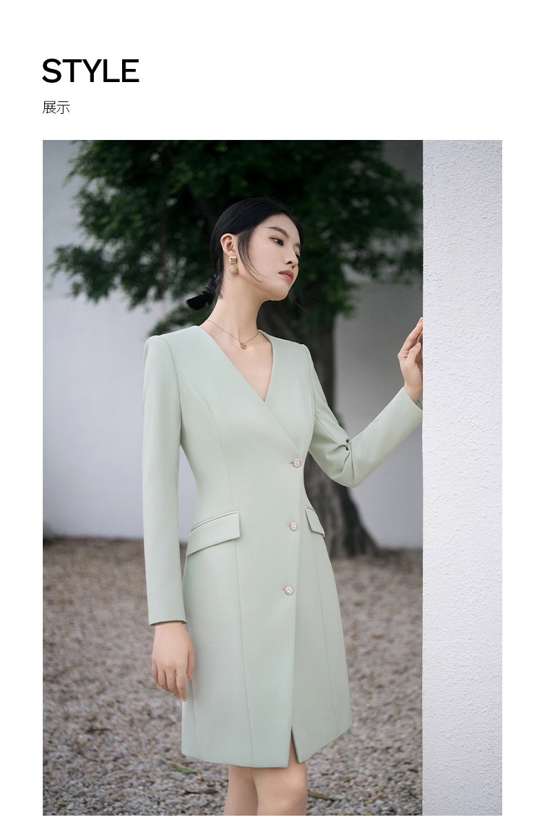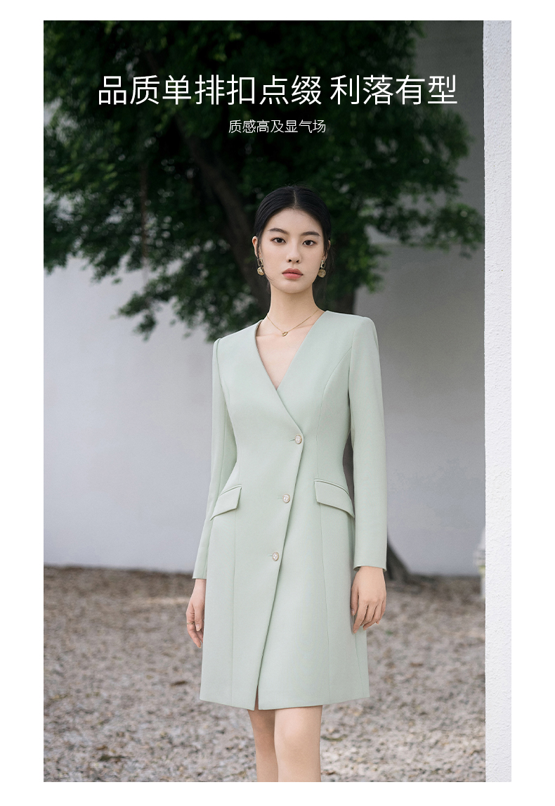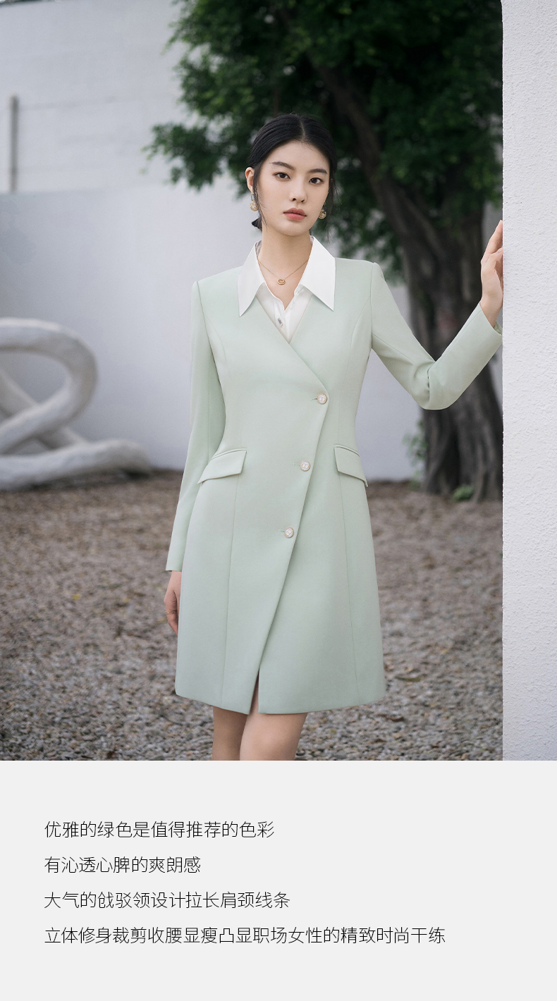 IWY/绿色高级连衣裙职业装名媛女播音主持人艺考播音学生面试演讲裙子Q13303