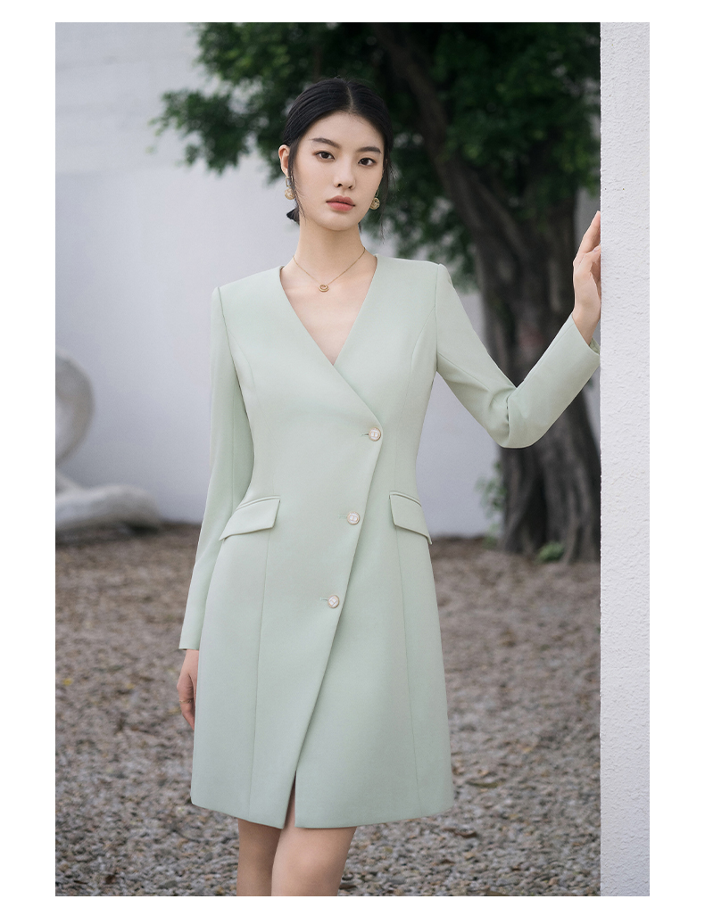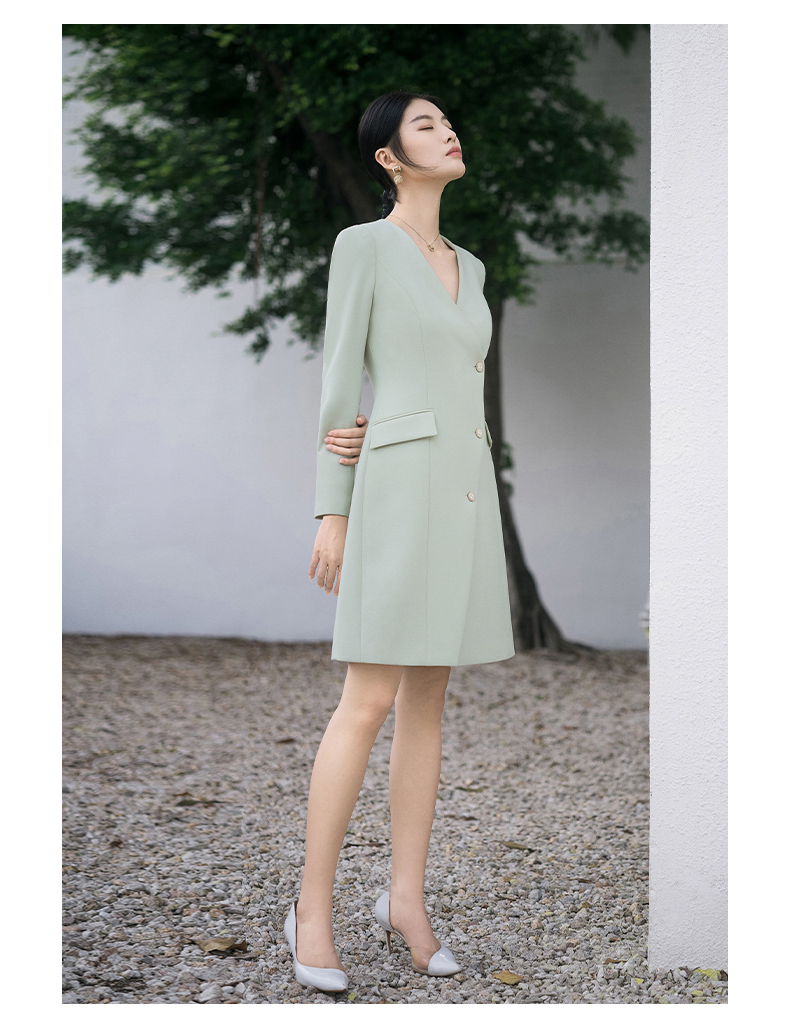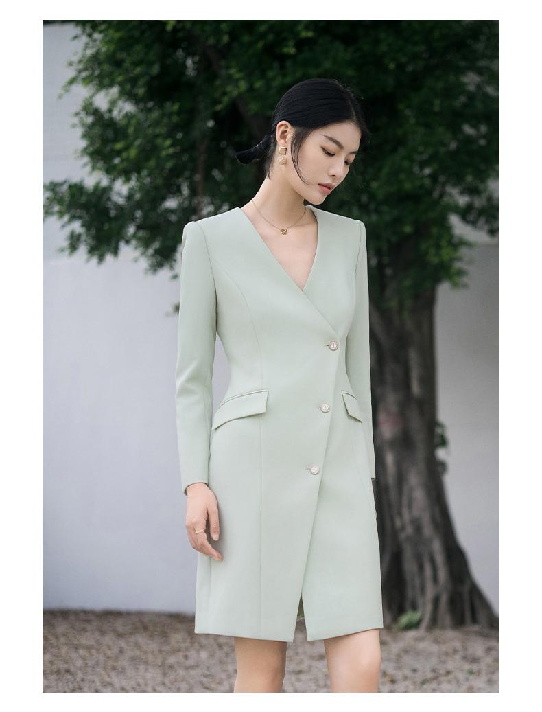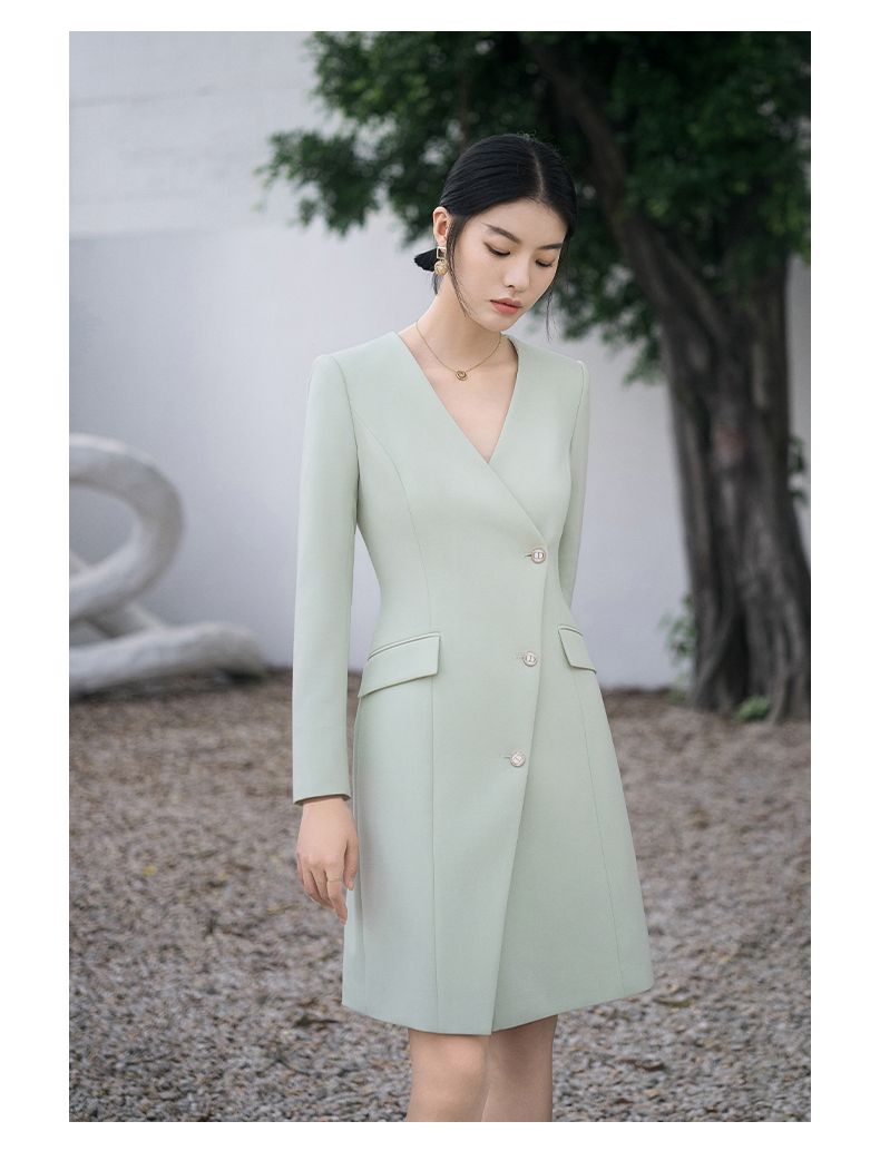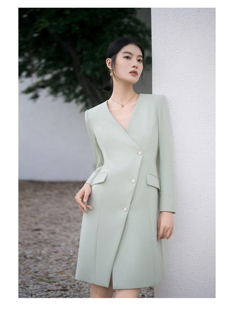 IWY/绿色高级连衣裙职业装名媛女播音主持人艺考播音学生面试演讲裙子Q13303
