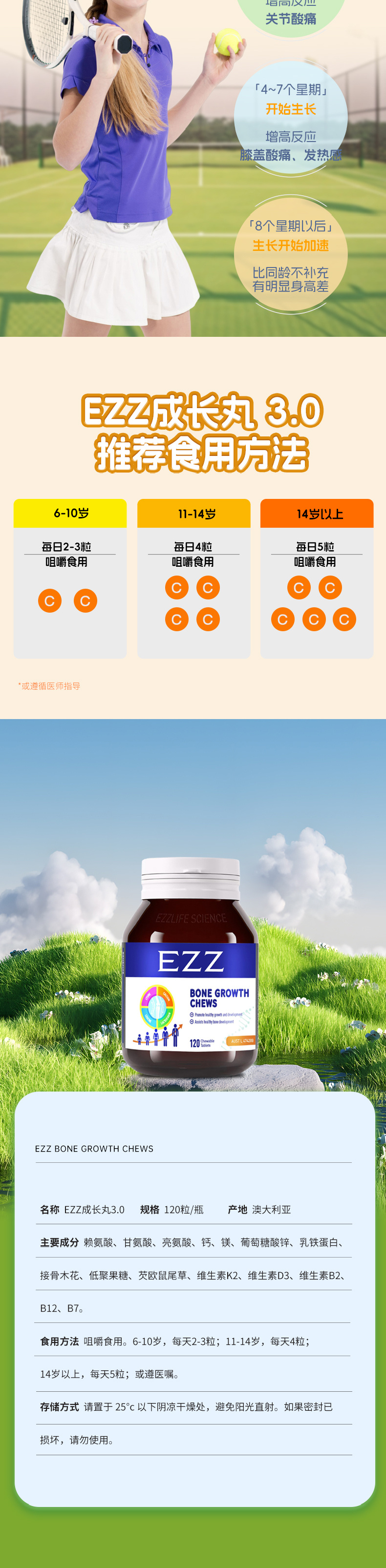 EZZ 赖氨酸成长丸儿童青少年学生 120粒