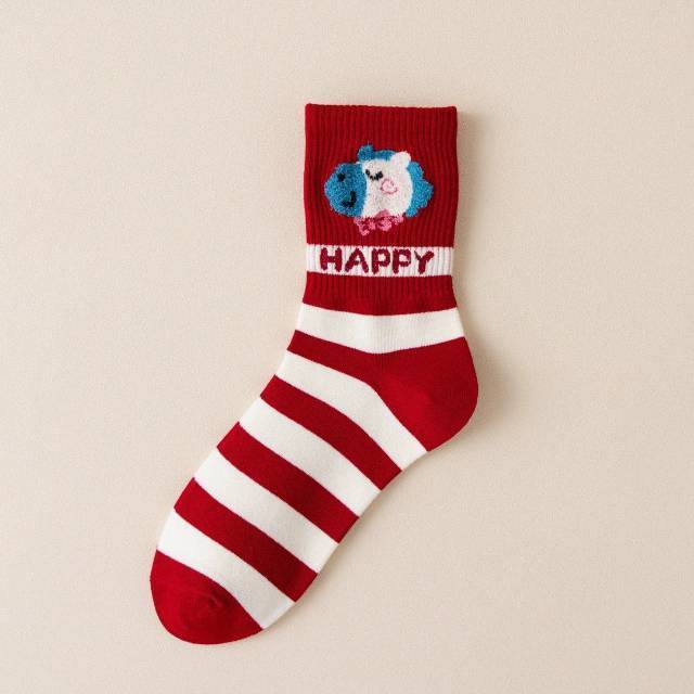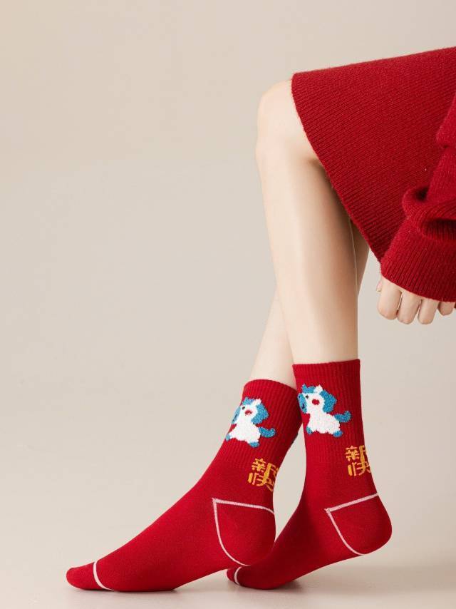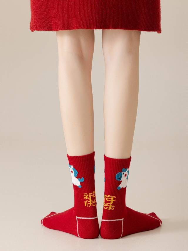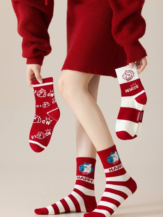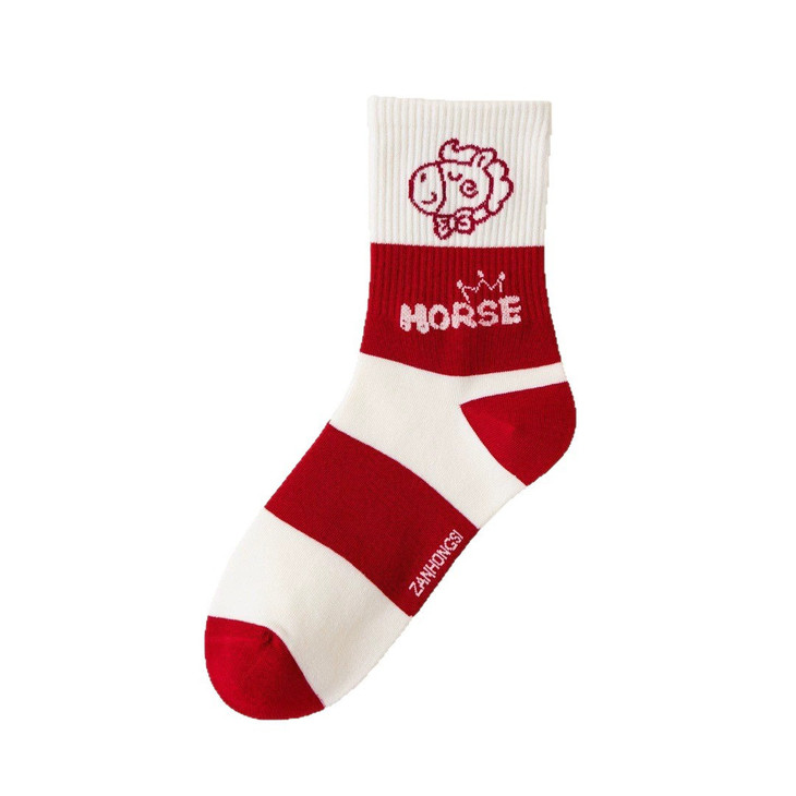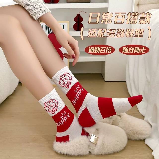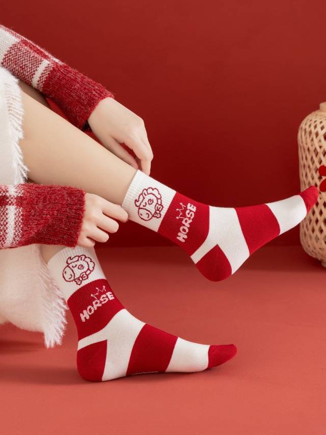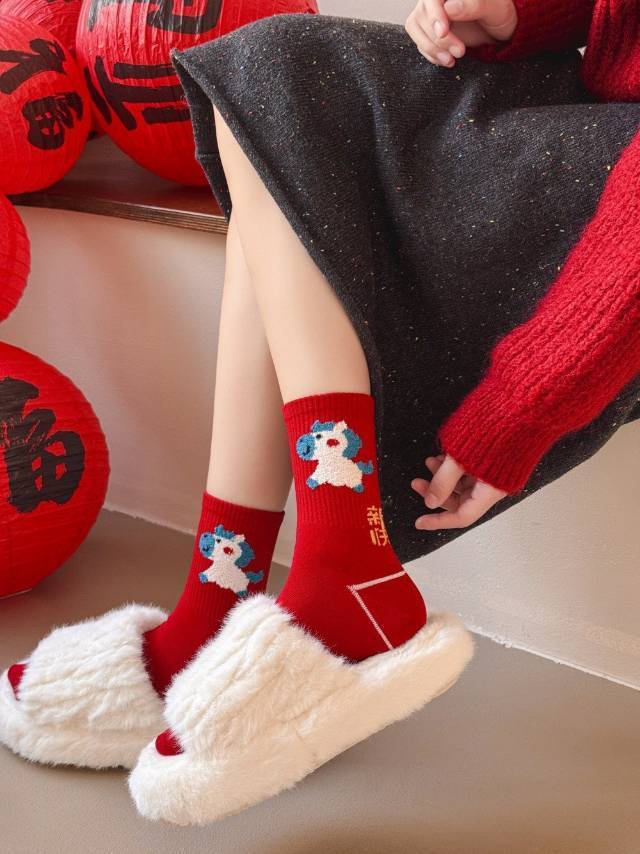 马年红袜萌化了!小马刺绣戳中少女心 红白撞色+软萌小马刺绣,还有HAPPY、新年字样,可爱又讨喜! 中筒版型配鞋露边超元气,软乎乎好穿不勒脚,2026马本命年直接把好运焊在脚上~
