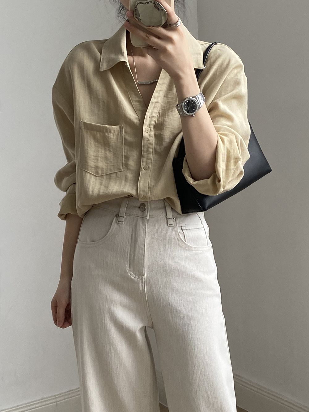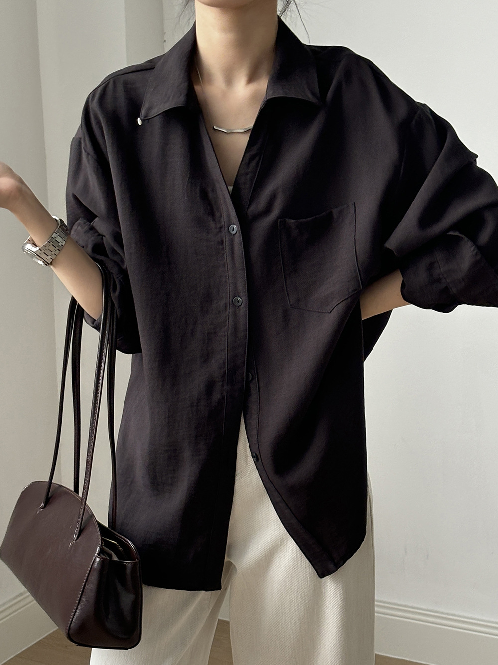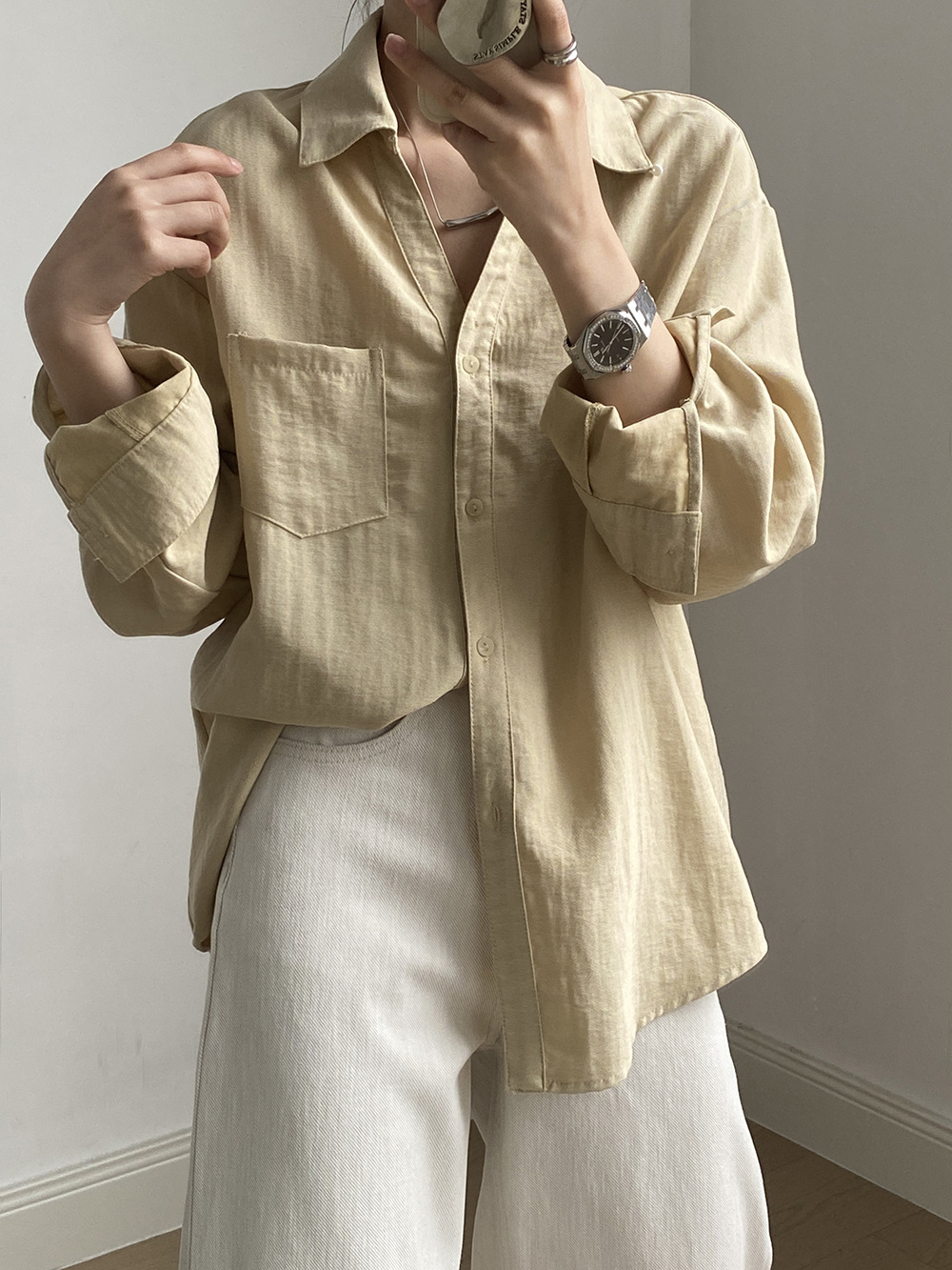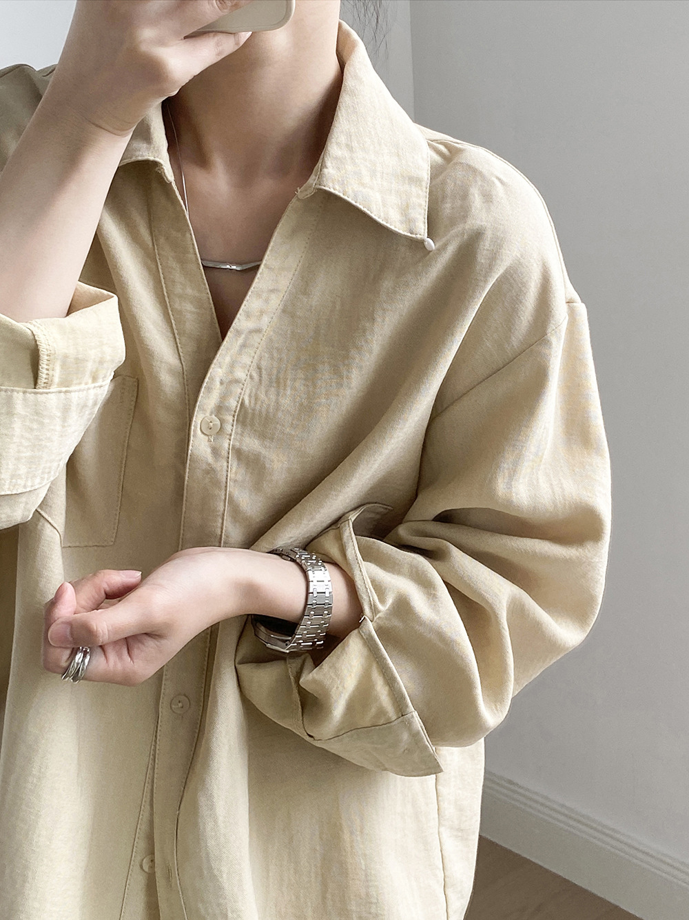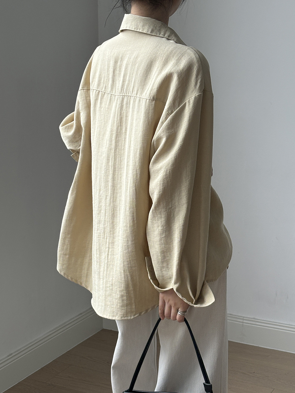 【专柜品牌品质】亚麻天丝棉V领衬衫 春夏季简约休闲长袖宽松上衣82209